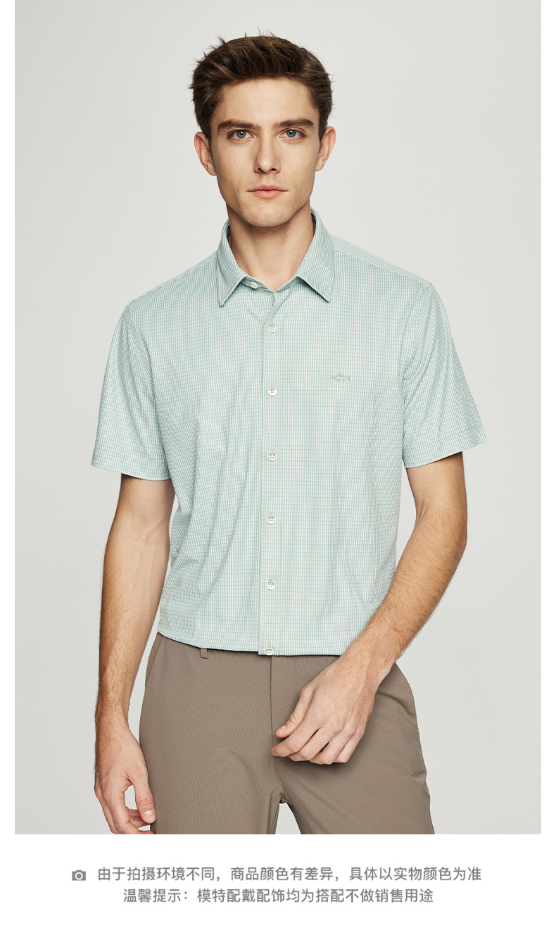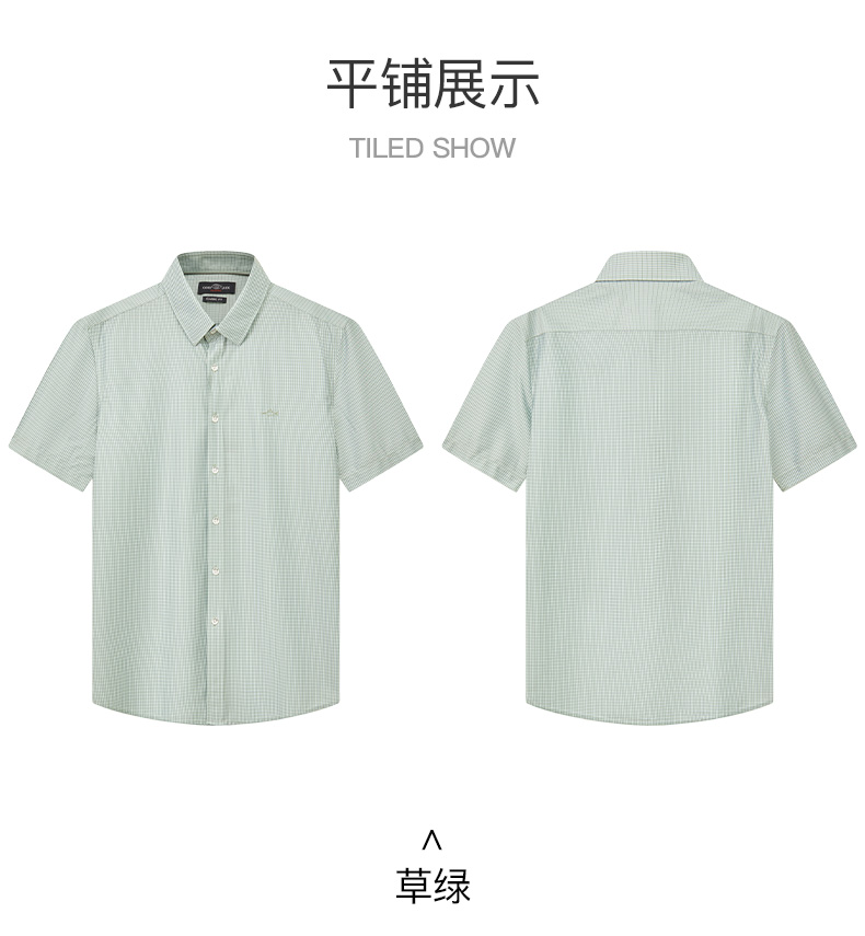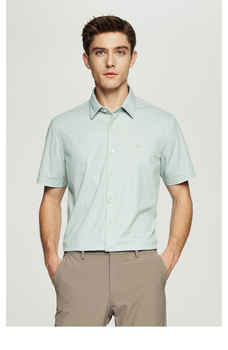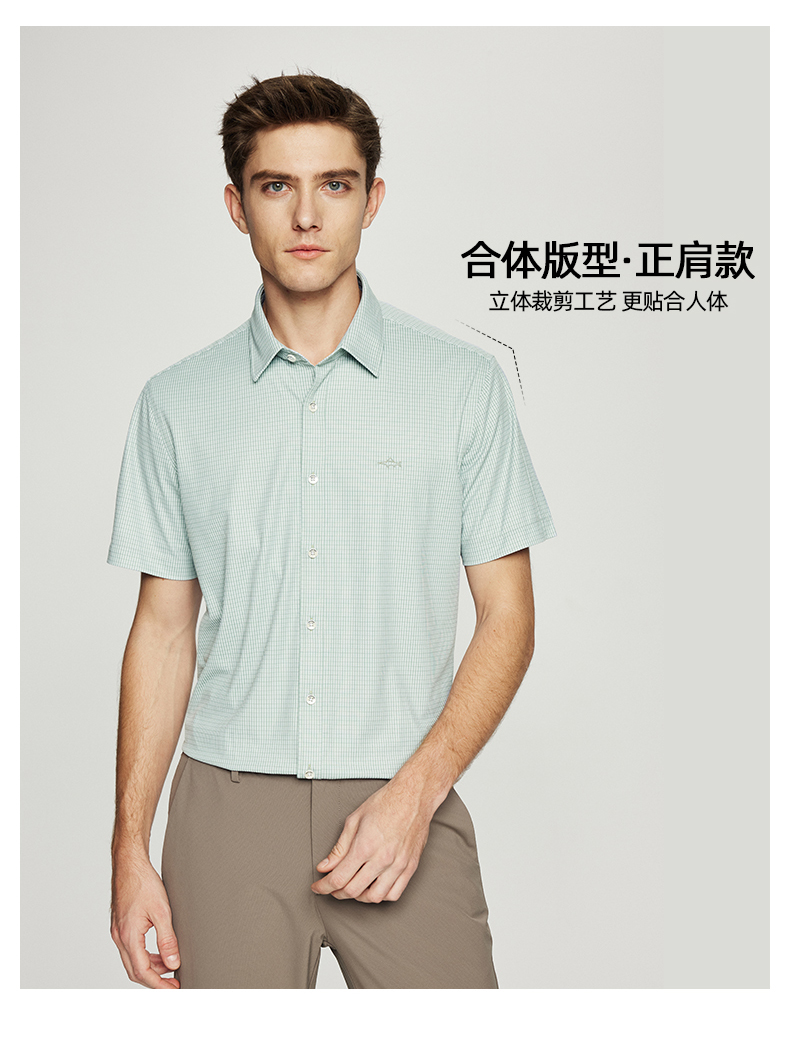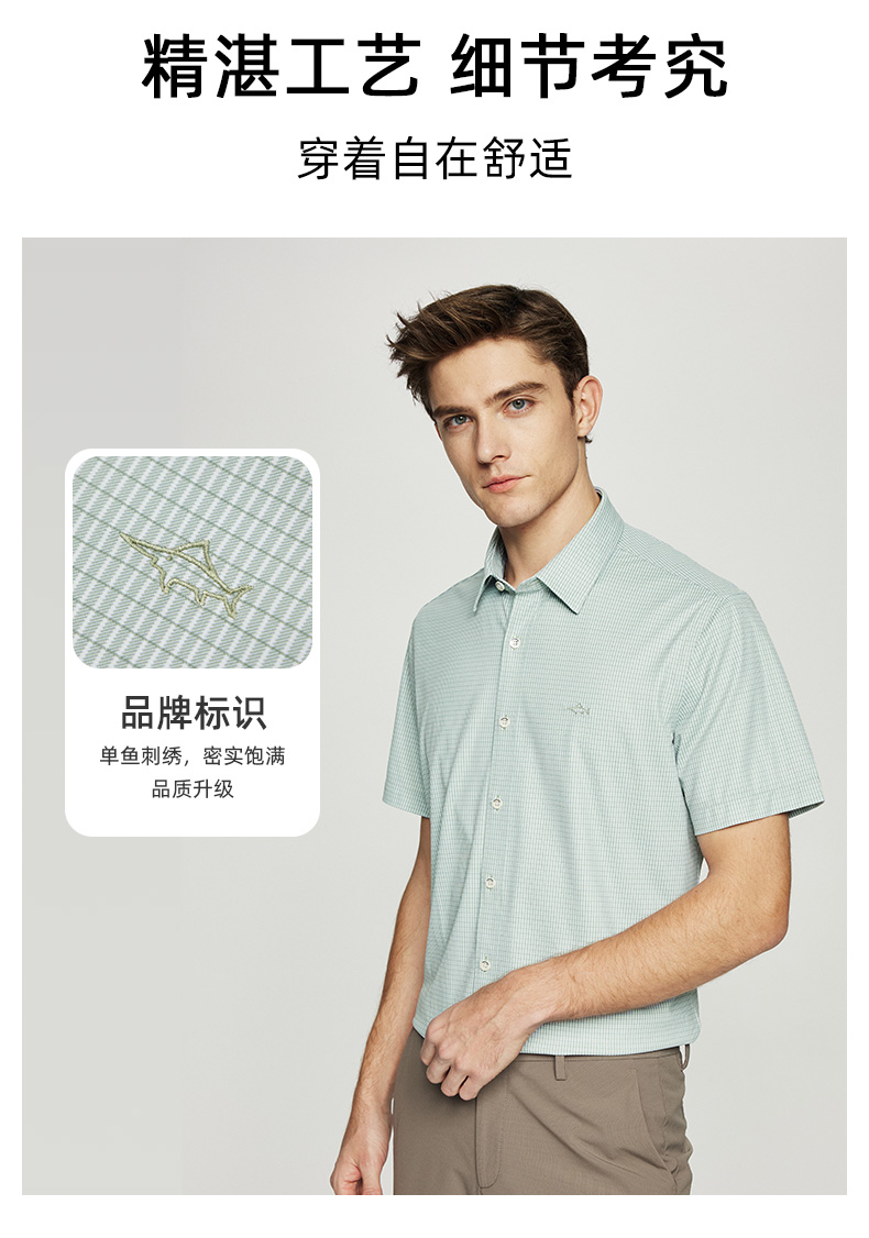 【棉混纺】德鲨短袖格子衬衫男青年2026夏季新款休闲上衣打底衬衣