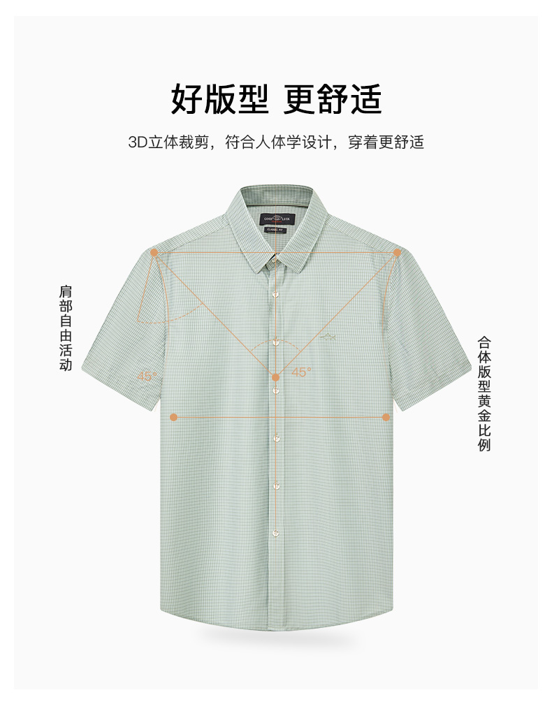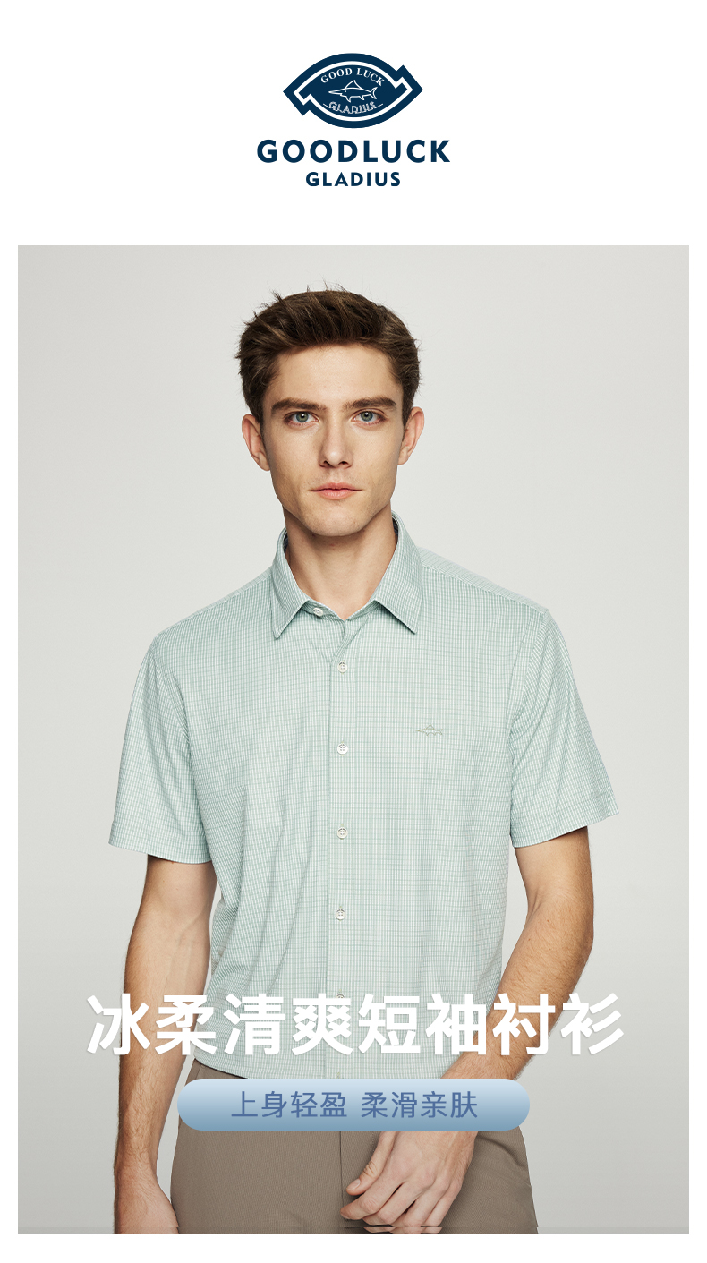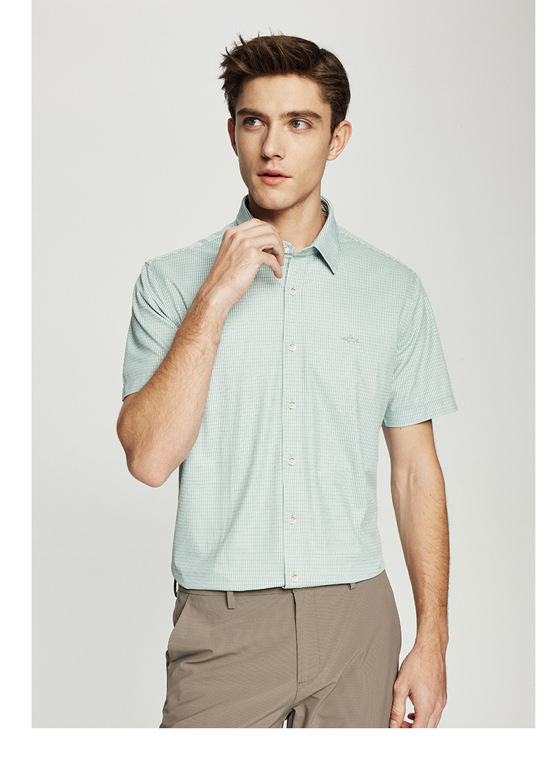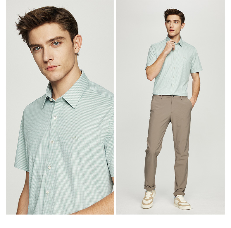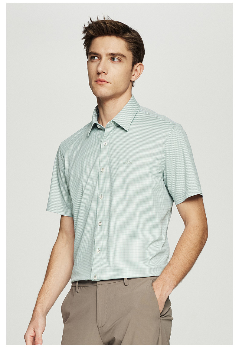 【棉混纺】德鲨短袖格子衬衫男青年2026夏季新款休闲上衣打底衬衣