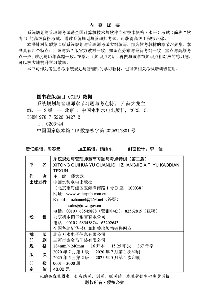 本书可作为考生备考系统规划与管理师的学习教材,也可供相关考试培训班使用。"