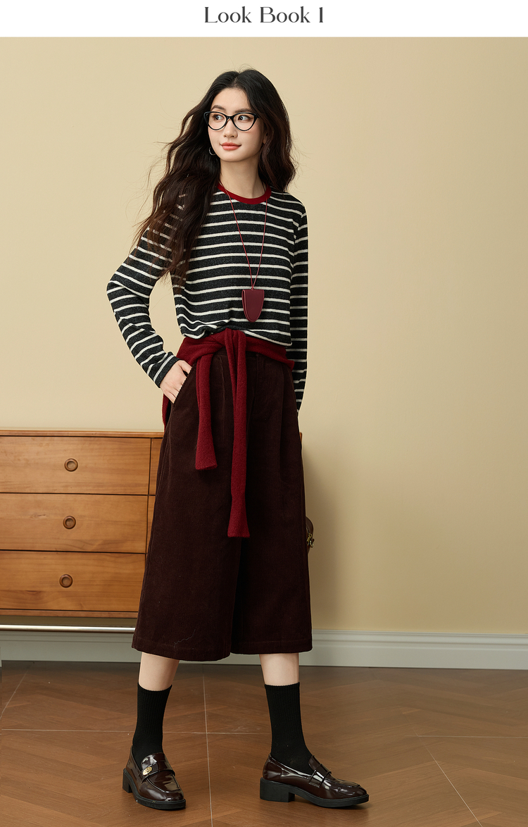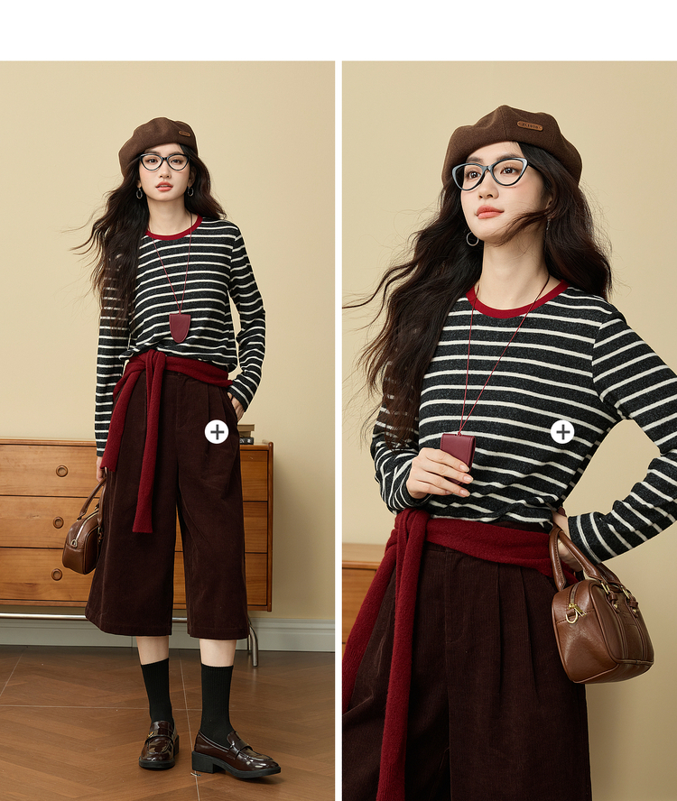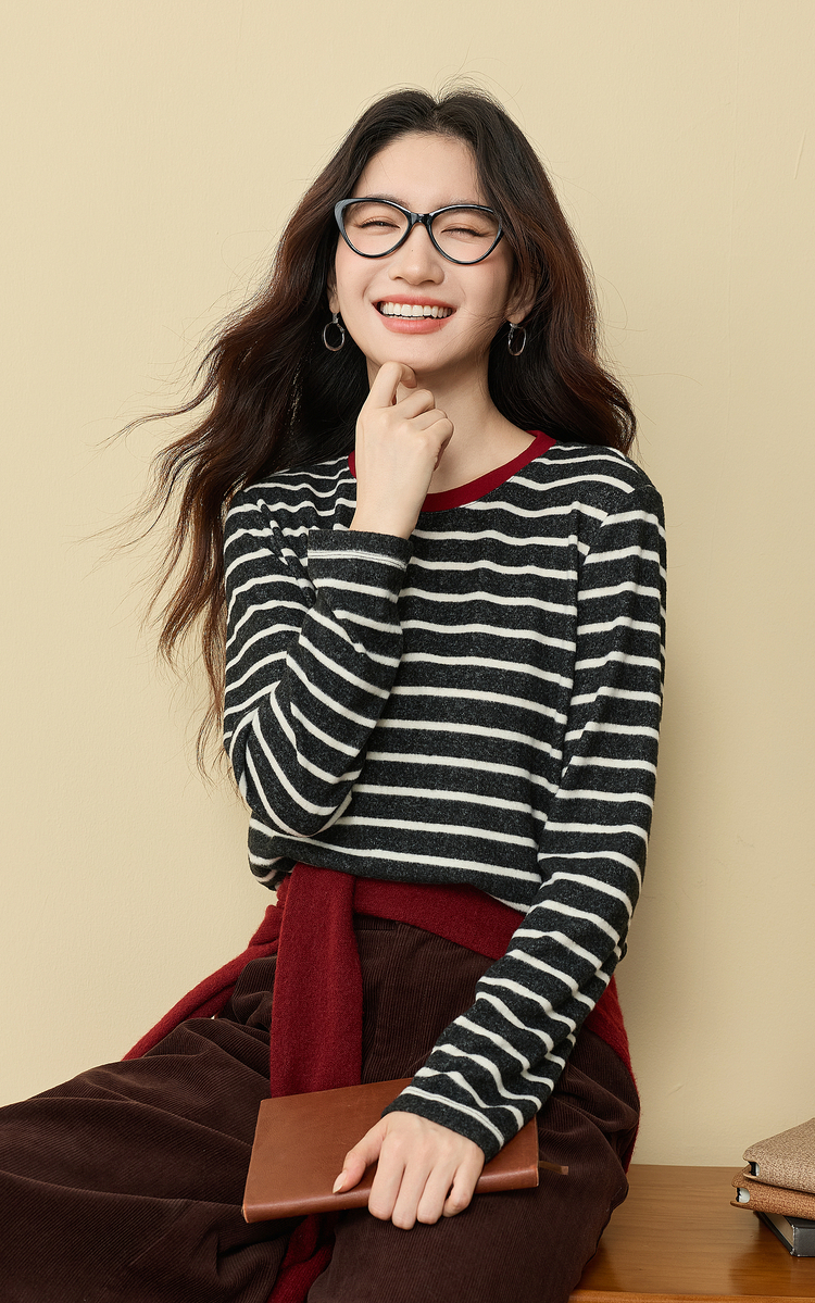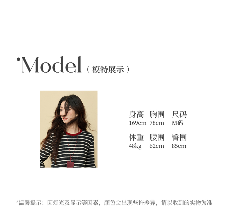 【12/03新品】熙世界航海系撞色条纹针织衫女2025秋冬新款长袖套头圆领绒感毛衣