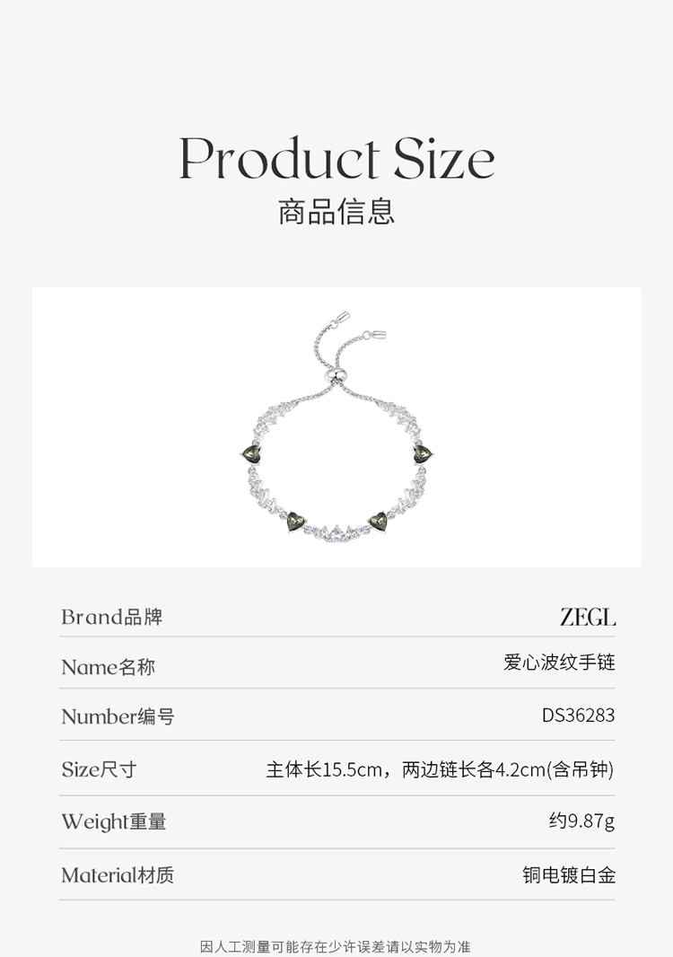 ZEGL设计师黑公主系列爱心波纹手链女轻奢小众精致高级感闺蜜手饰