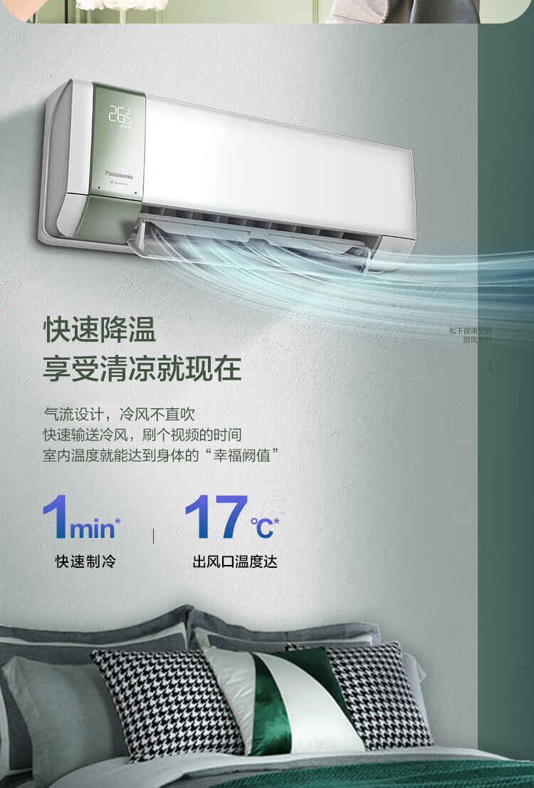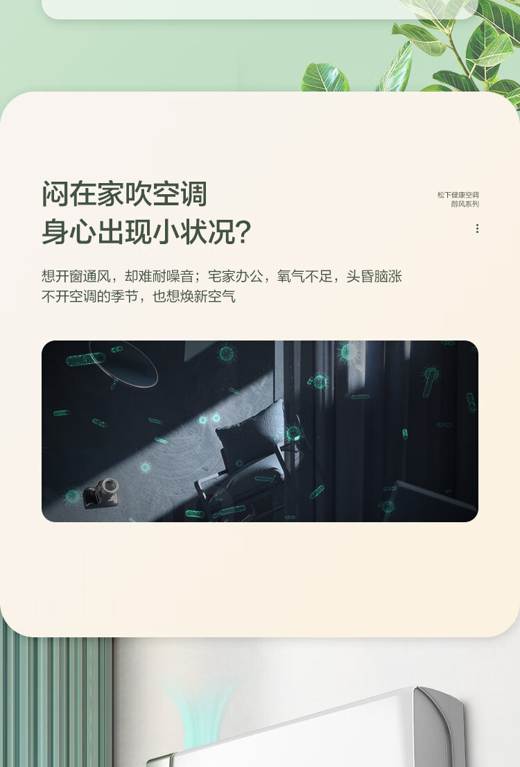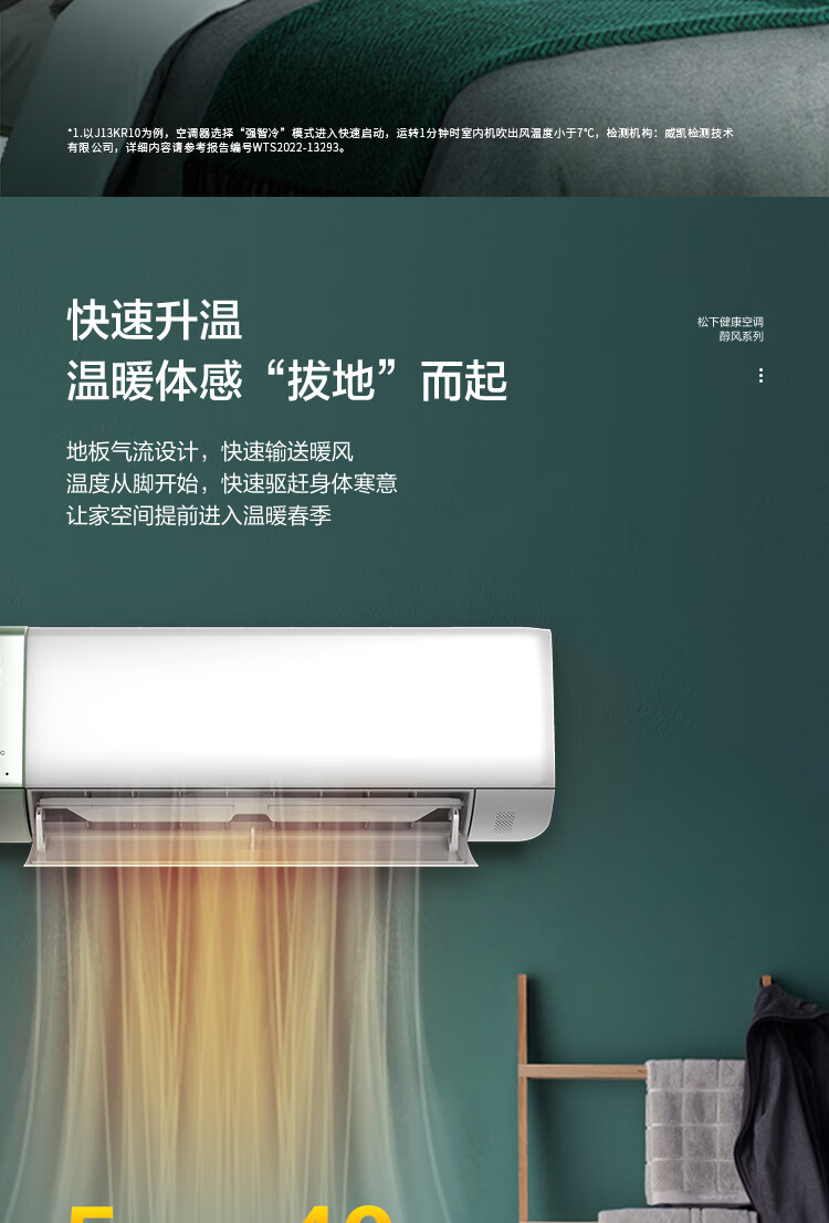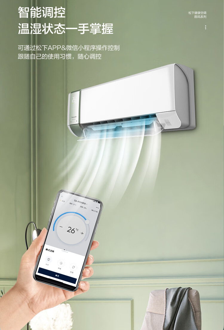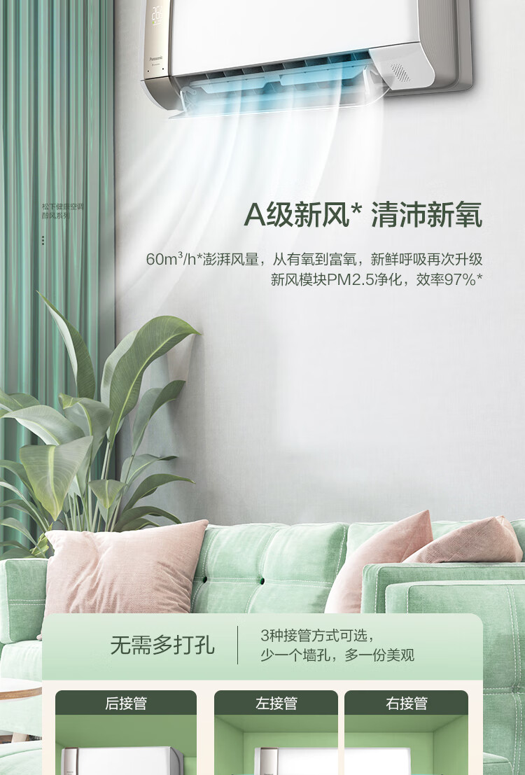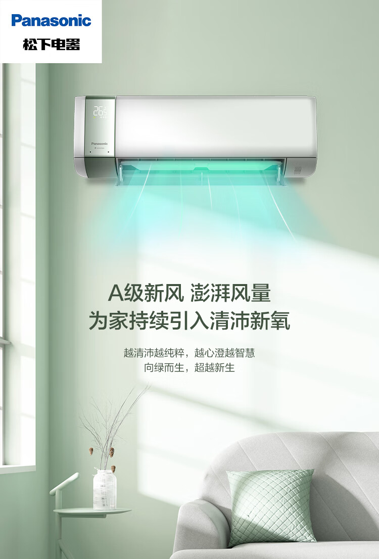 松下醇风 1.5匹一级变频 新风空调 壁挂式冷暖空调挂机自清洁除菌 WiFi语音 J13AKR10