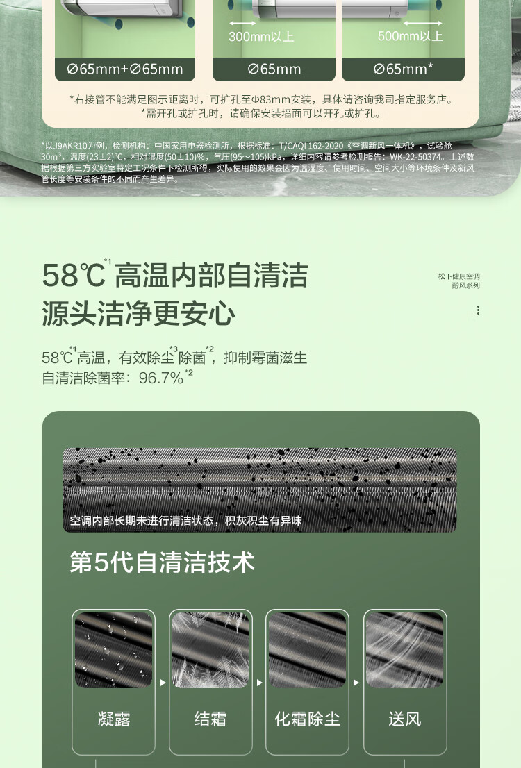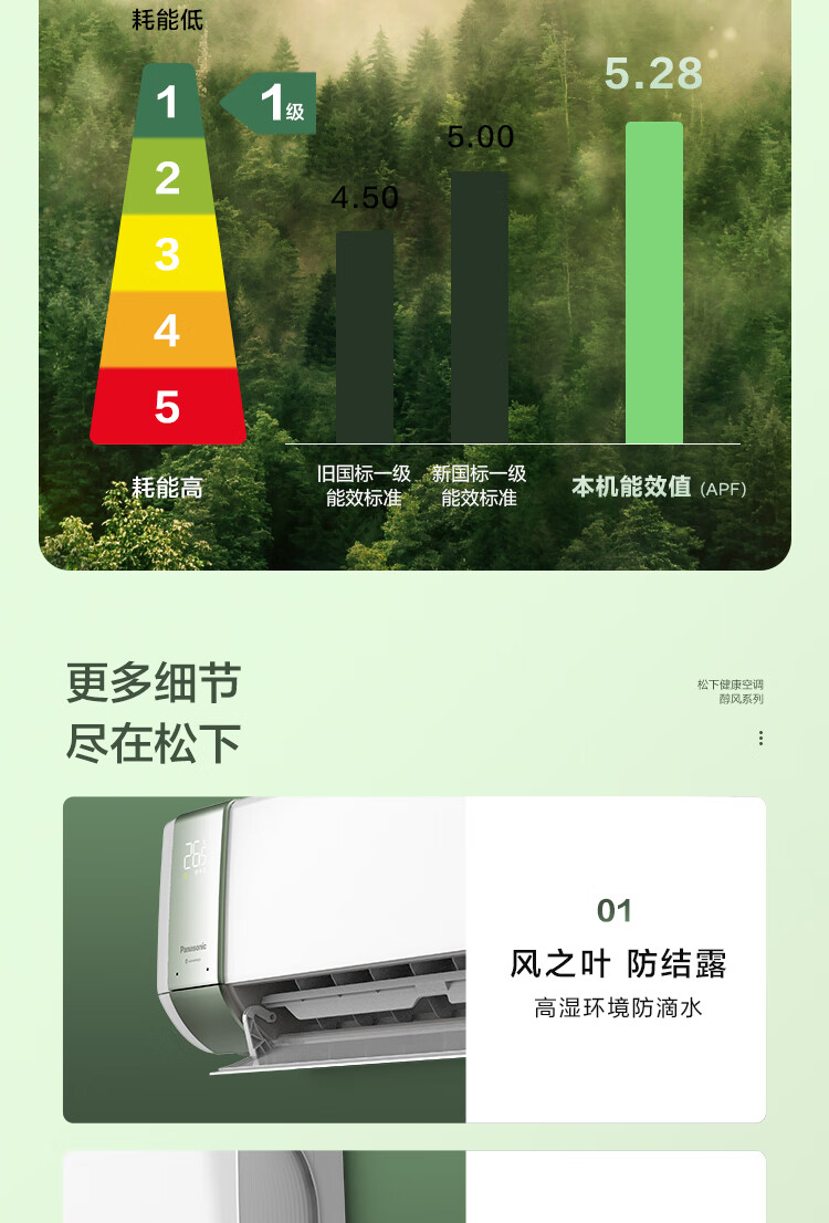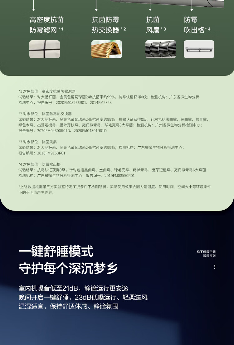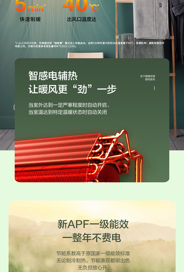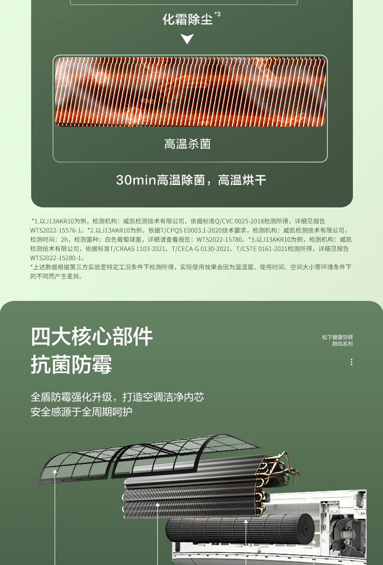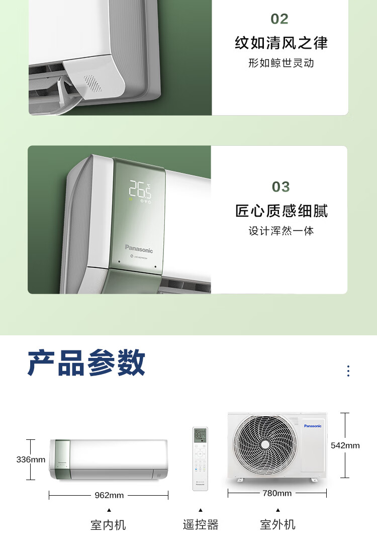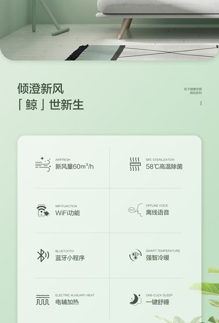 松下醇风 1.5匹一级变频 新风空调 壁挂式冷暖空调挂机自清洁除菌 WiFi语音 J13AKR10