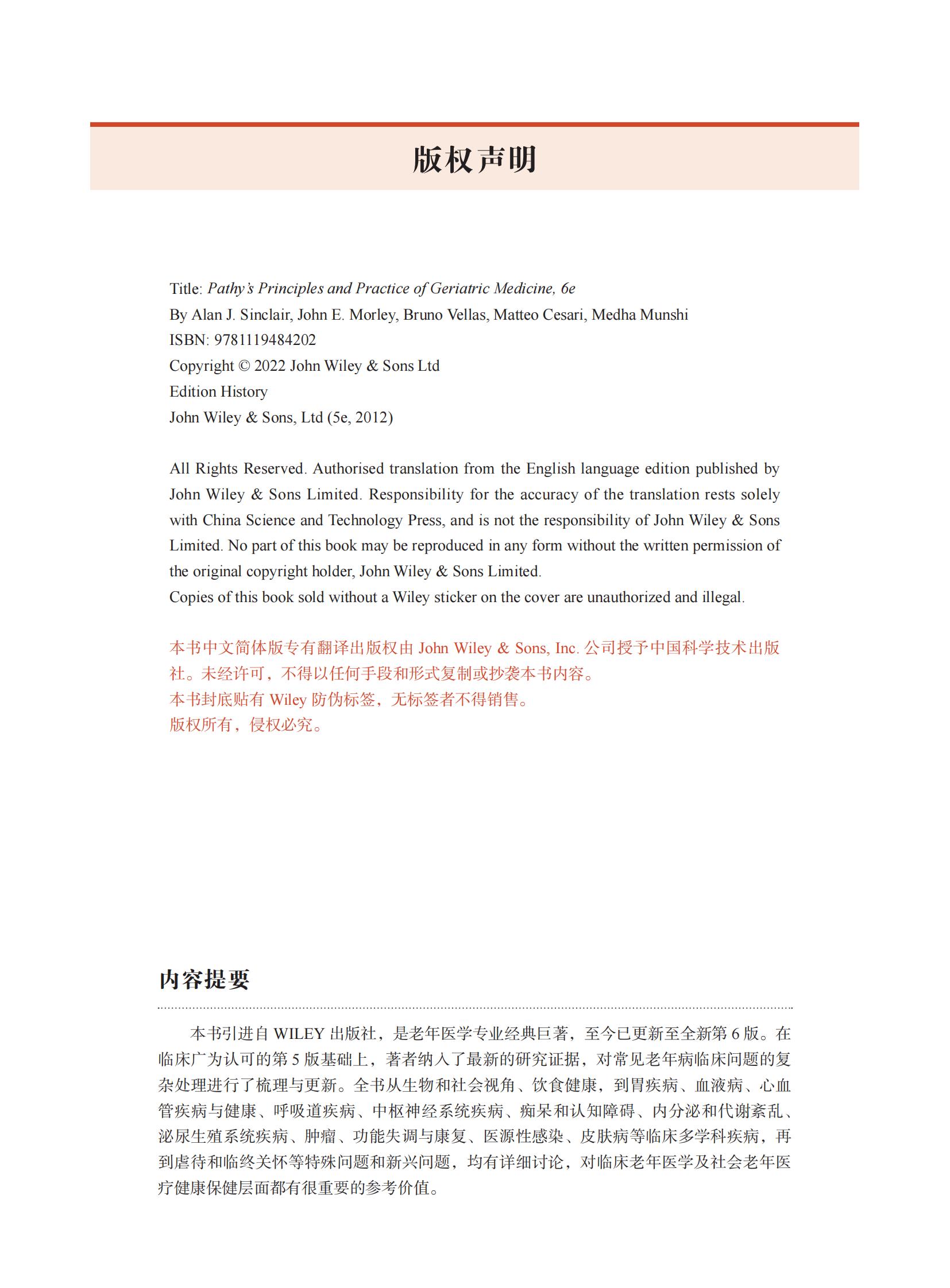 Pathy老年医学原理与实践(原书第6版)老年医学经典译著