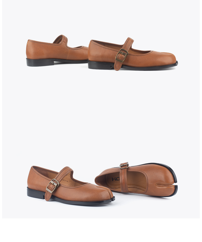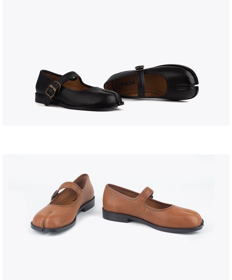 和诚行 2024秋冬新款时尚分趾猪蹄鞋女复古玛丽珍平底单鞋0400237