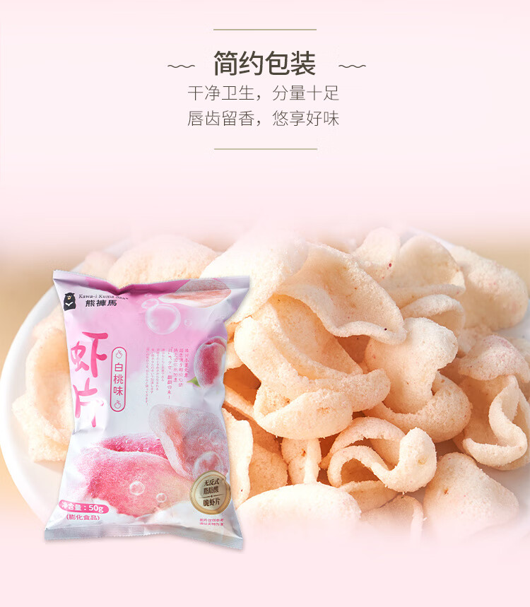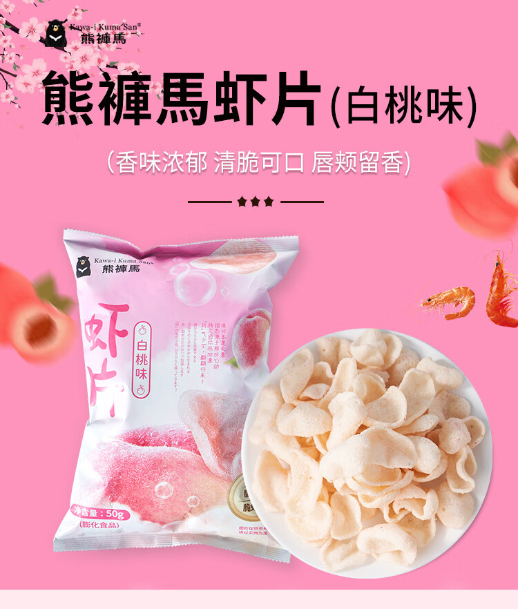 【分仓直发包邮】熊裤马虾片(白桃味)50g*2袋