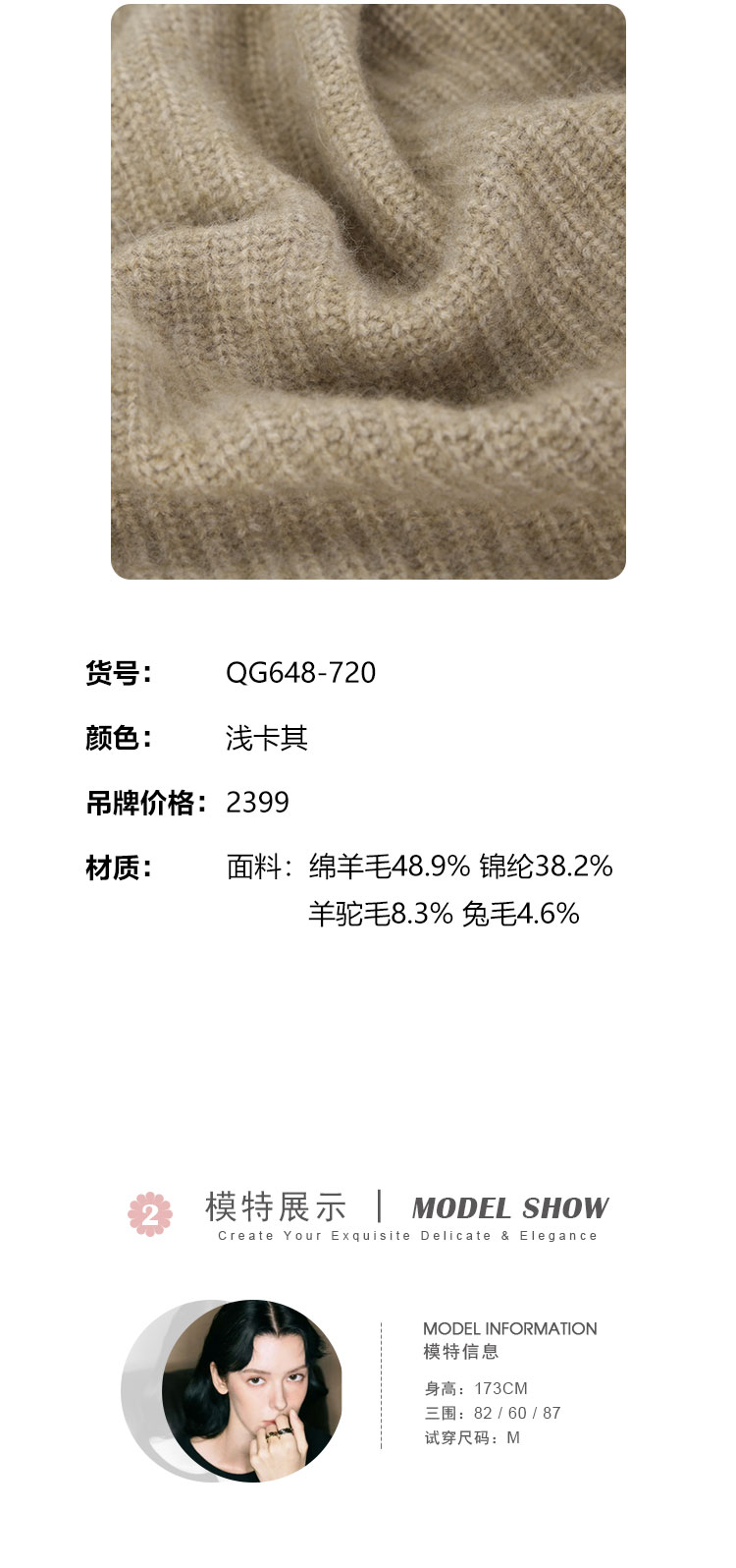 QG631斯尔丽25新款假两件上衣含羊毛撞色内搭拉链外套百搭时尚针织衫