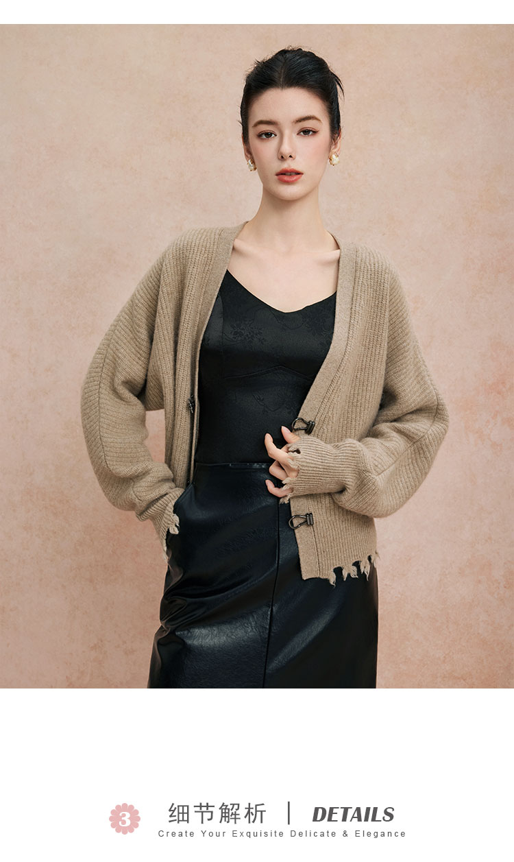 QG648斯尔丽2025新款粗针老钱风时尚百搭落肩开衫