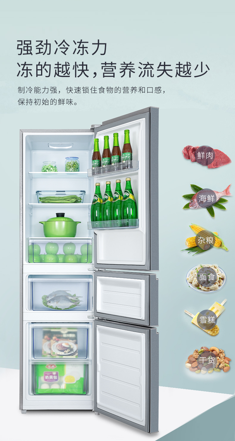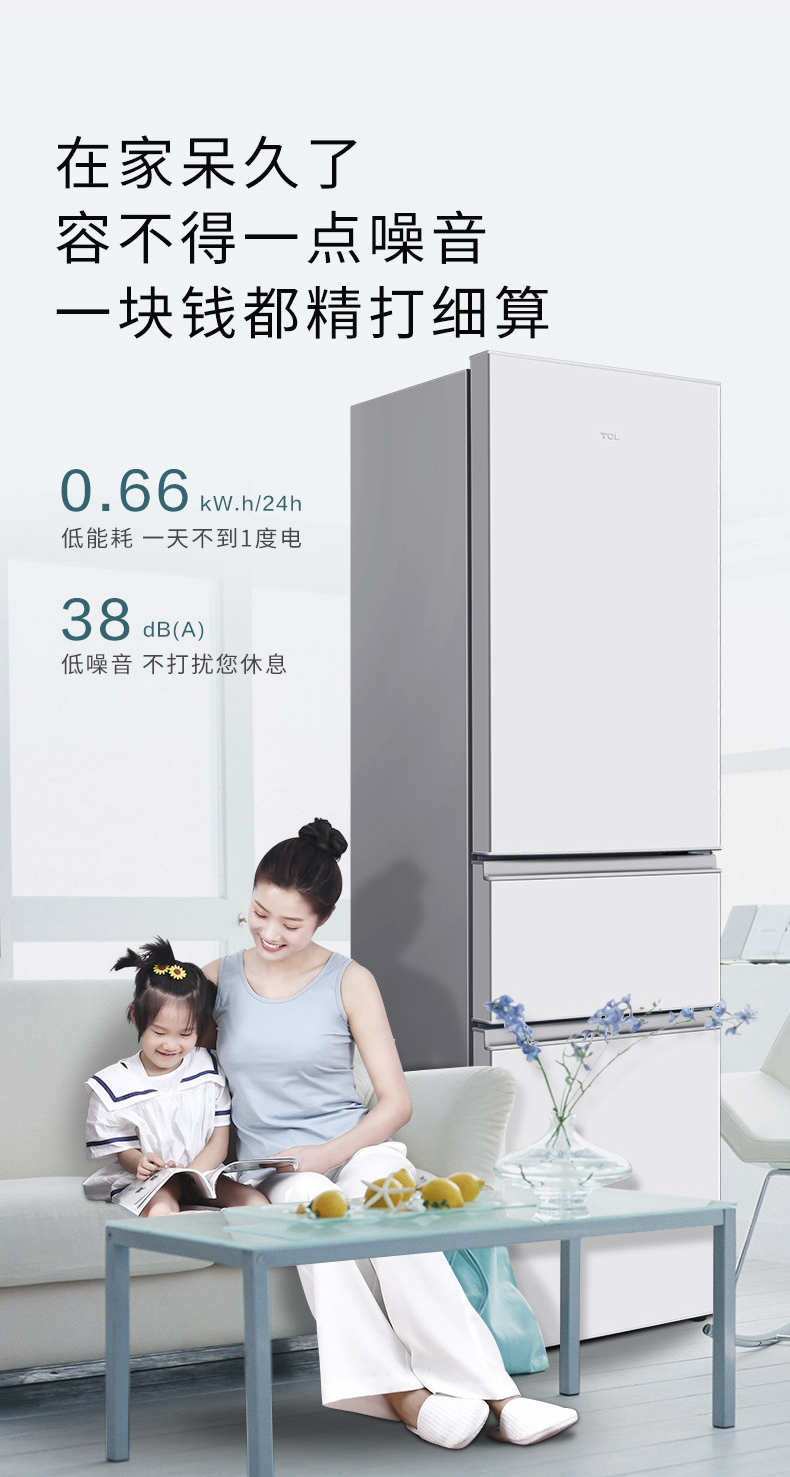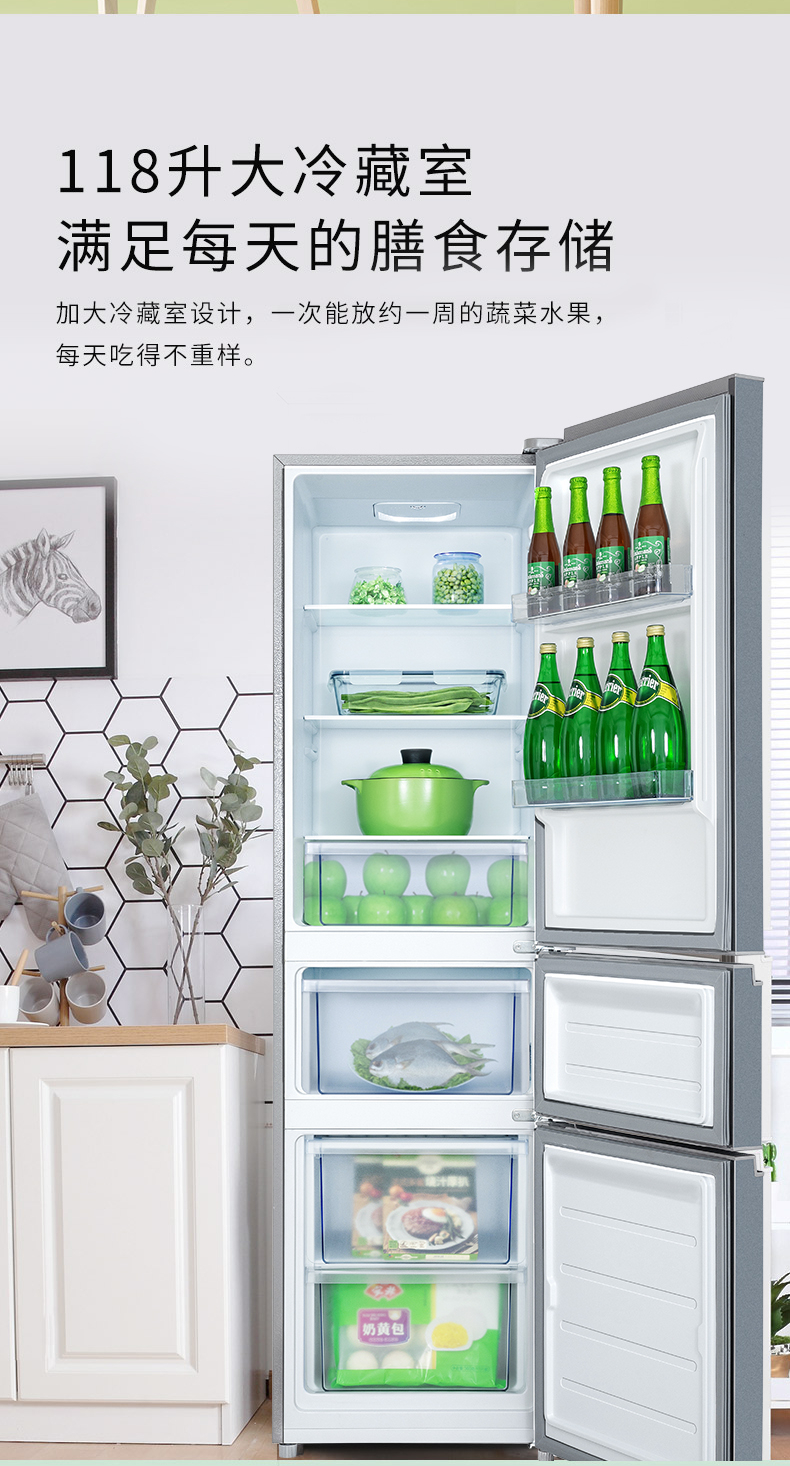 TCL 215升三门电冰箱 中门宽幅变温 快速制冷 节能环保小冰箱 BCD-215TC闪白银(偏远地区不发货)