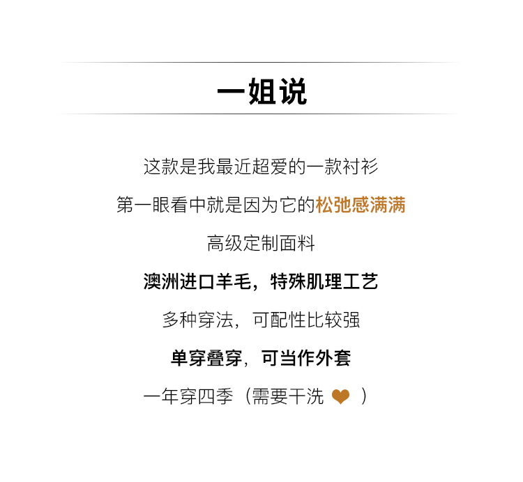 一姐私服 一衣穿四季 独特肌理澳洲羊毛衬衫