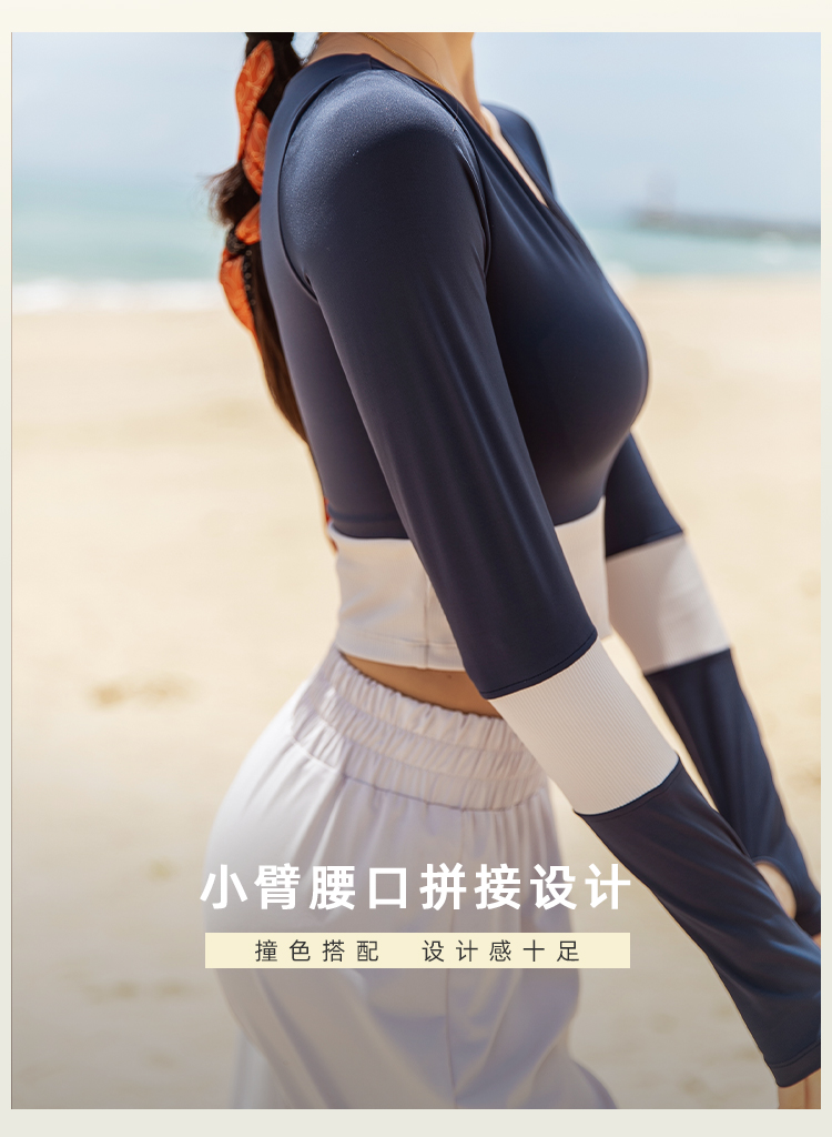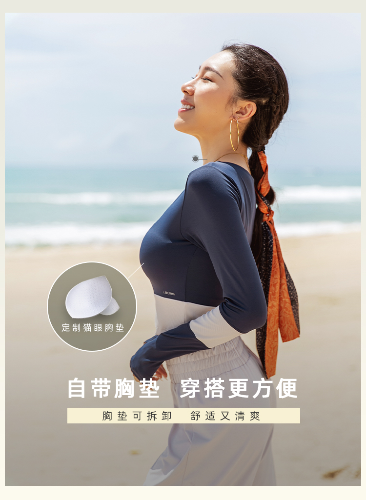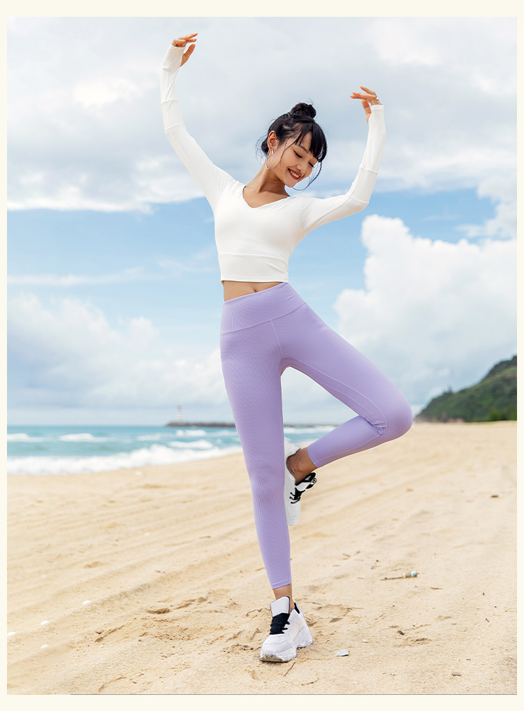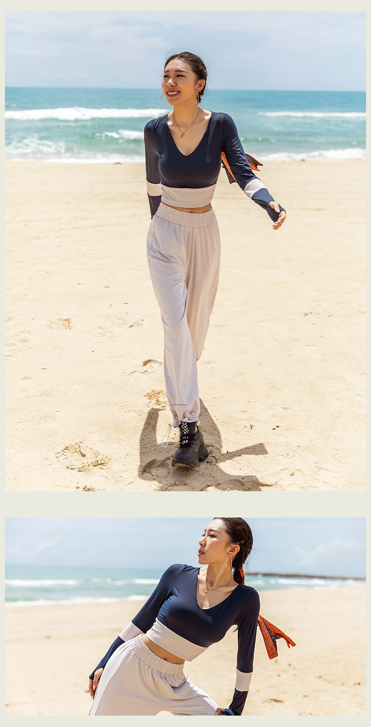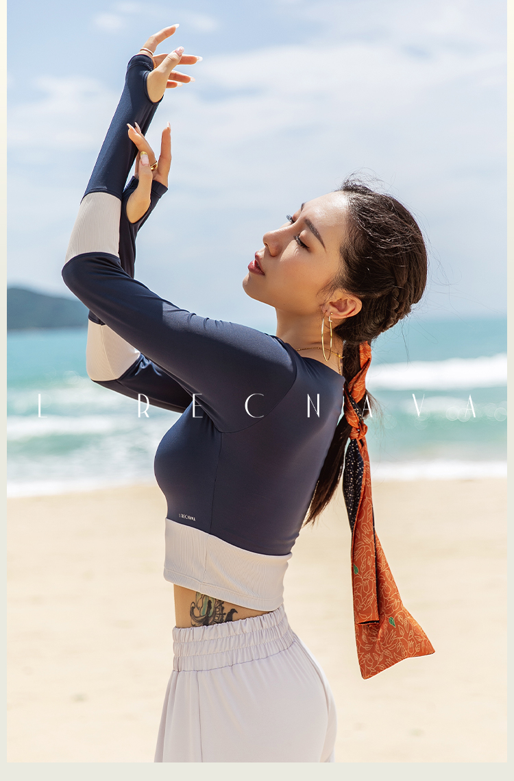 【裸感拼肌理】V领带胸垫瑜伽服上衣女短弹力紧身衣显瘦长袖