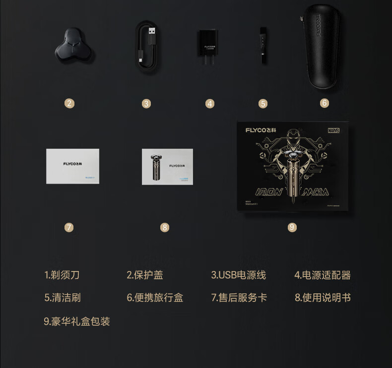 飞科(FLYCO) FS989漫威系列【钢铁侠联名款】 电动剃须刀男士刮胡须刀感应须刨快充高级航空铝送男友父亲生日礼物礼盒送长辈