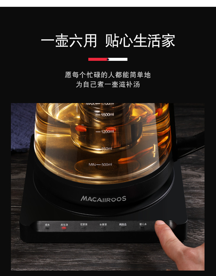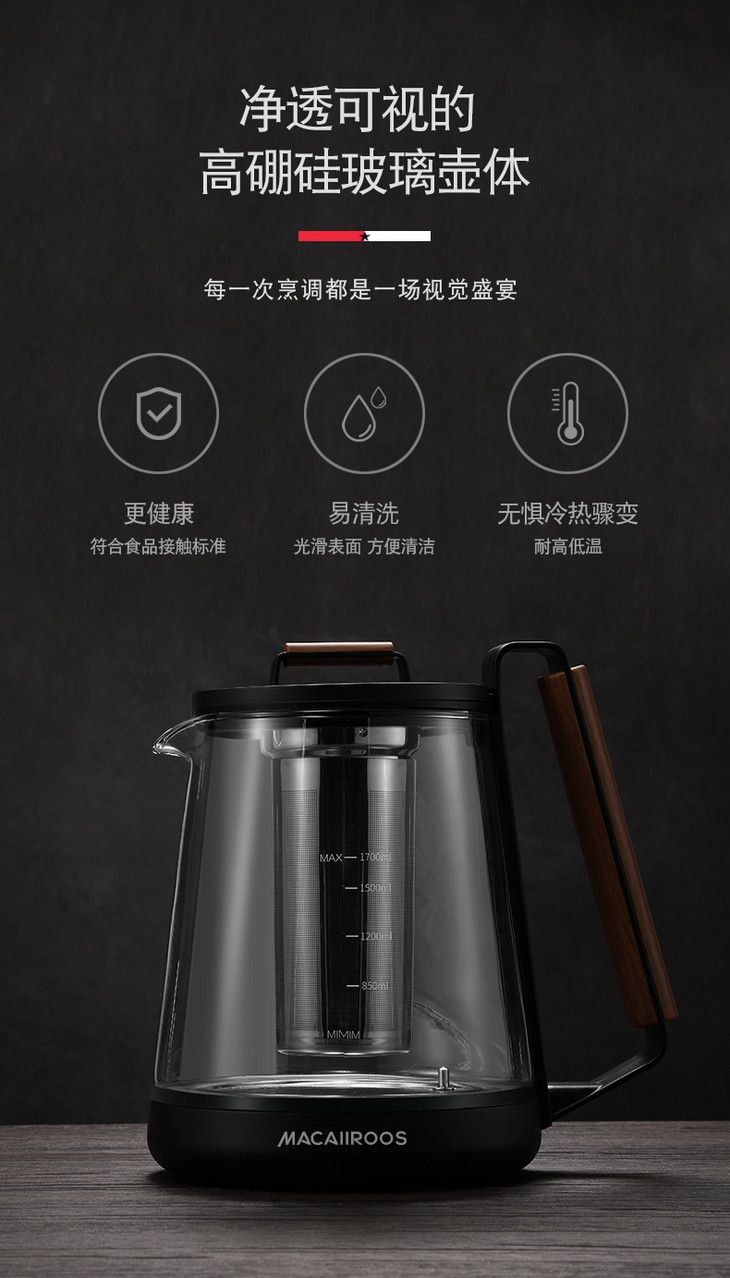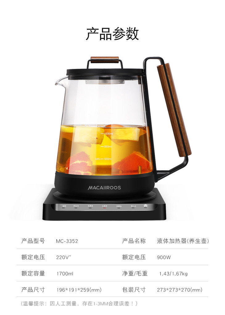 【迈卡罗】迈卡罗玻璃养生壶MC-3352家用多功能壶全自动
