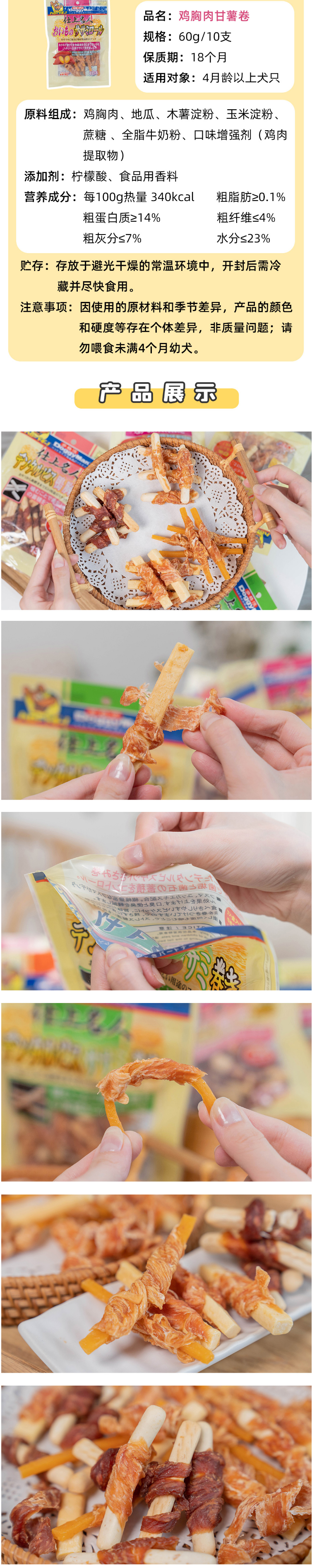 Doggy Man多格漫 名仕零食-鸡胸肉甘薯卷 10根