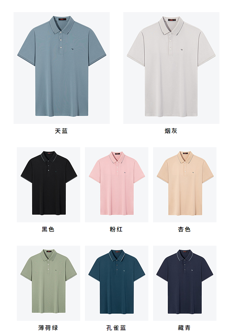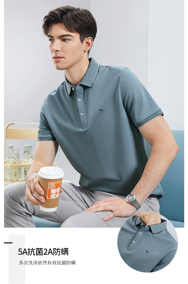 【不变形领】【5A抗菌2A防螨】柒牌凉感短袖polo衫男夏季新款商务休闲翻领上衣126T70340