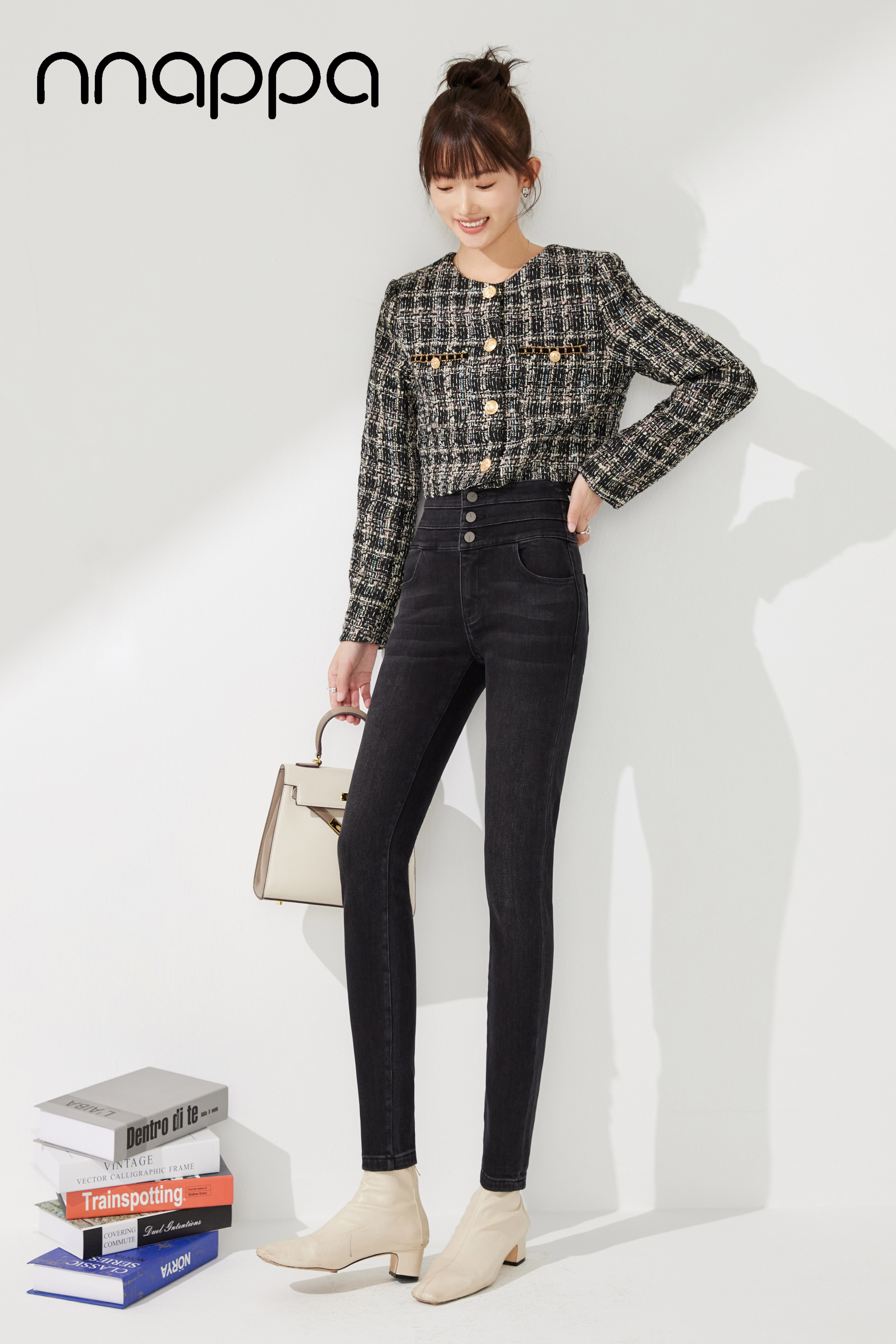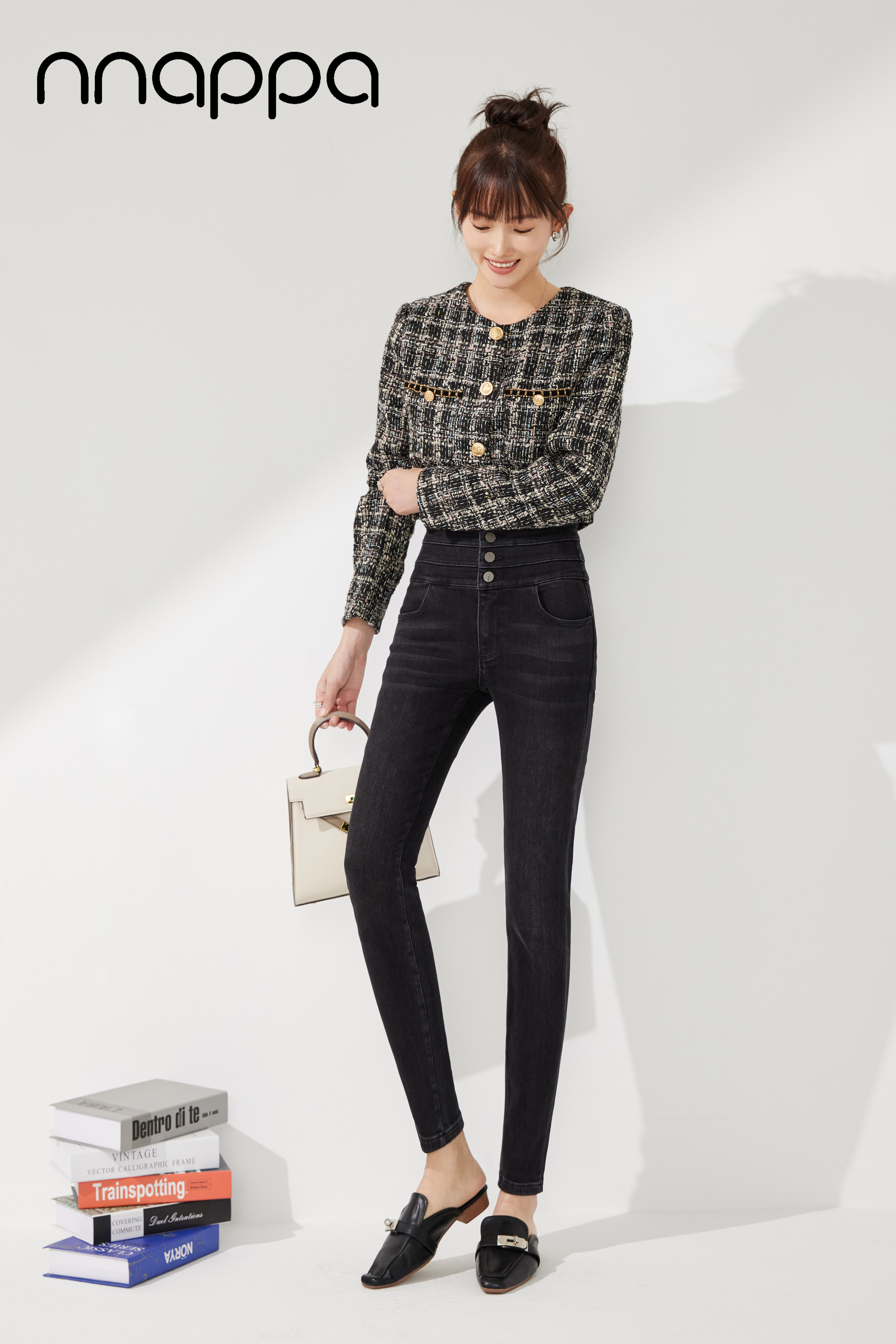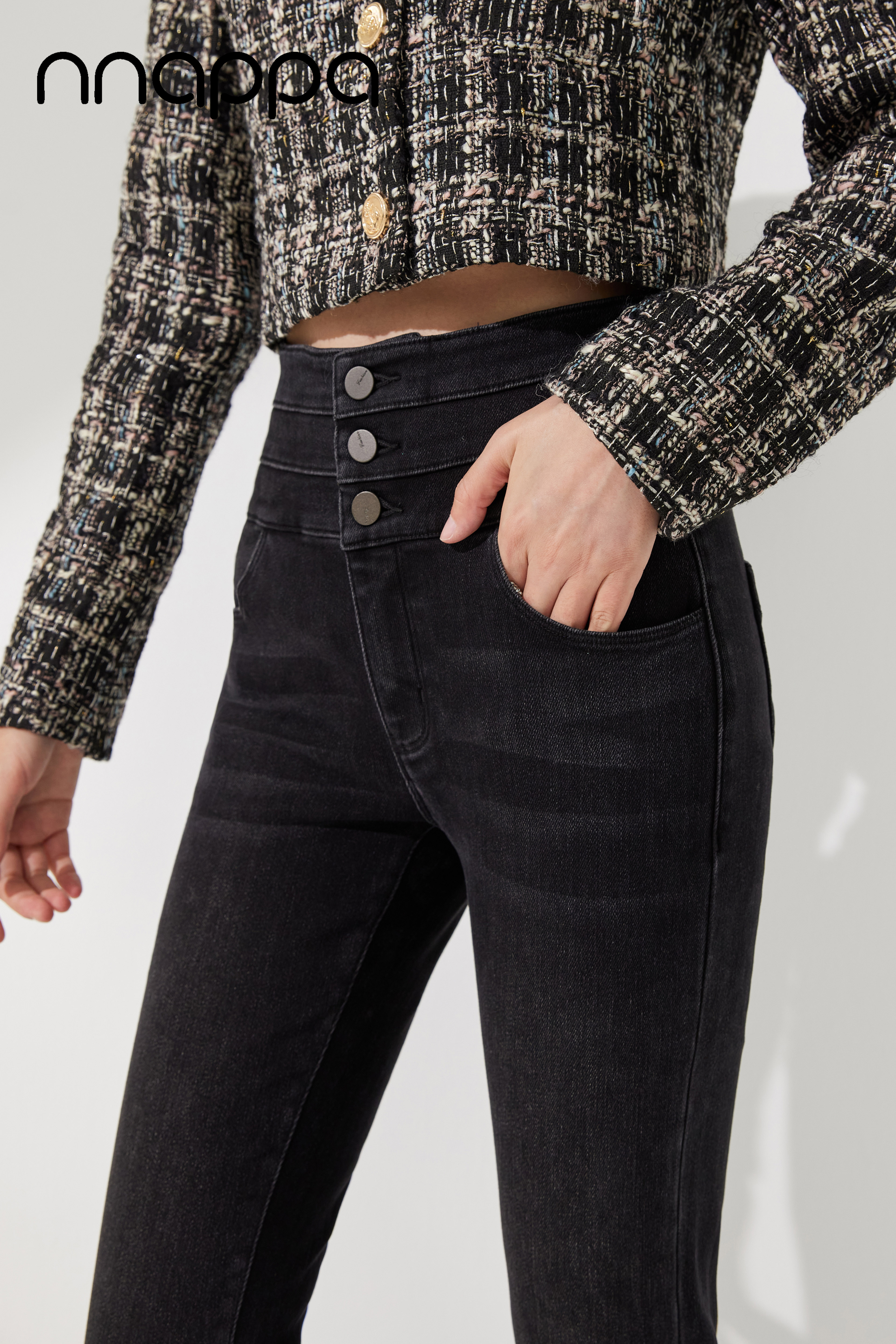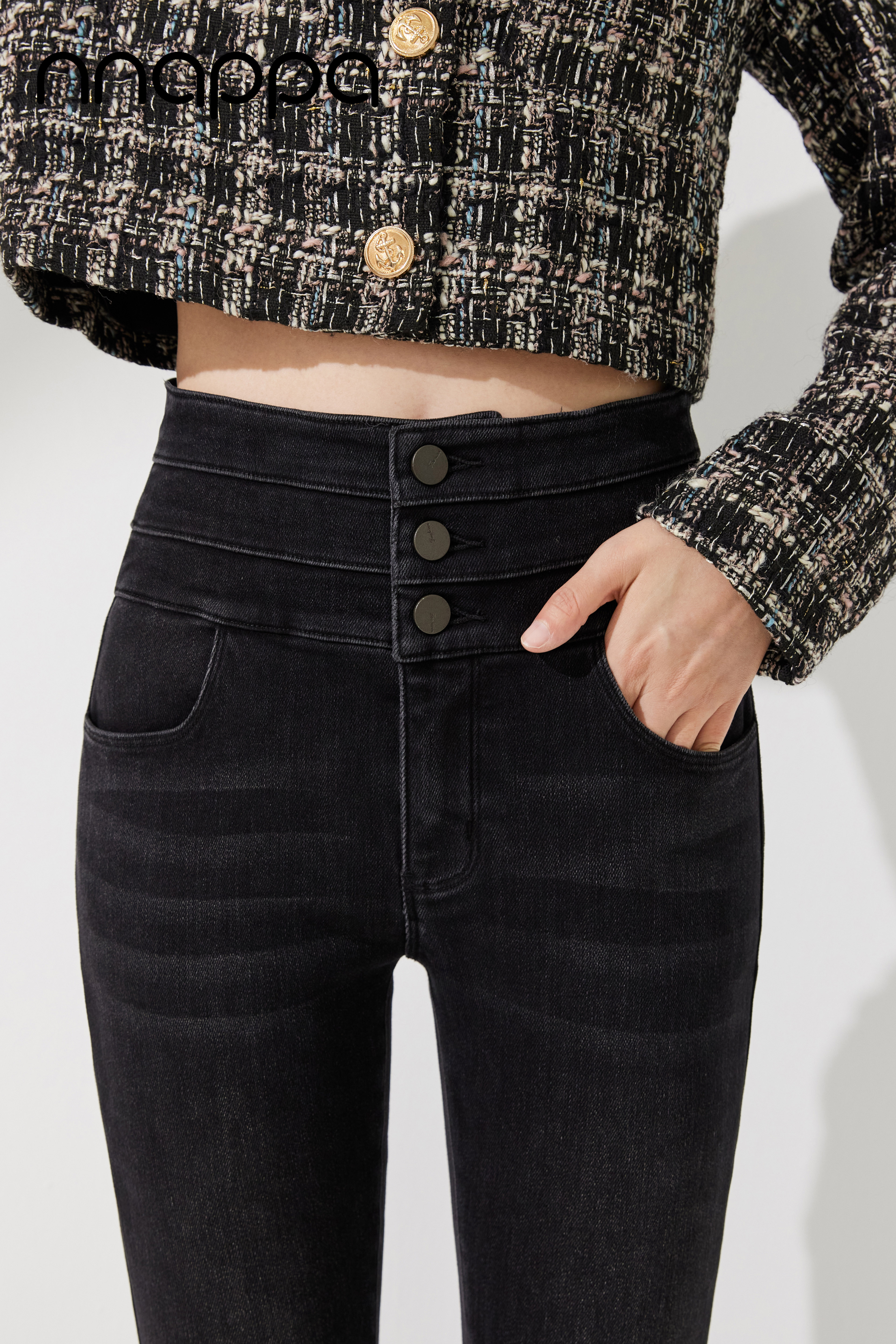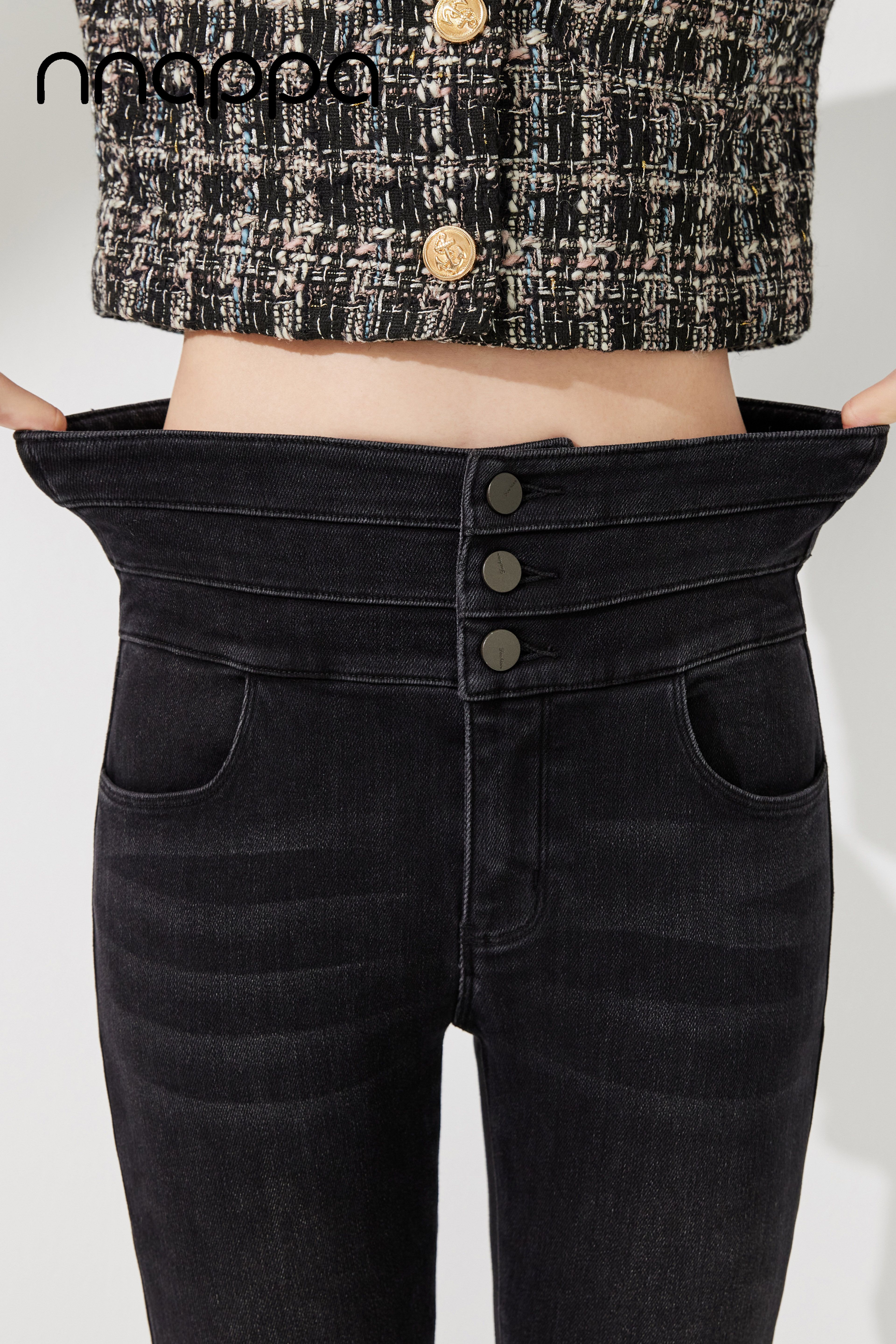 时尚磨绒三排扣牛仔女裤MRN2002