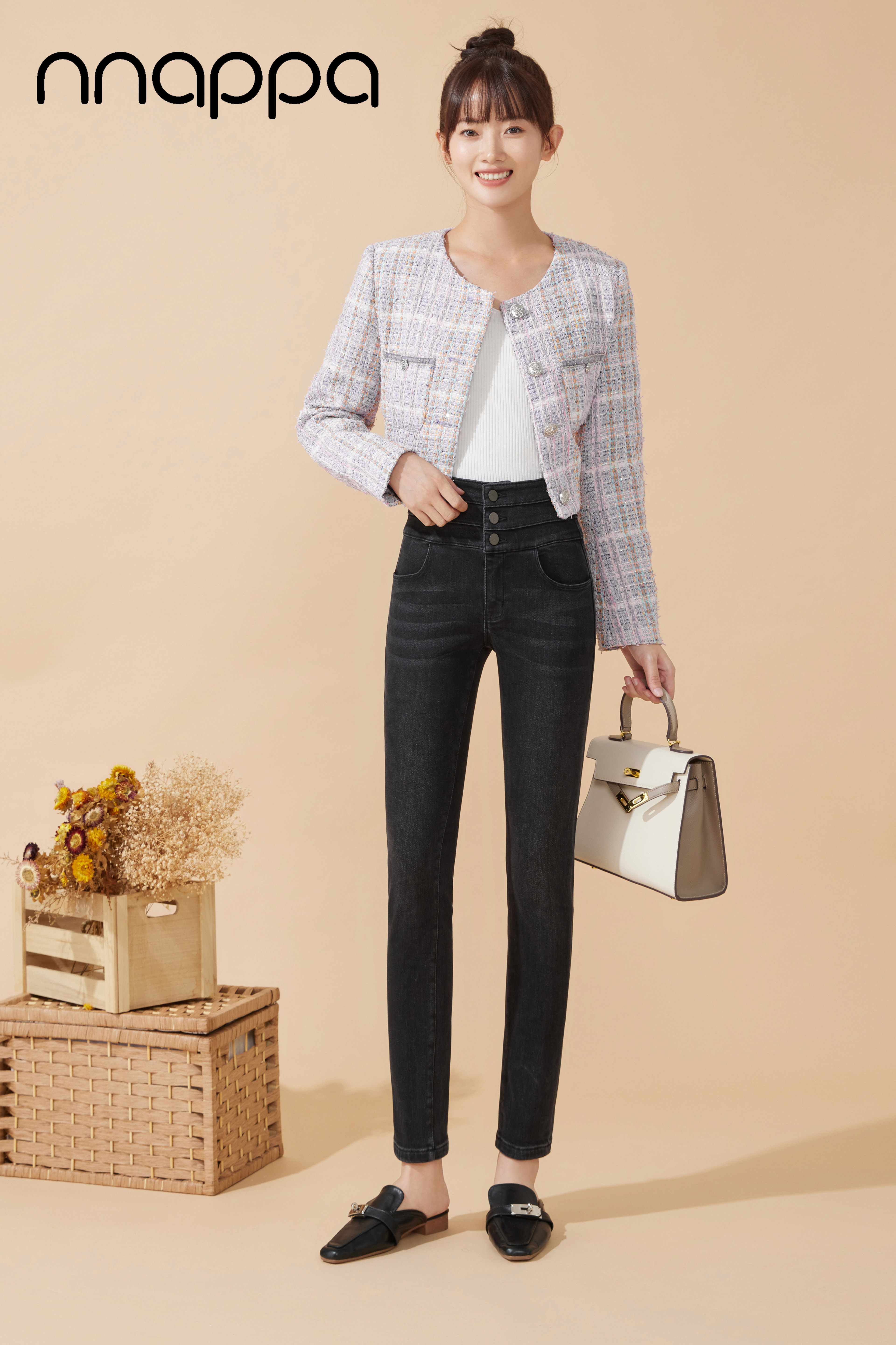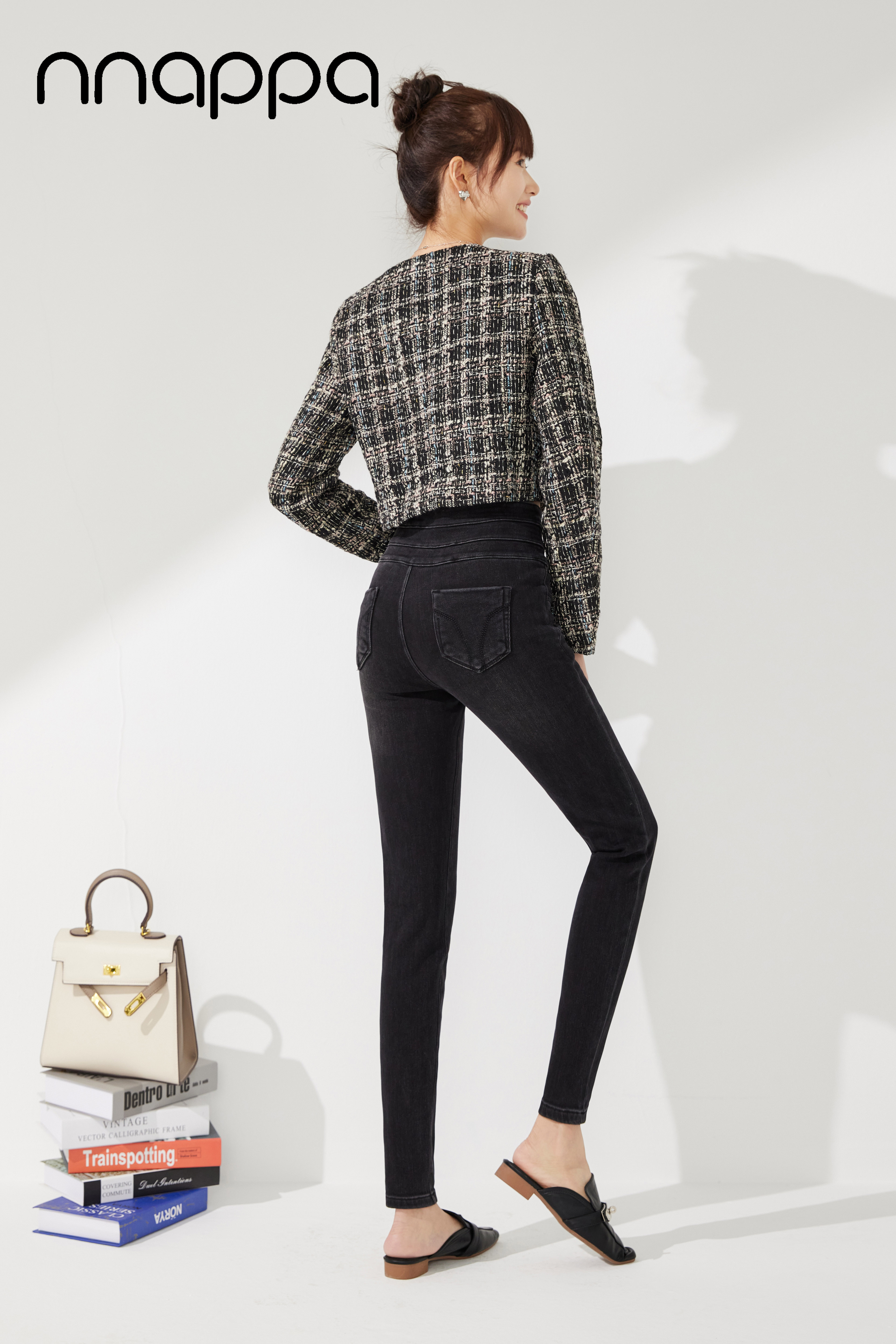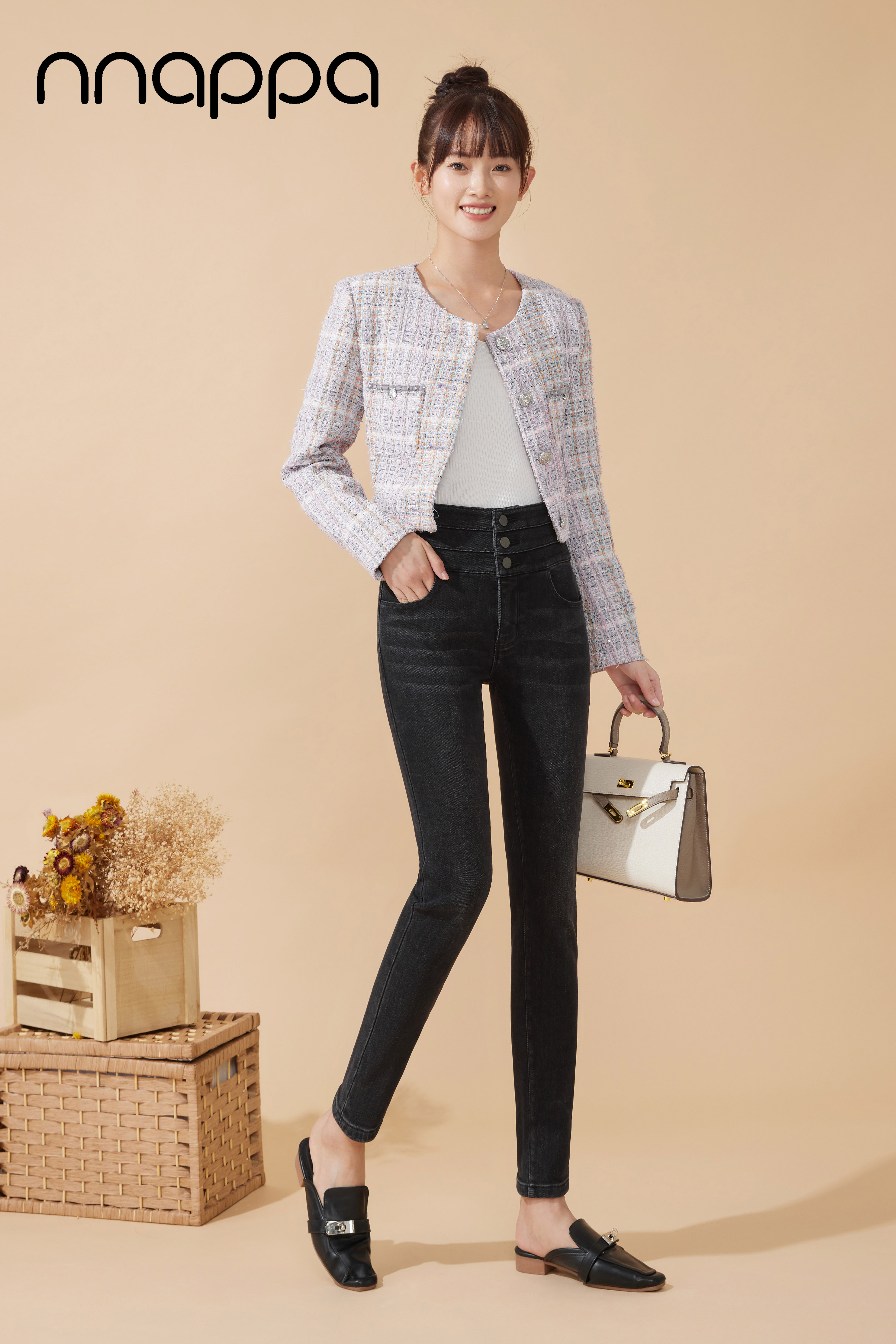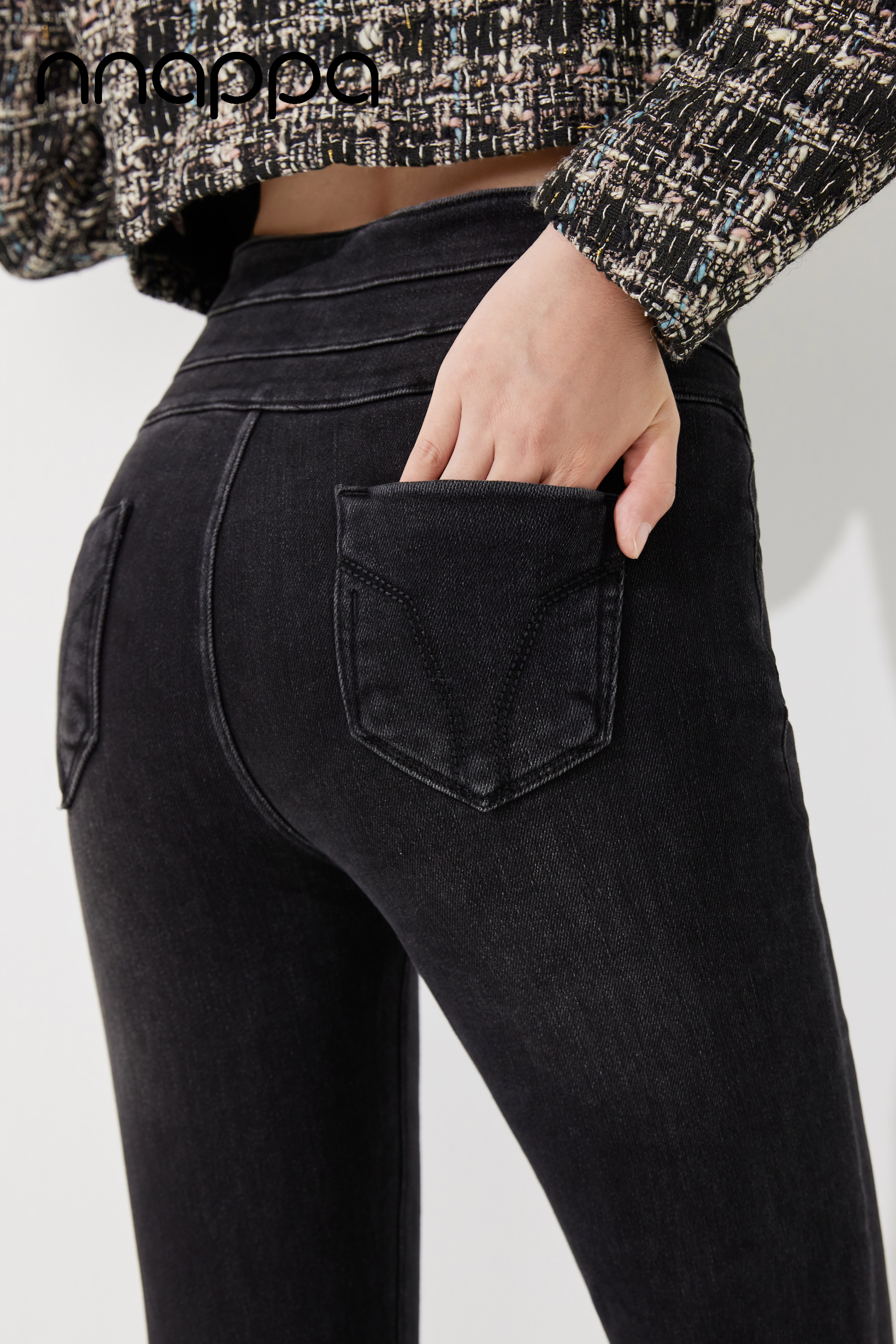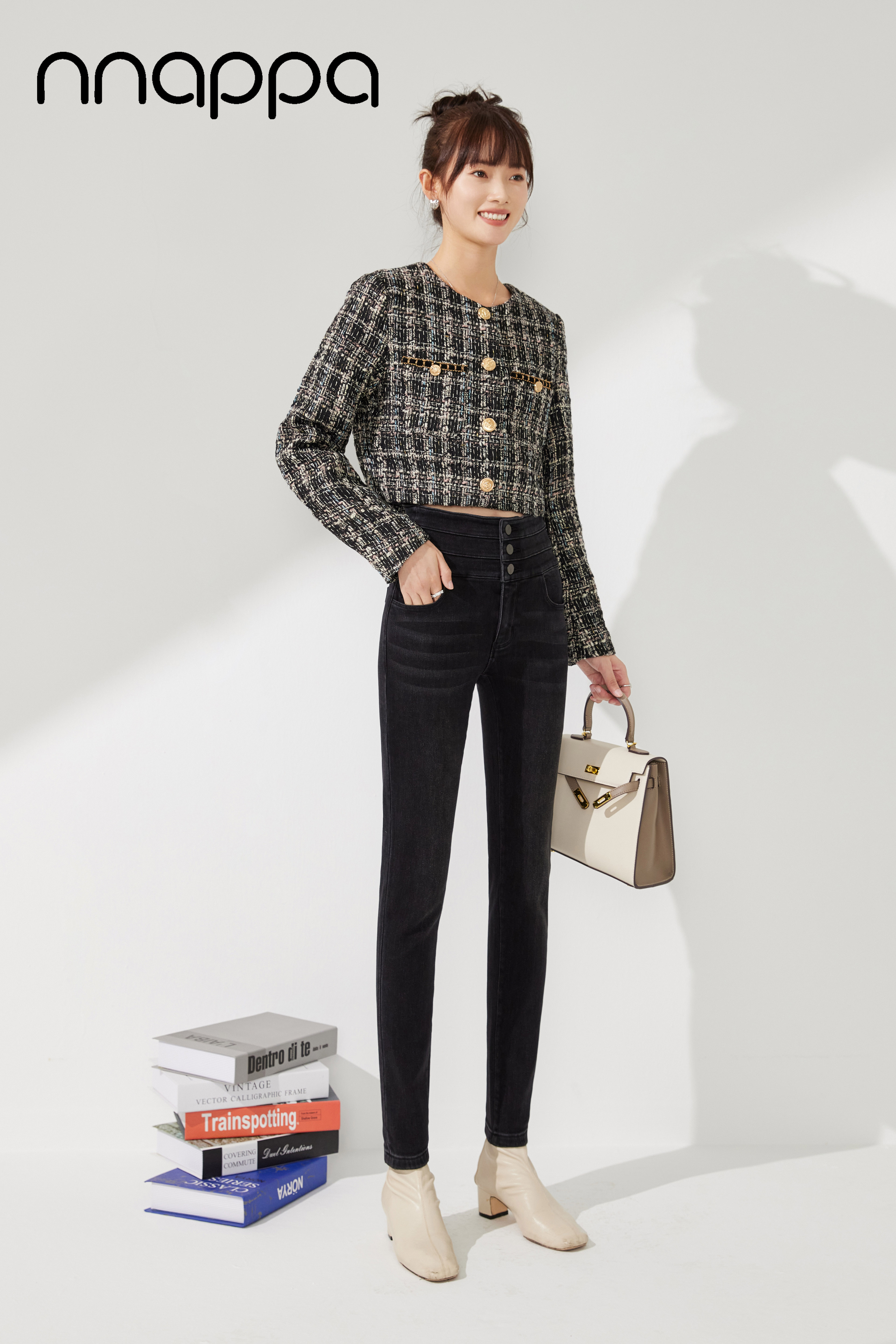 时尚磨绒三排扣牛仔女裤MRN2002