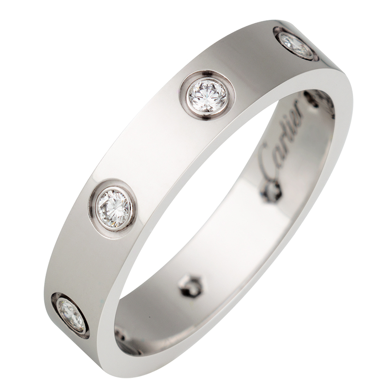 【包税】CARTIER/卡地亚 经典款 LOVE 18K金白金钻石结婚戒指镶嵌8颗钻石B4050600