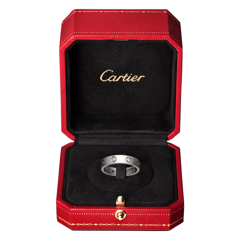 Love结婚戒指,18克拉白金(750/1000),镶嵌8颗明亮式切割钻石,总计0.19克拉。宽度4mm。