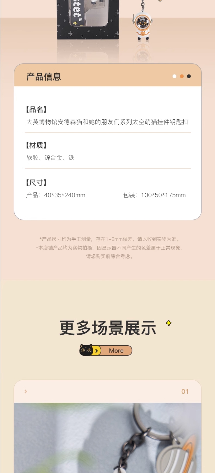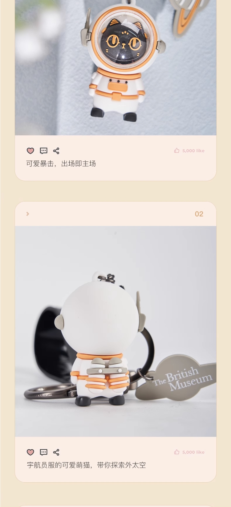 大英博物馆盖亚·安德森猫系列 可爱太空萌猫挂件钥匙扣