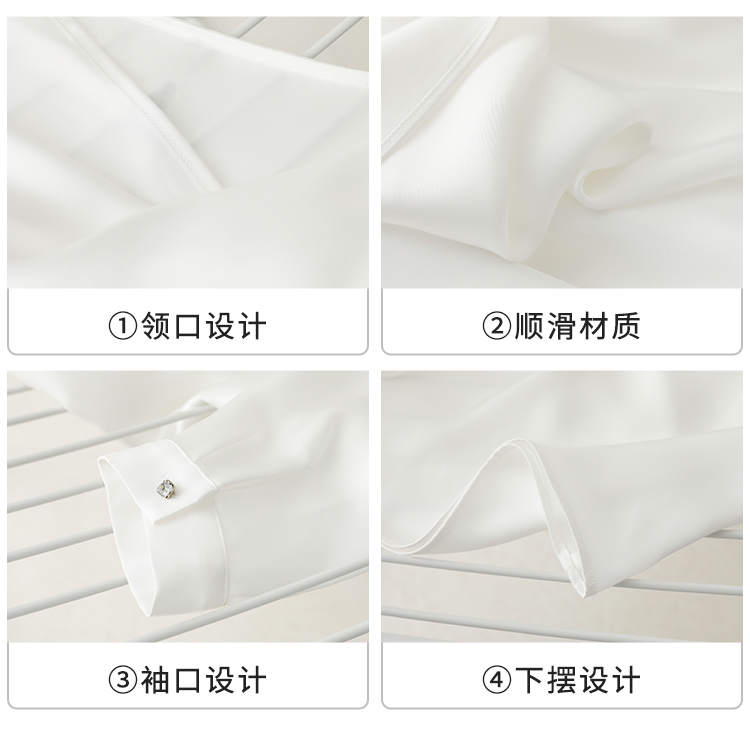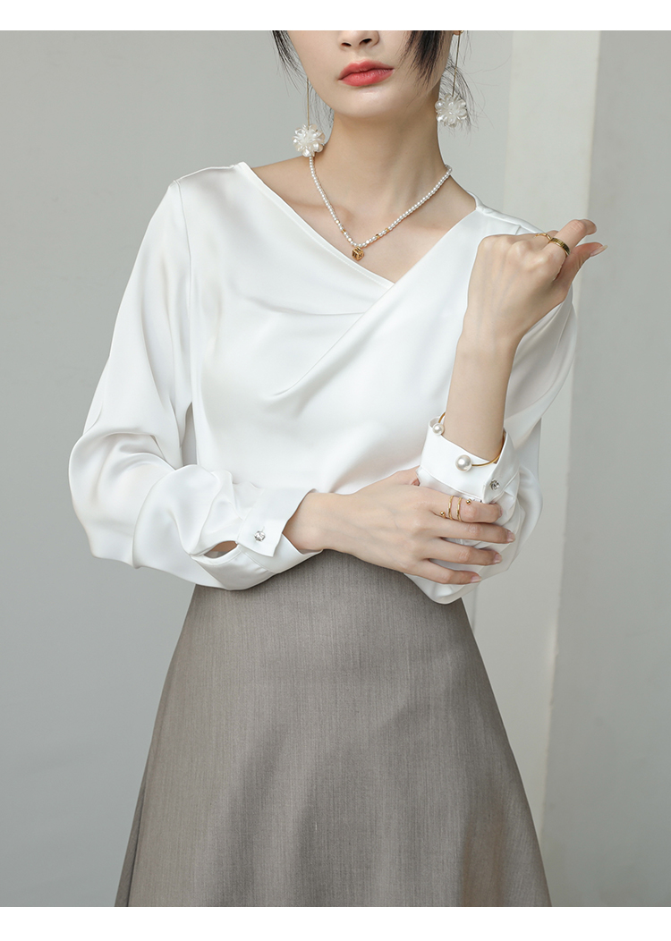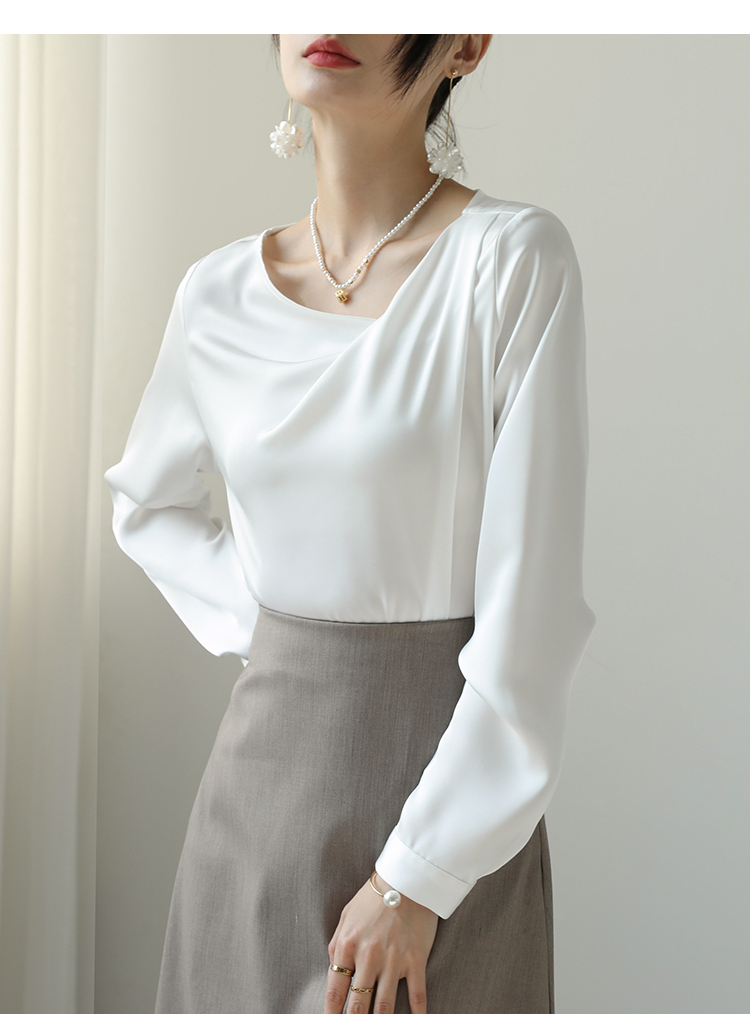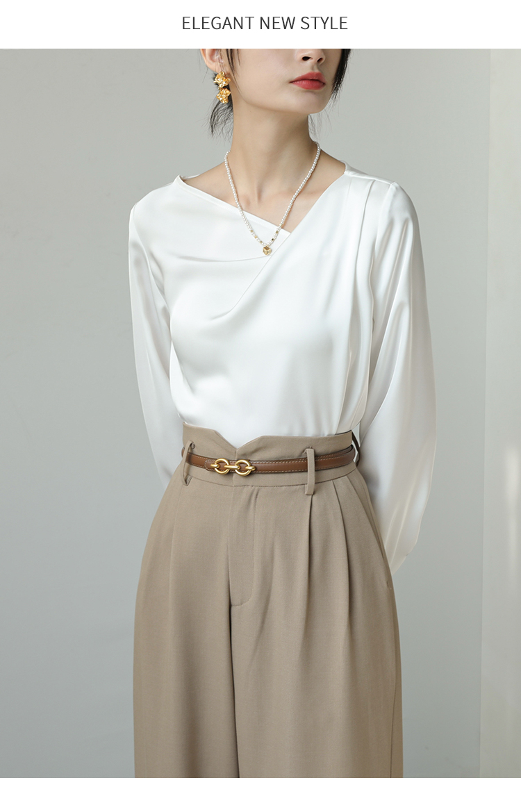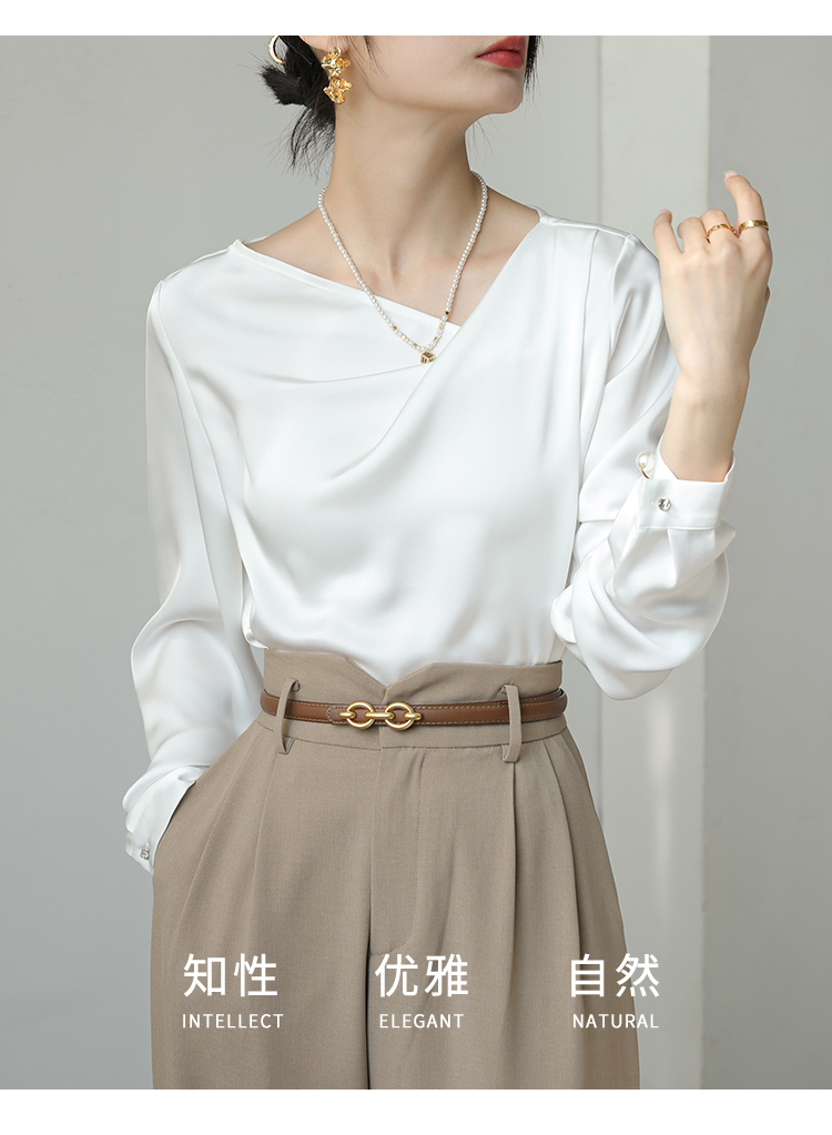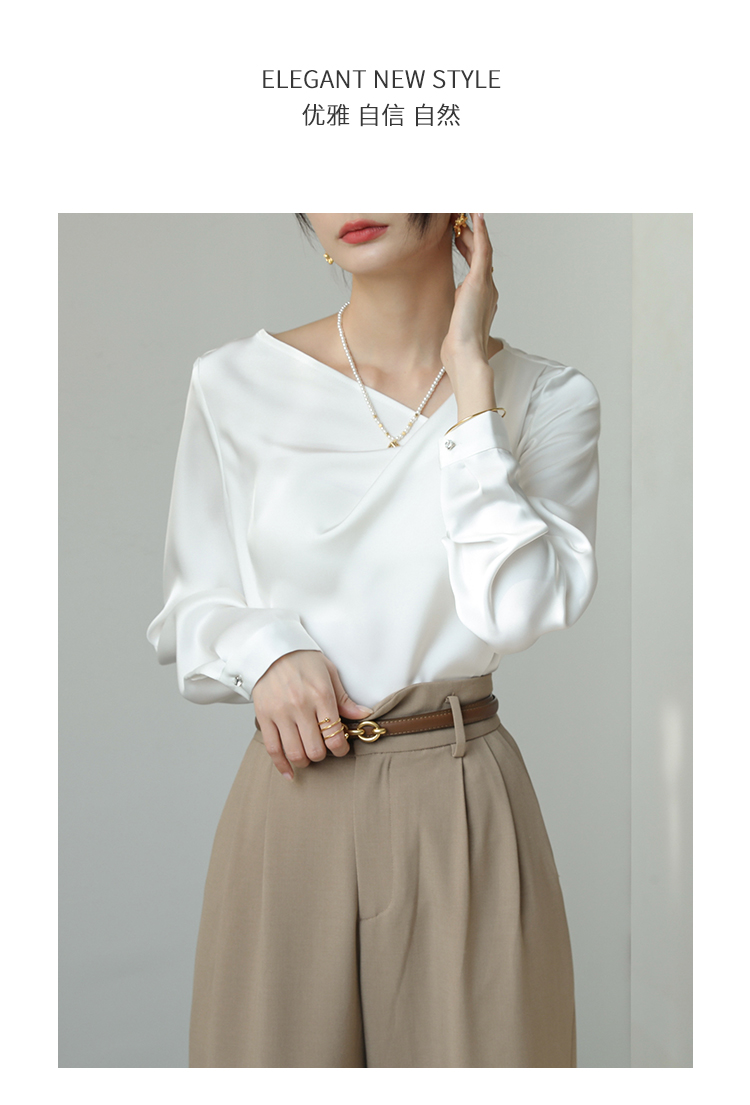 法式白色缎面优雅感不规则百搭衬衫女装春秋新款简约上衣