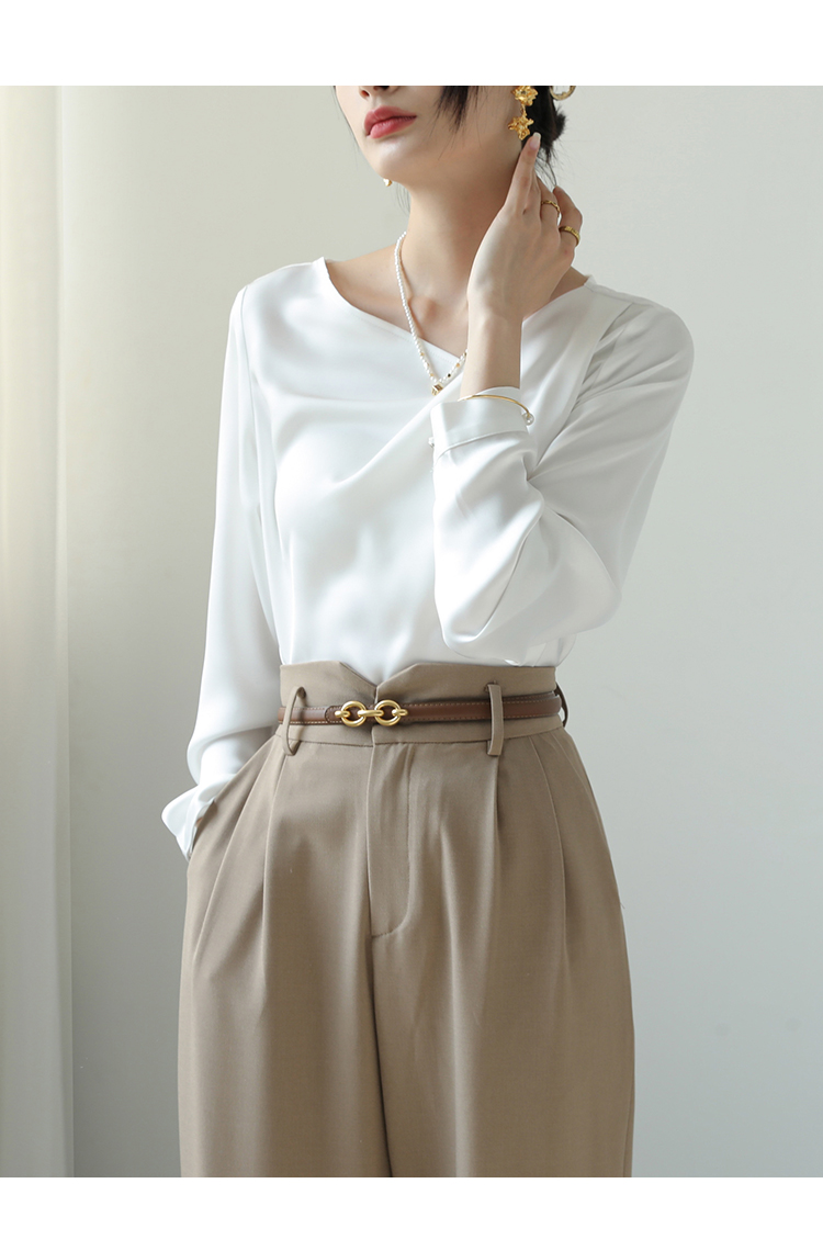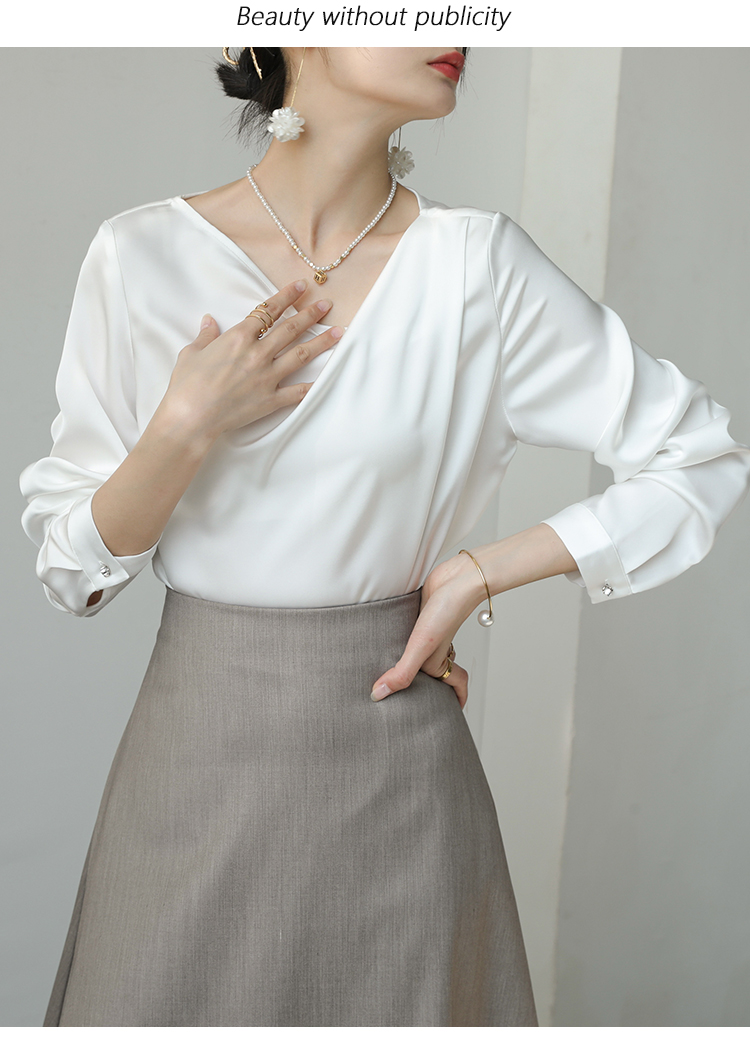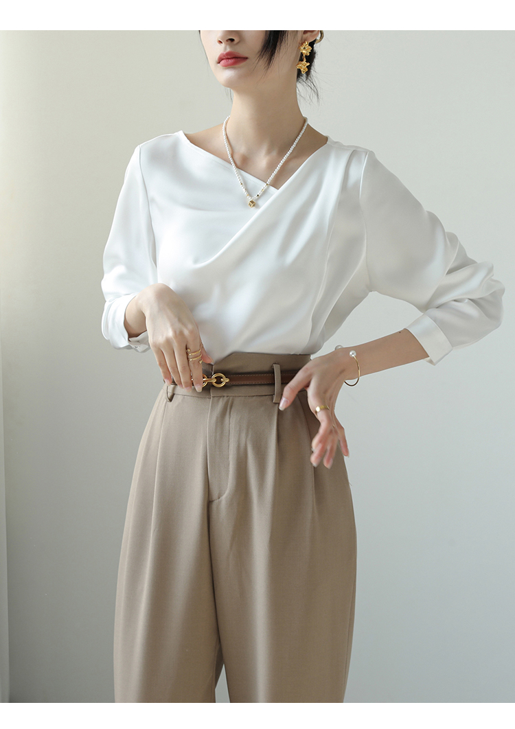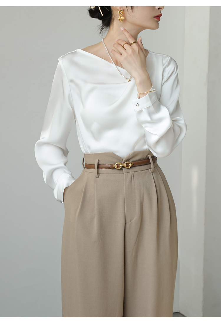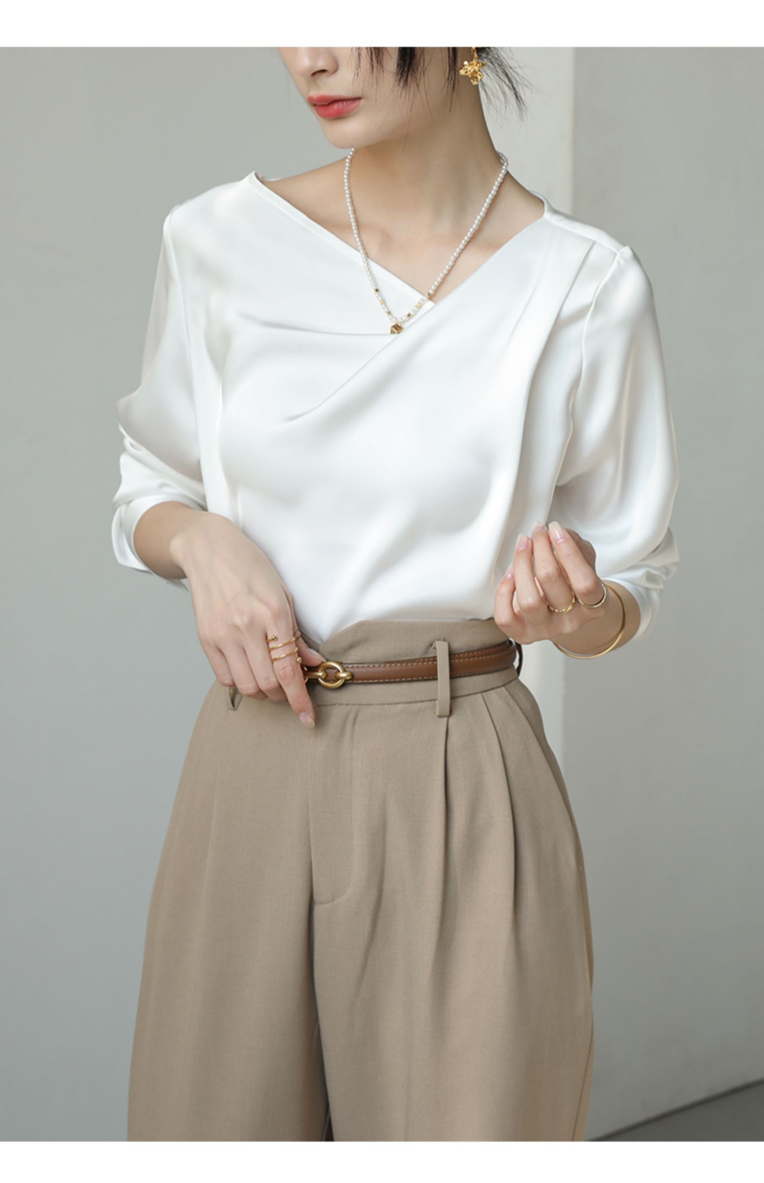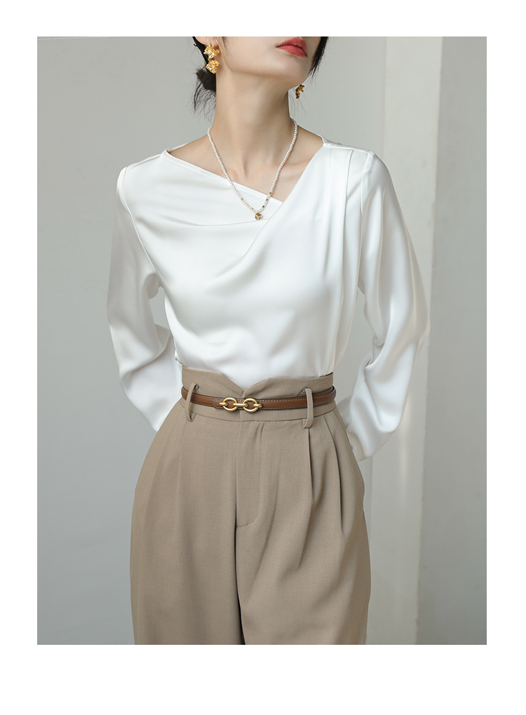 法式白色缎面优雅感不规则百搭衬衫女装春秋新款简约上衣