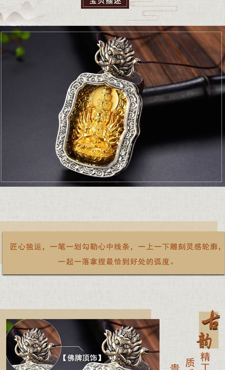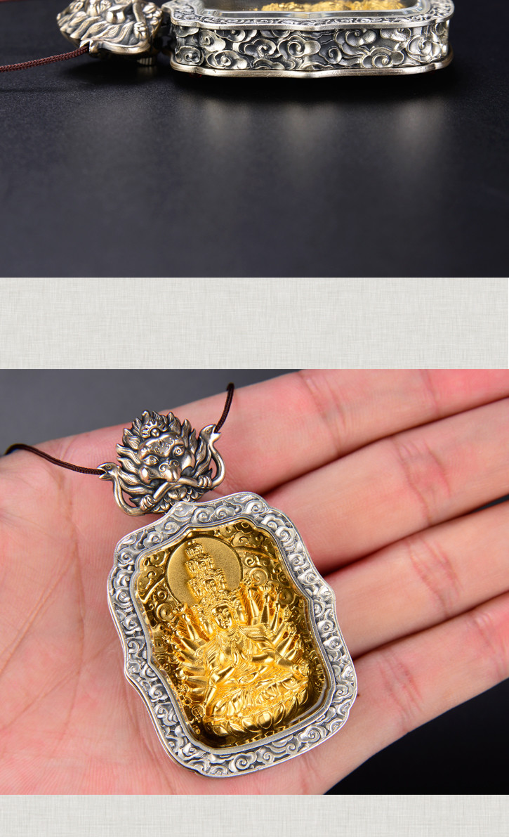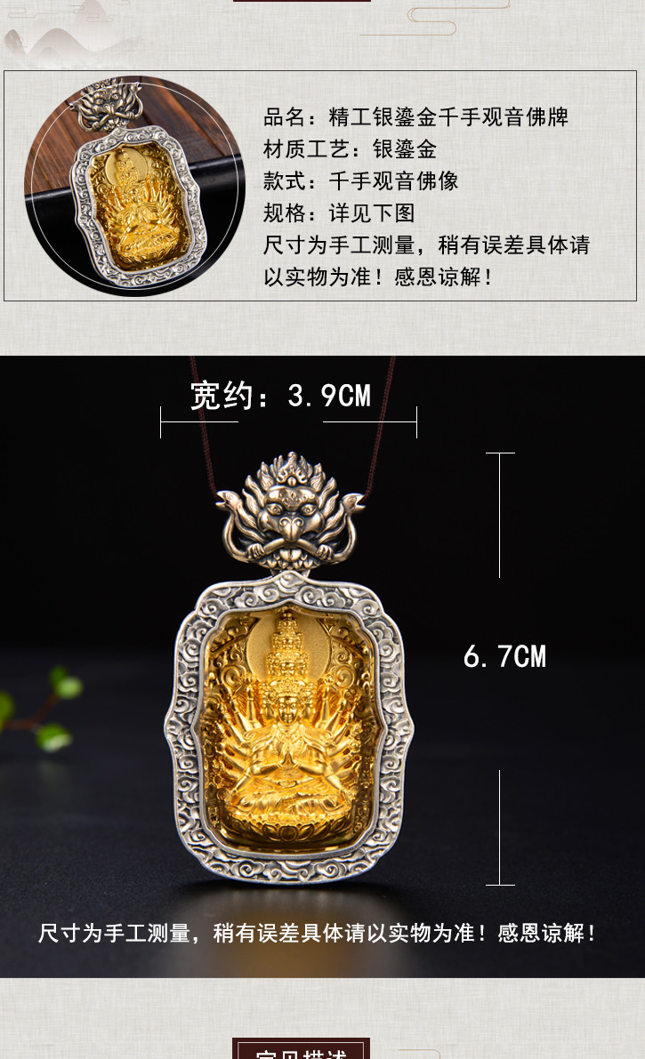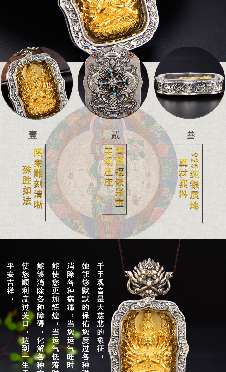 佛牌吊坠精工银纯银鎏金千手观音守护神嘎乌本命佛鎏金护身符车挂
