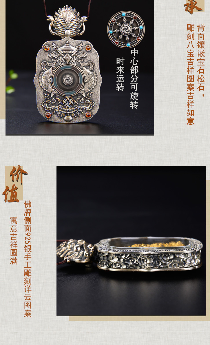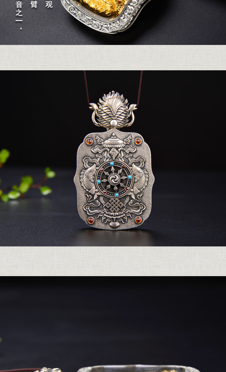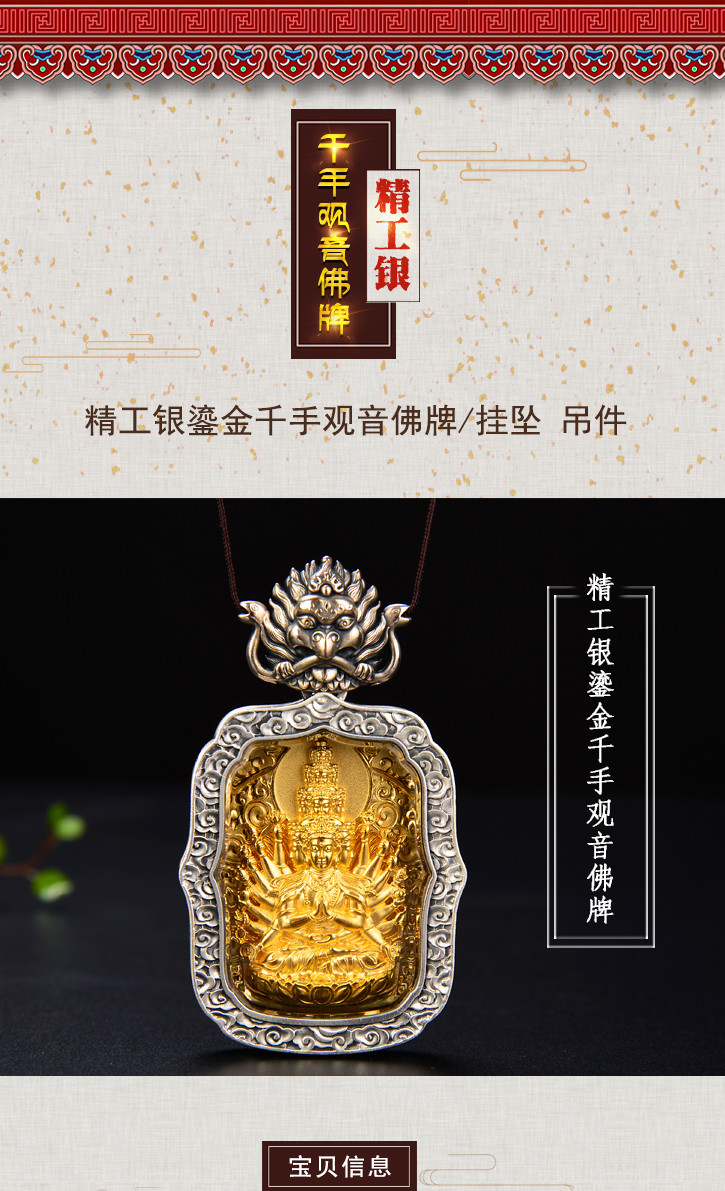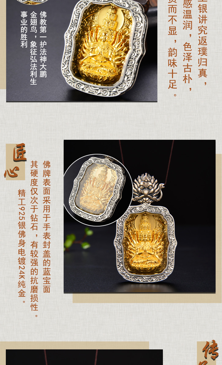 佛牌吊坠精工银纯银鎏金千手观音守护神嘎乌本命佛鎏金护身符车挂