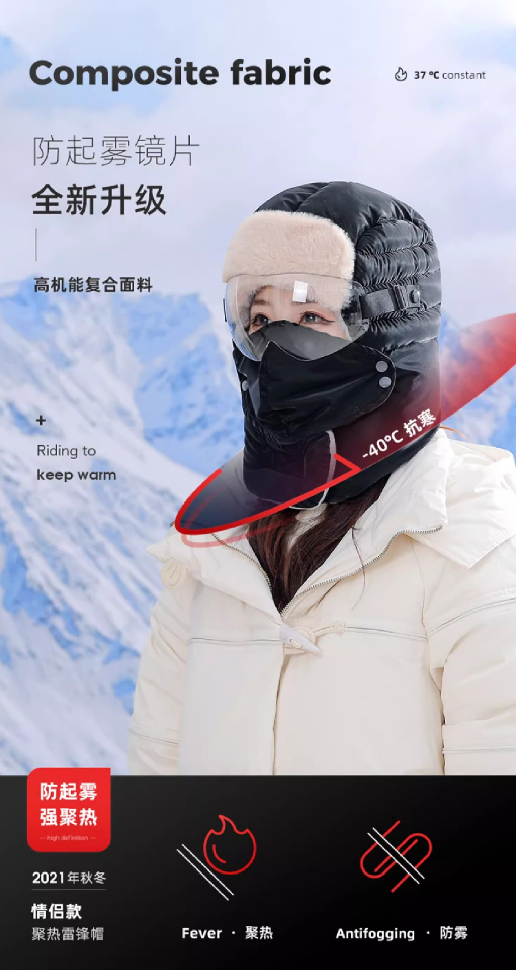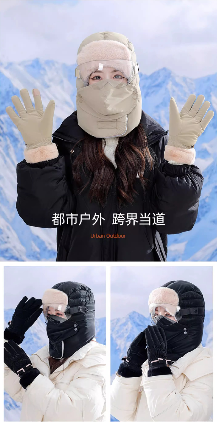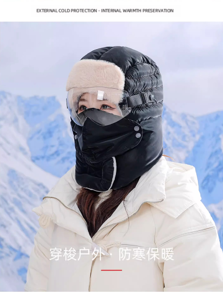【加厚保暖毛毛帽】2026新款电动车帽子男女骑行防风帽 冬季头套棉帽保暖雷锋帽
