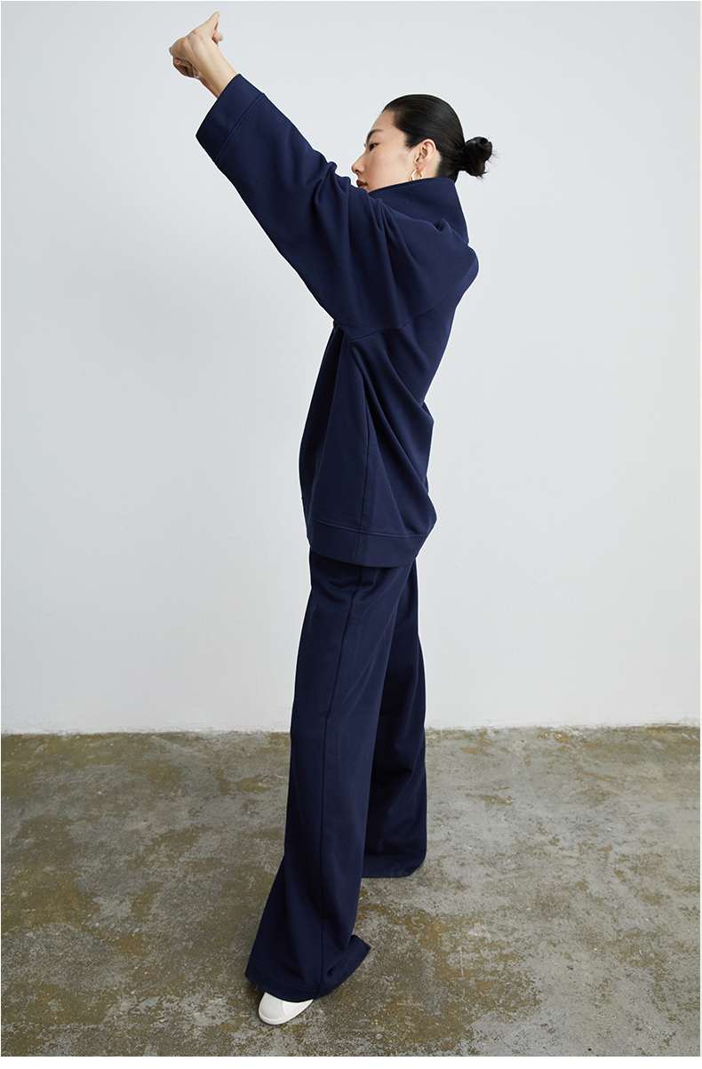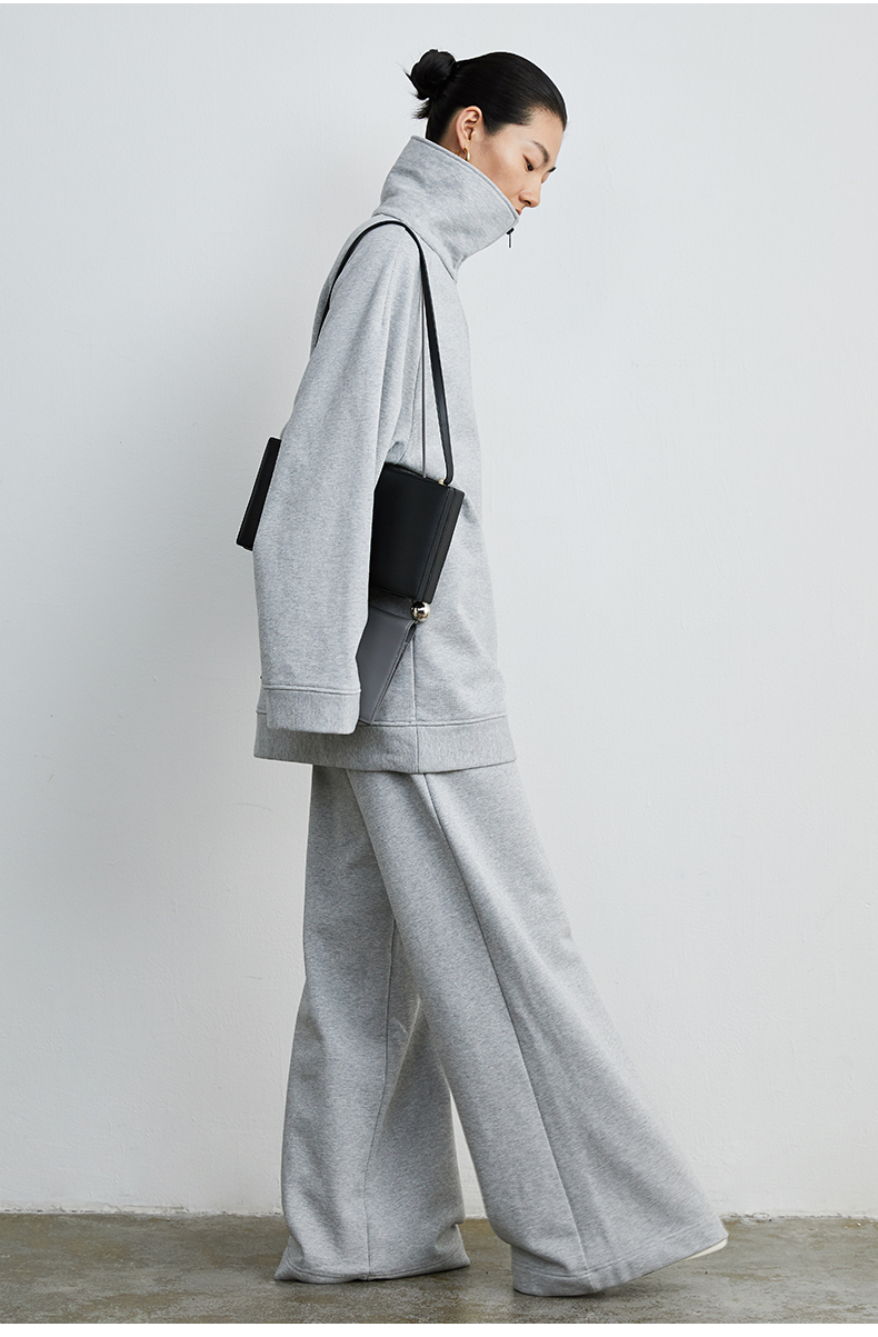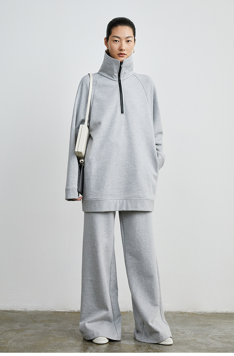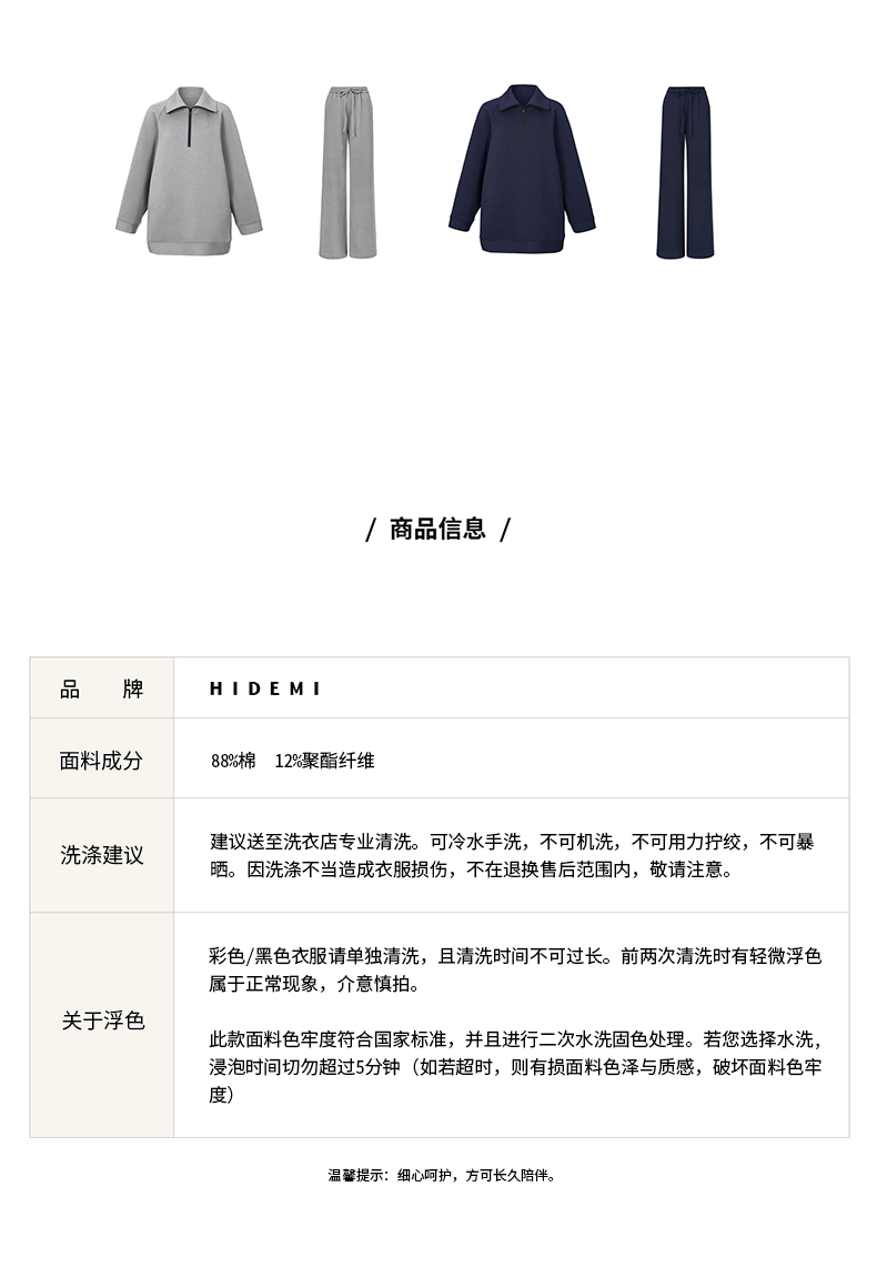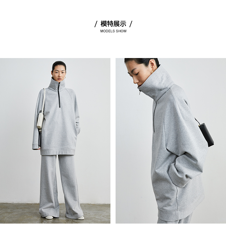 HIDEMI 拉链廓形boylish运动卫衣套装 卫衣/长裤 灰色/深蓝