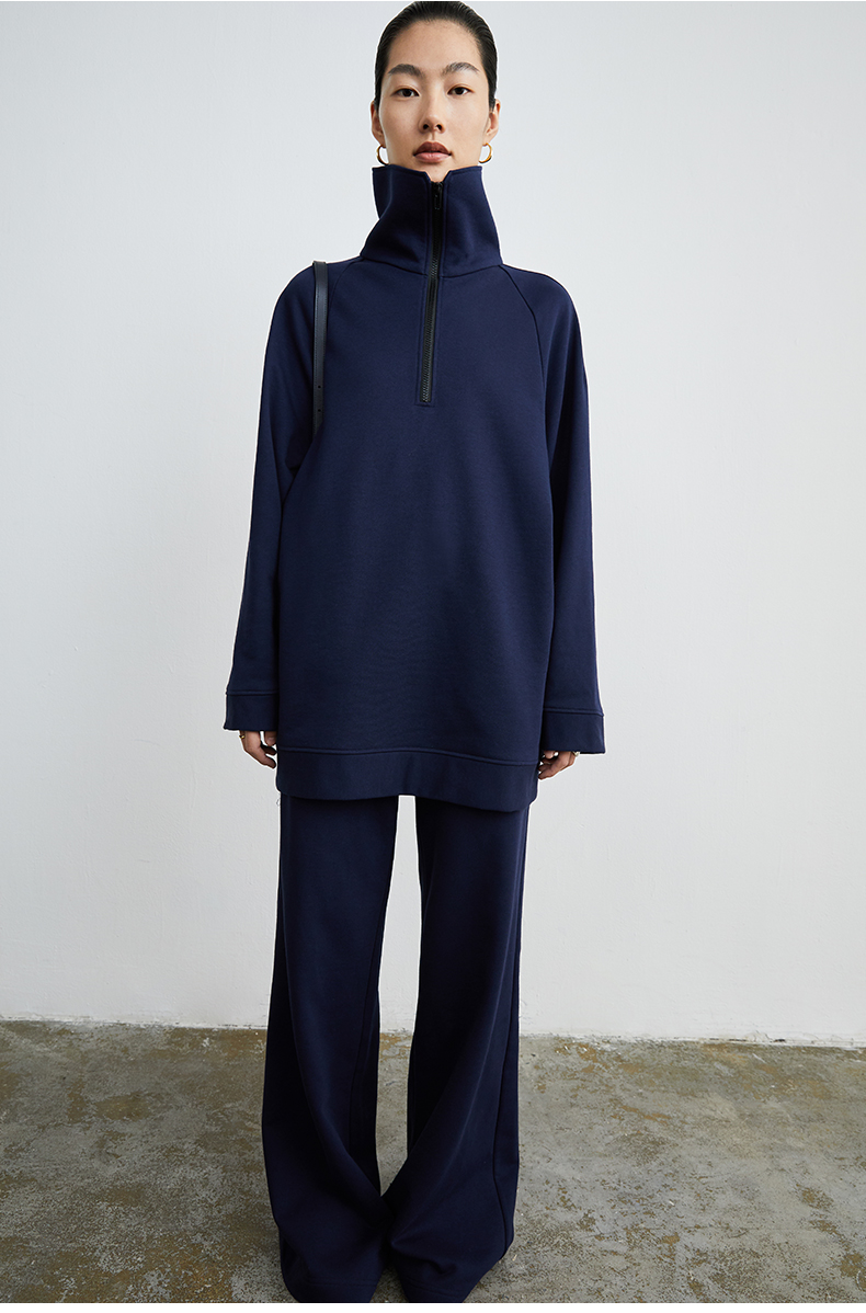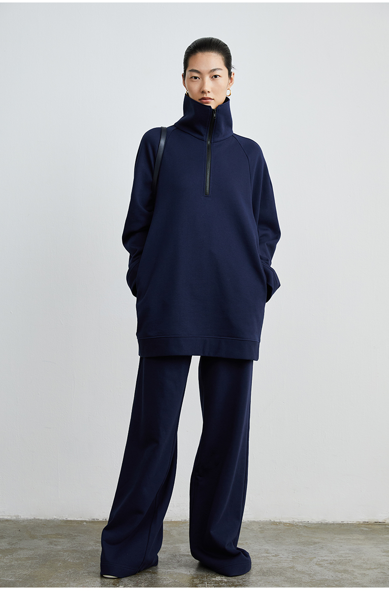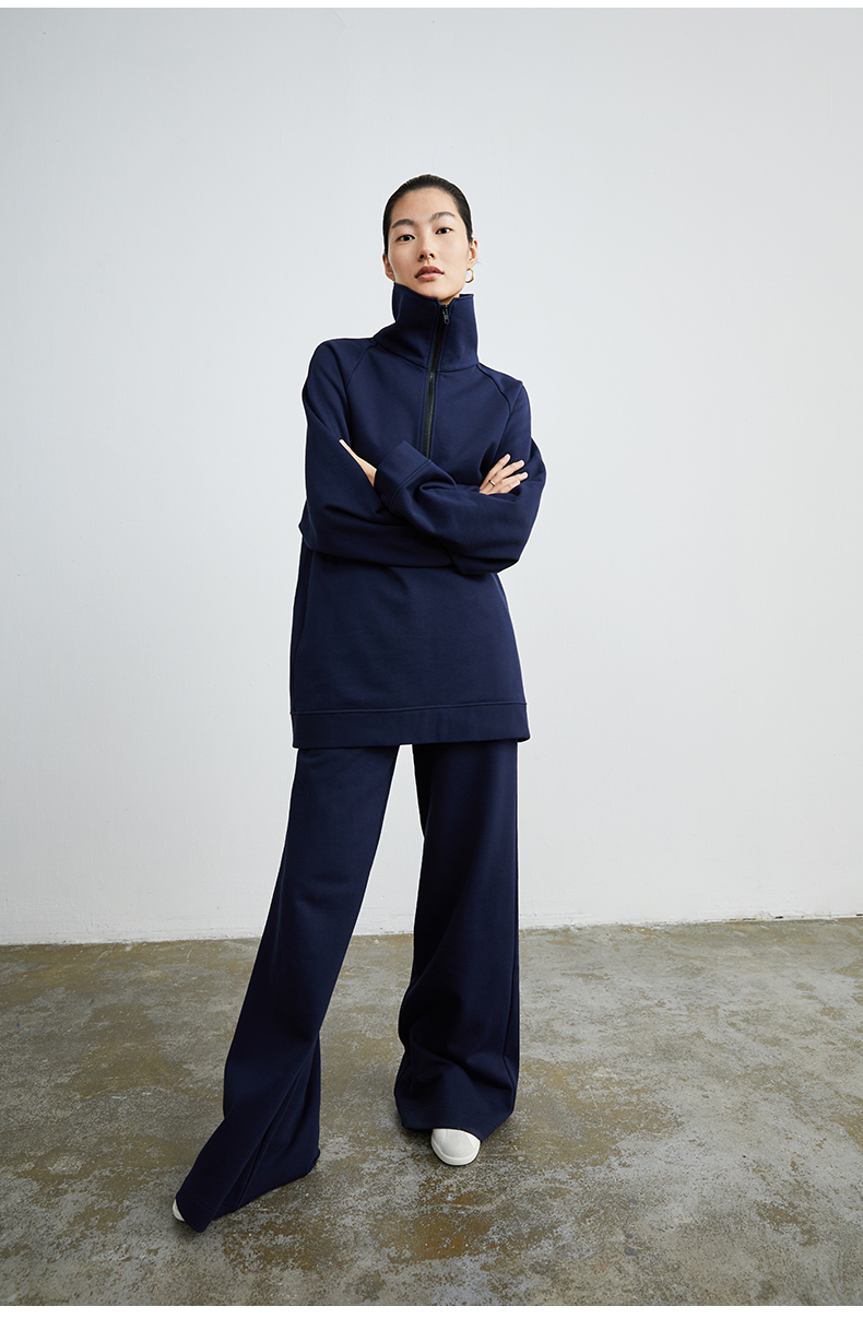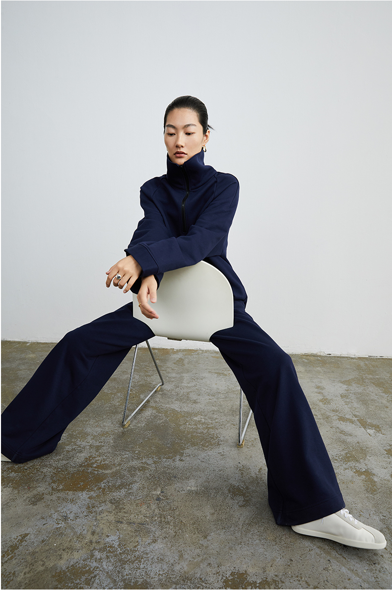 HIDEMI 拉链廓形boylish运动卫衣套装 卫衣/长裤 灰色/深蓝