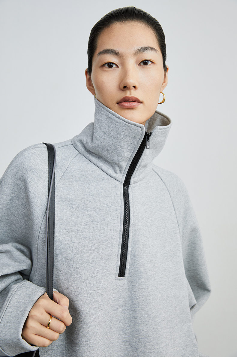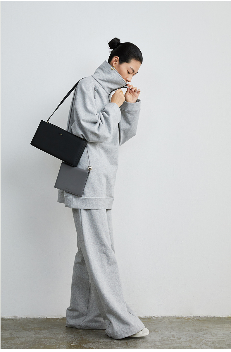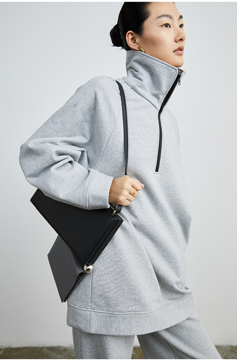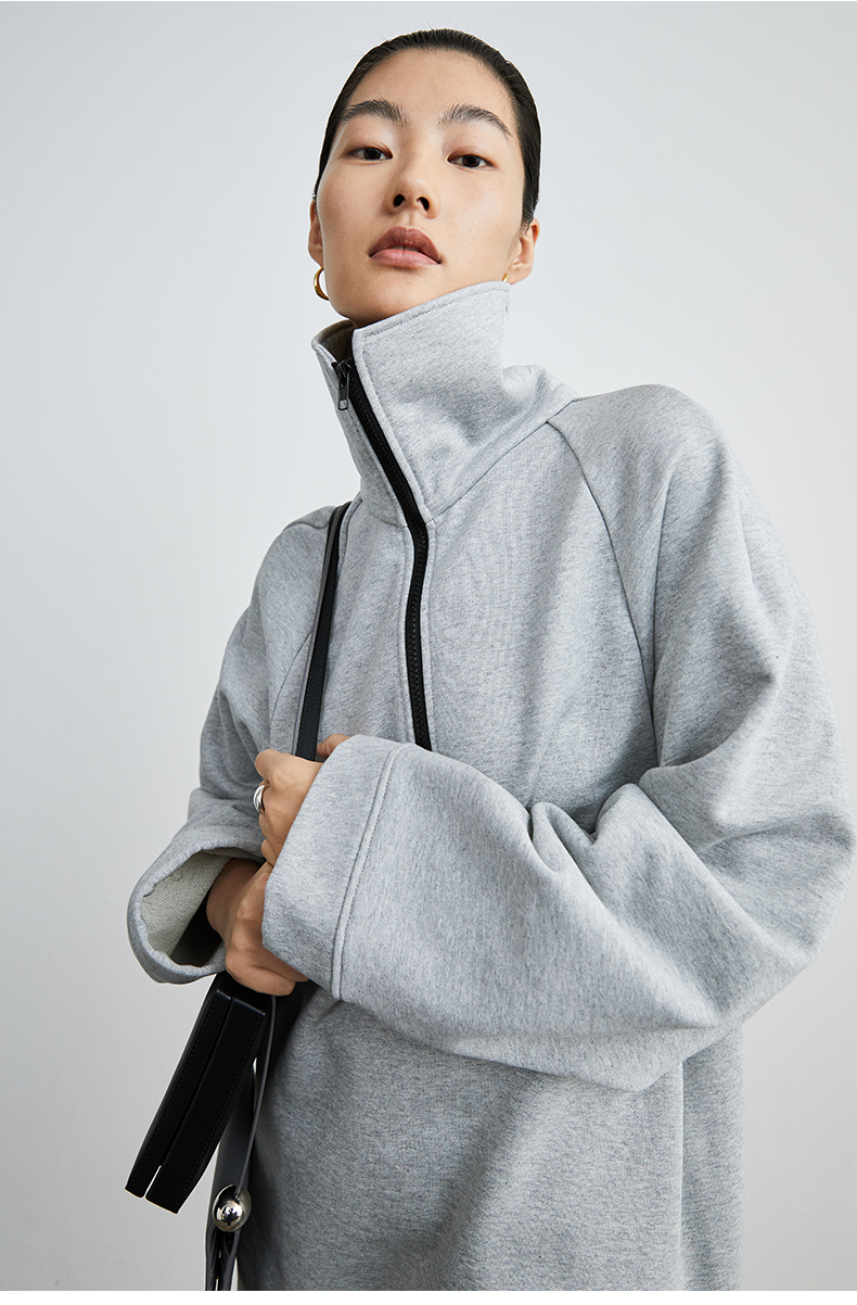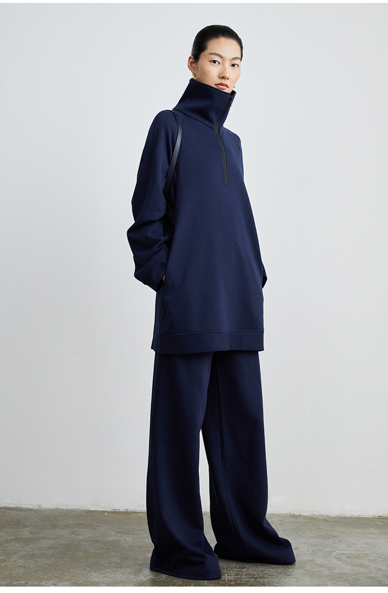 HIDEMI 拉链廓形boylish运动卫衣套装 卫衣/长裤 灰色/深蓝