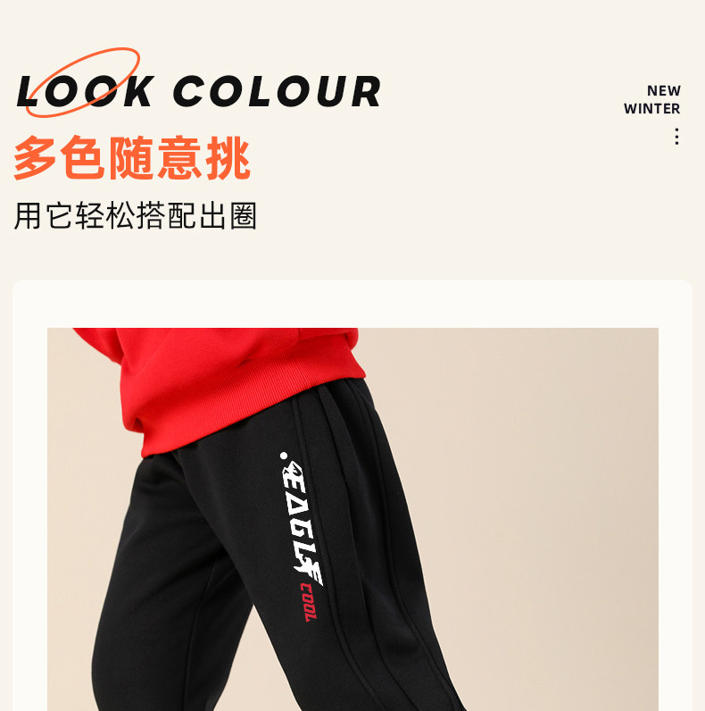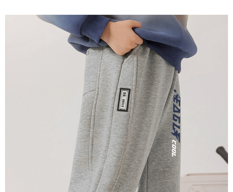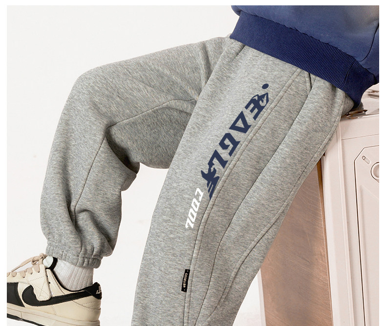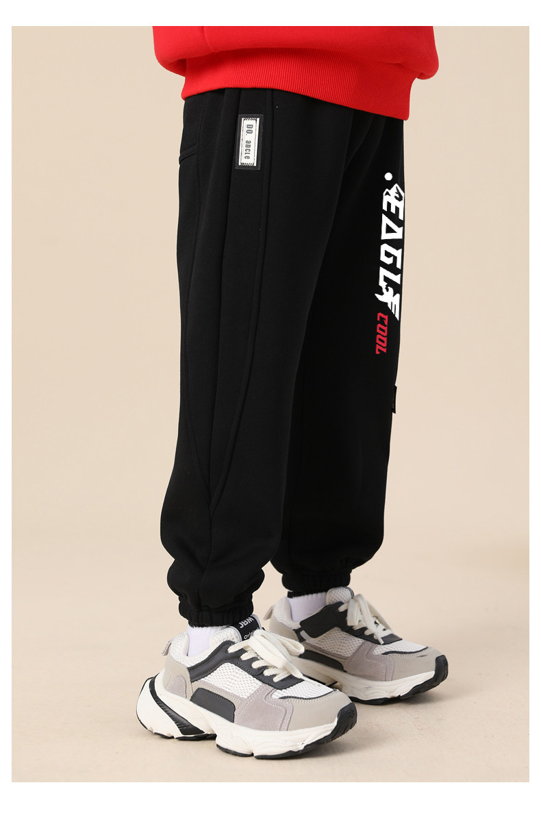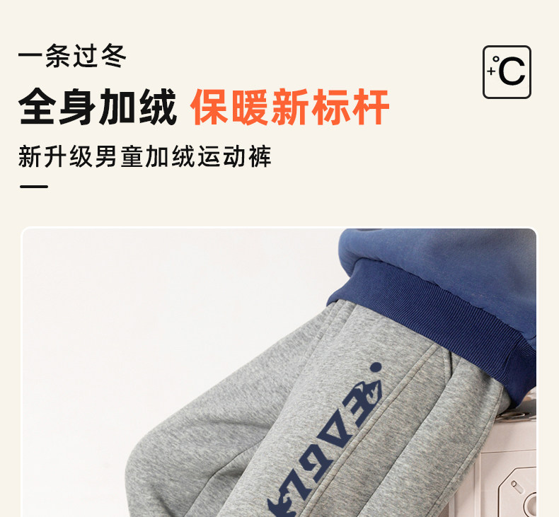 贝田2024新款冬季男童裤子加绒加厚秋冬款一体绒保暖男孩束脚卫裤