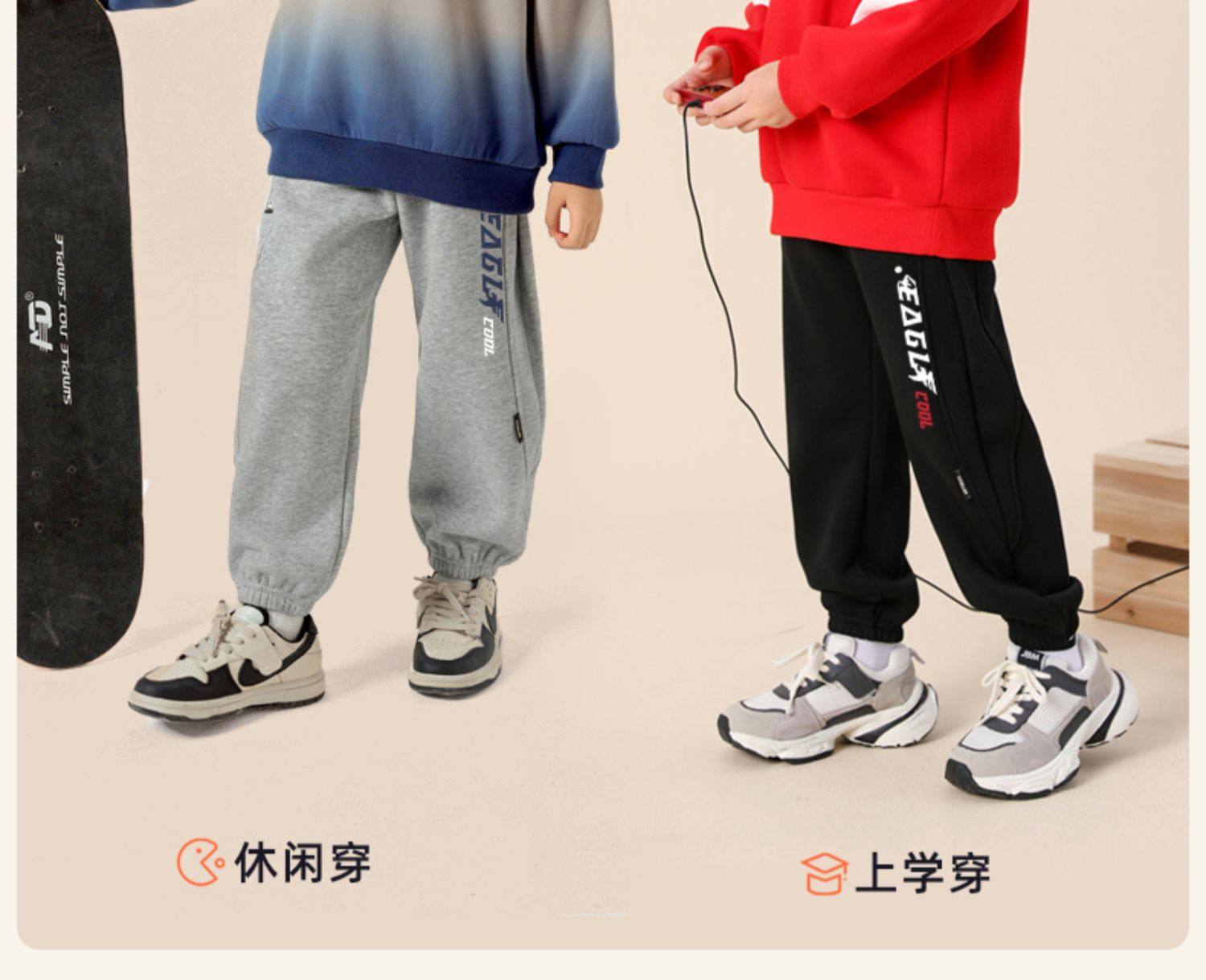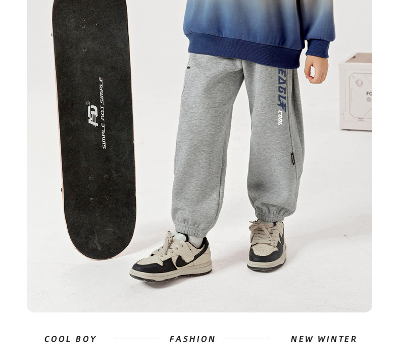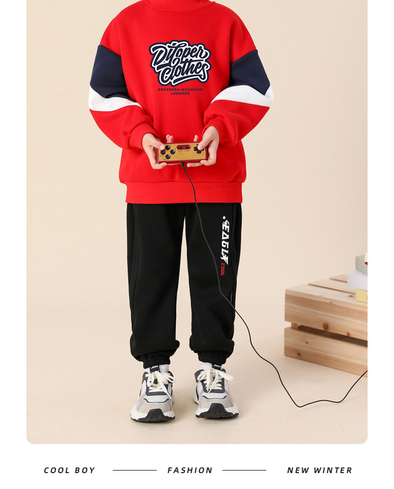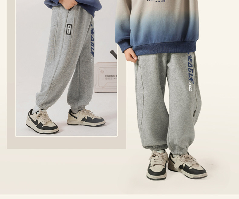 贝田2024新款冬季男童裤子加绒加厚秋冬款一体绒保暖男孩束脚卫裤
