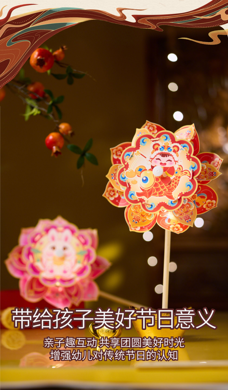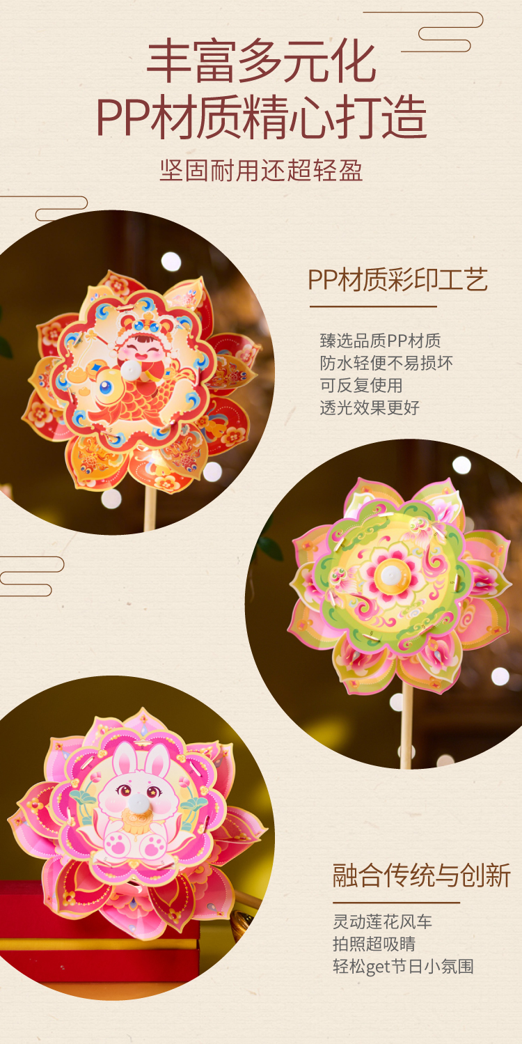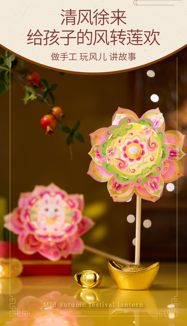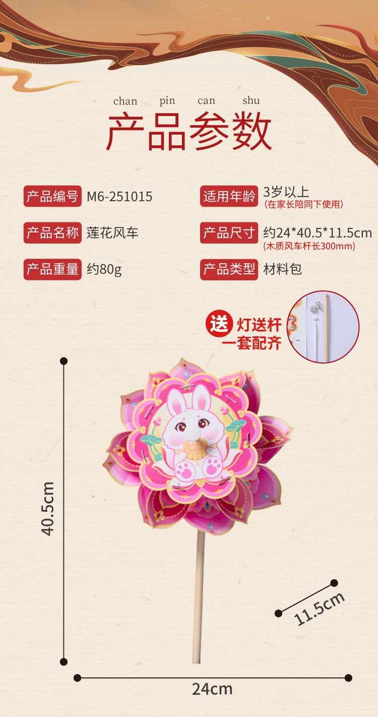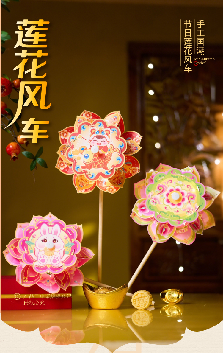 【供】中秋节莲花风车灯笼手工diy儿童制作材料古风玉兔子花灯玩具2025