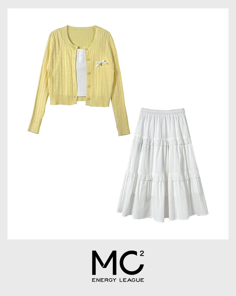 女装针织开衫配背心加绣花半裙三件套-7706S5212016