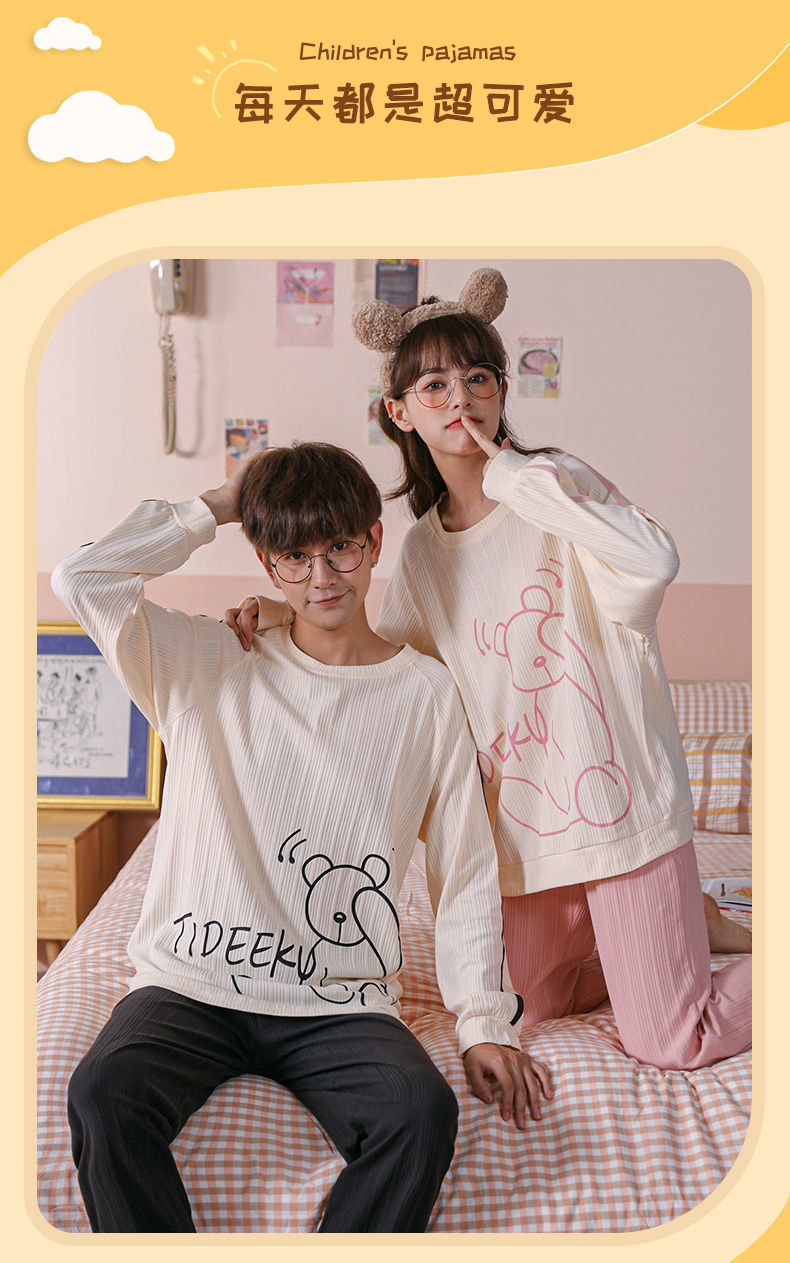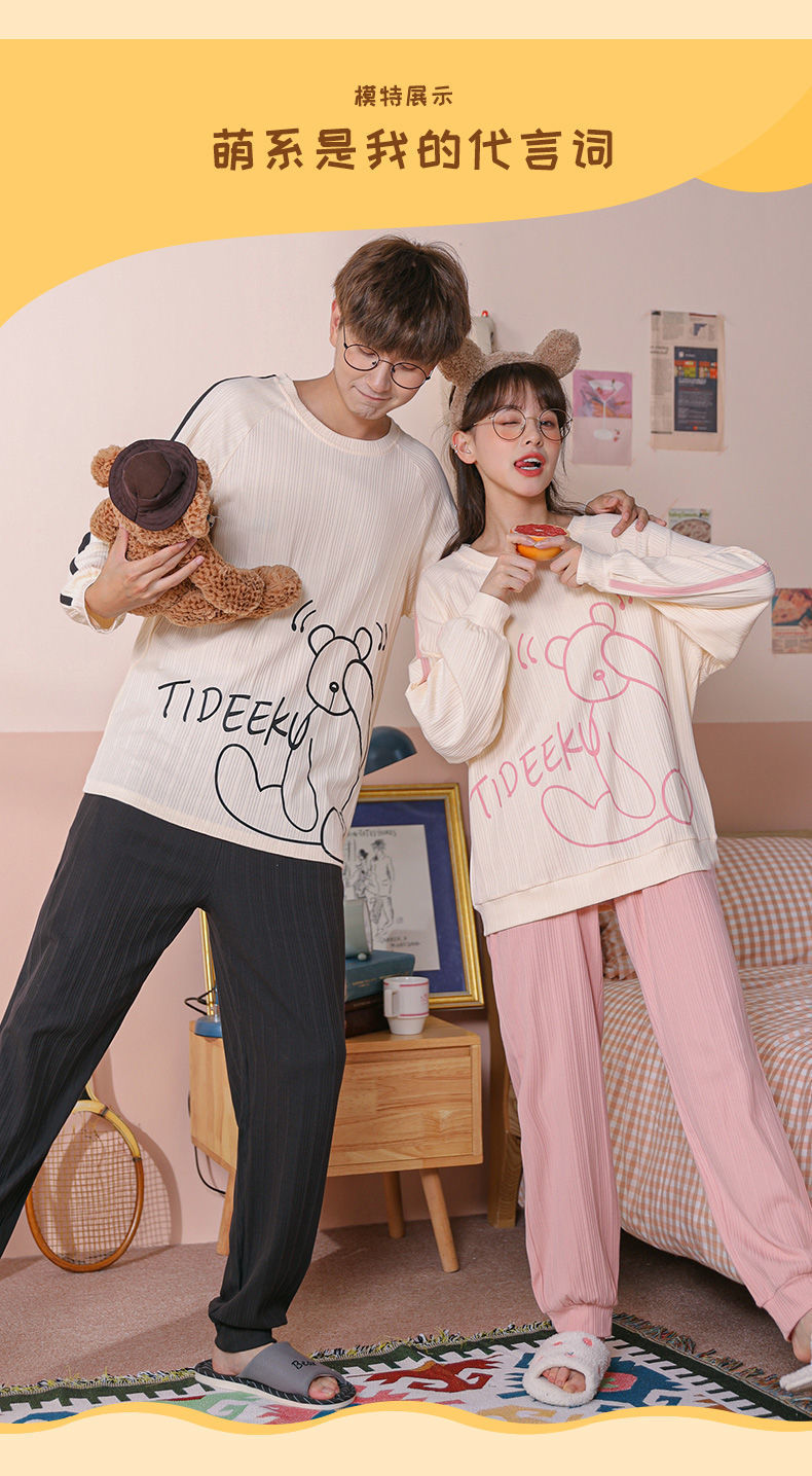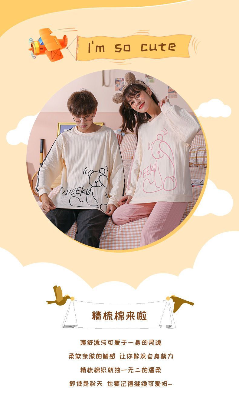 【精梳棉情侣睡衣!让你舒服到骨子里】超亲肤,柔软仿若无感,穿上不想脱下来!吸汗透气时尚百搭,好看到要穿出街!长袖长裤家居服套装