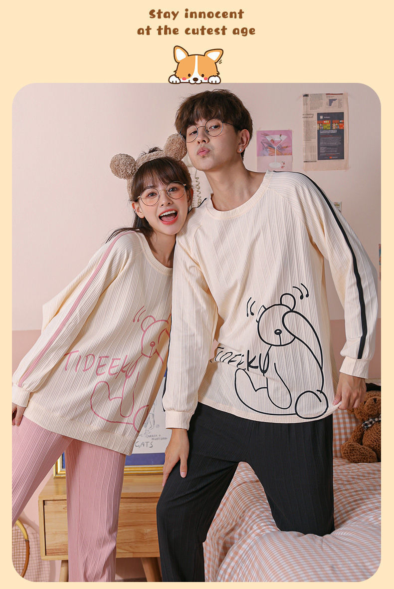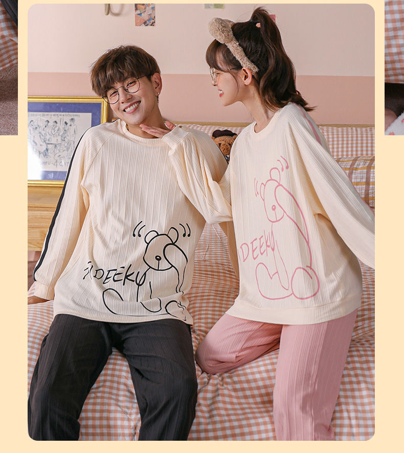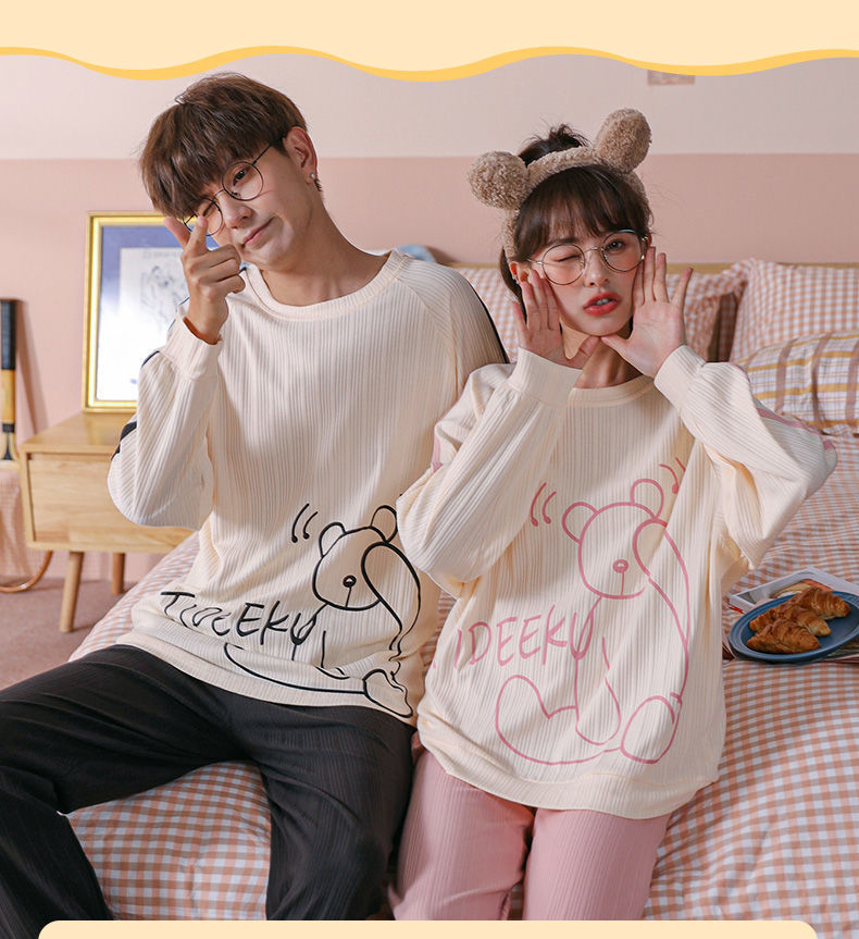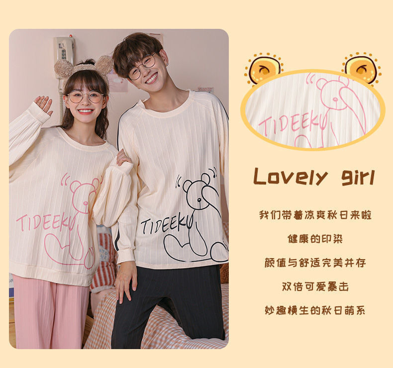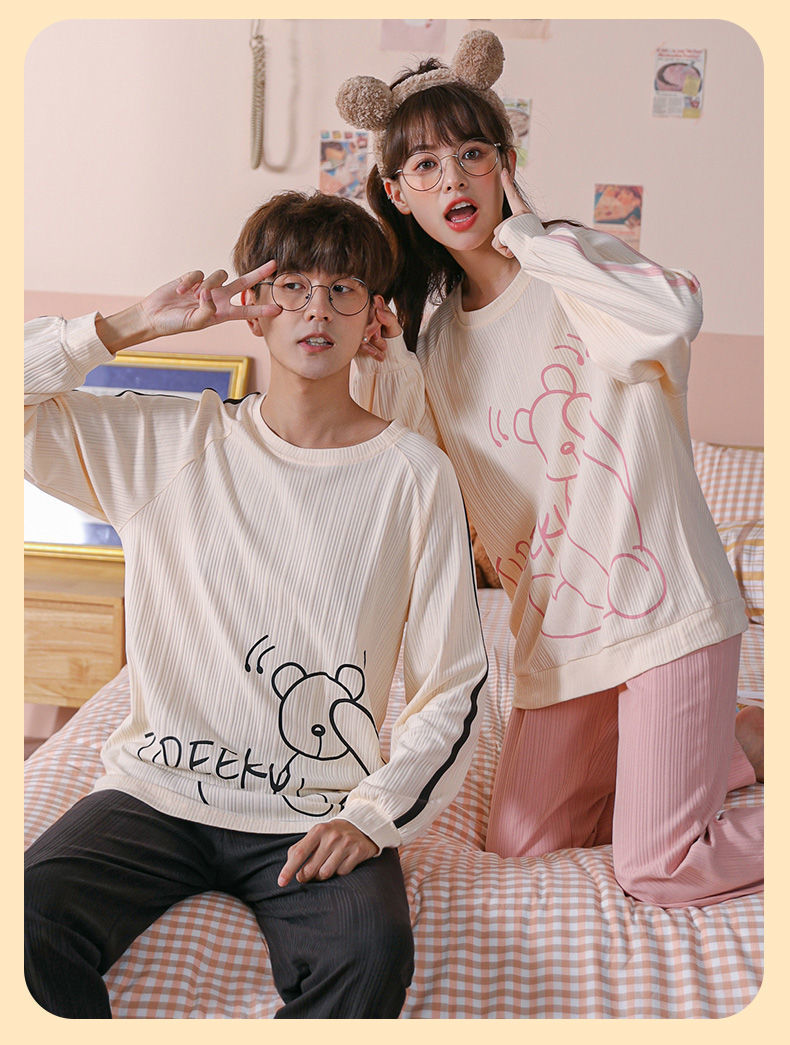 【精梳棉情侣睡衣!让你舒服到骨子里】超亲肤,柔软仿若无感,穿上不想脱下来!吸汗透气时尚百搭,好看到要穿出街!长袖长裤家居服套装