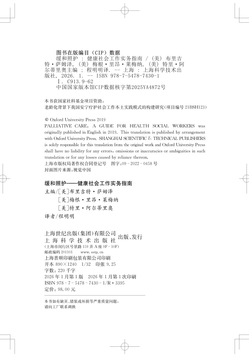 缓和照护 健康社会工作实务指南 程明明 主译 供各级医疗机构中相关专业的医务教育工作者临床医护人员阅读参考上海科学技术出版社