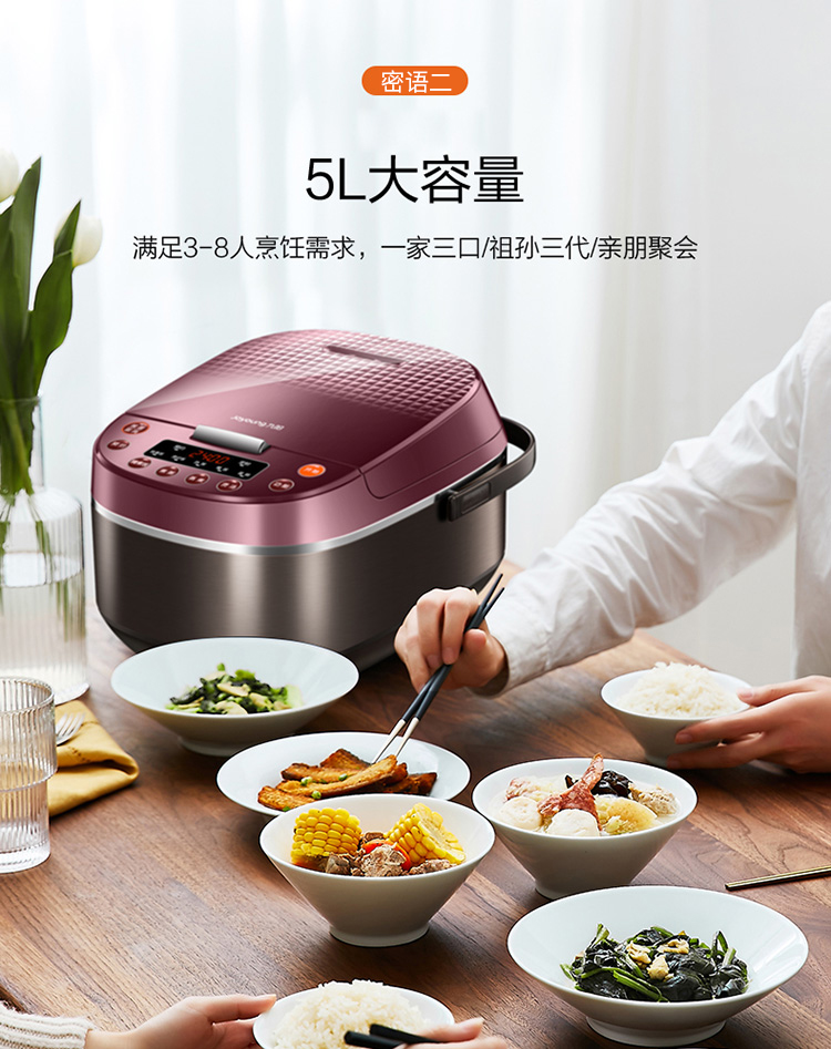 九阳(Joyoung)电饭煲 电饭锅 智能预约 多功能大功率 5L土灶原釜 预约大火力 F-50FY813