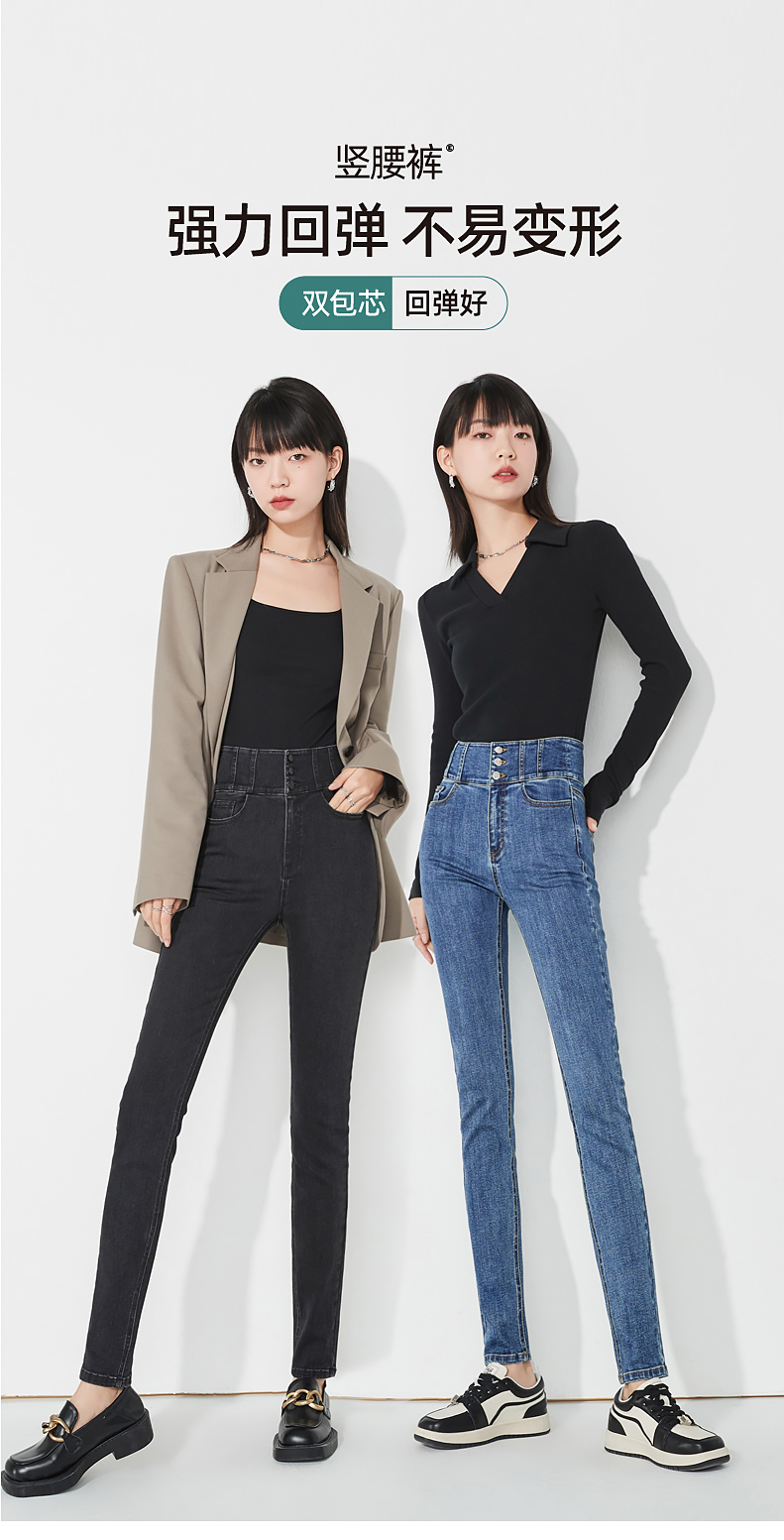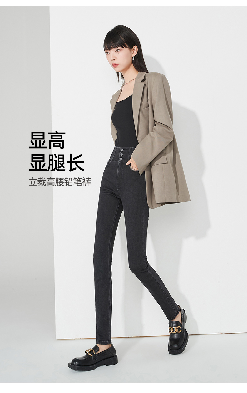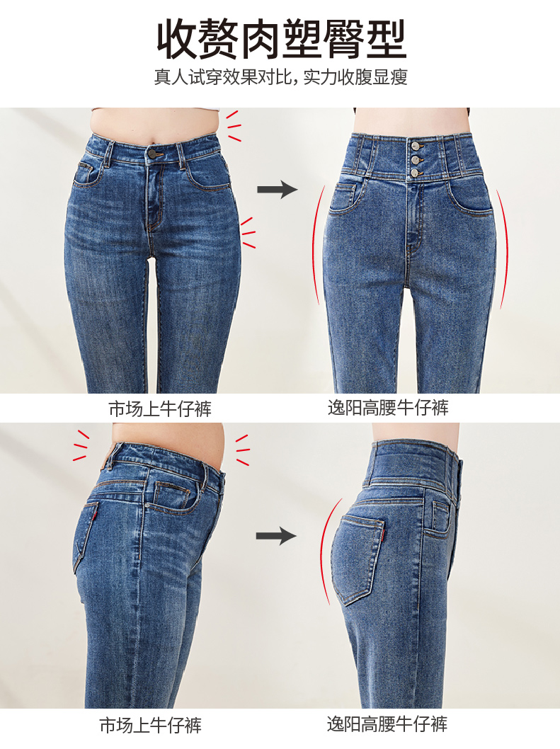 逸阳不易褪色黑色高腰牛仔铅笔裤女秋季新款弹力修身显瘦小脚裤子9111