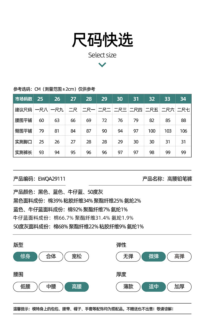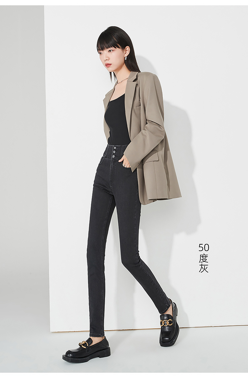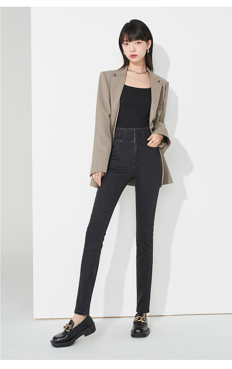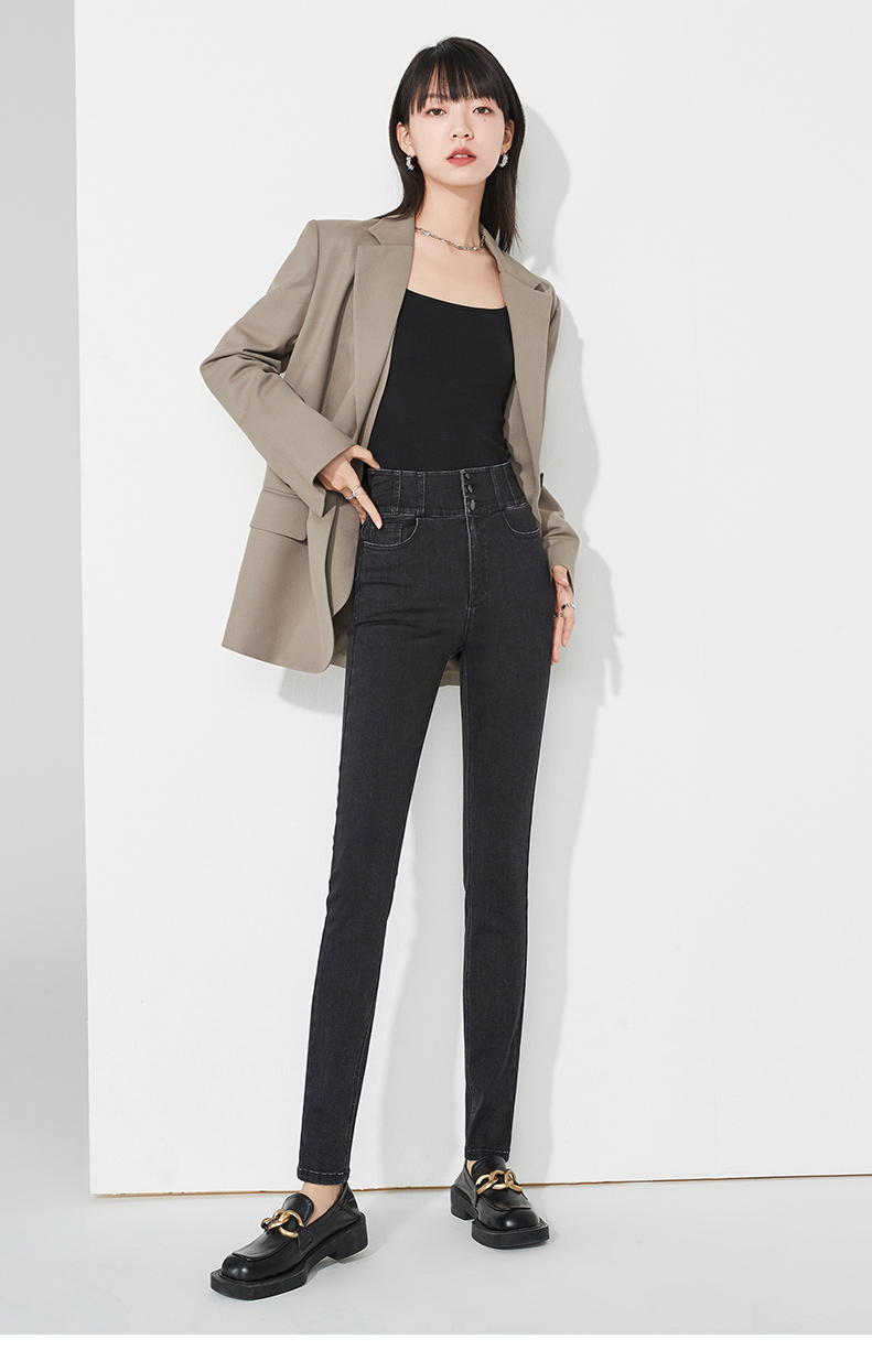 逸阳不易褪色黑色高腰牛仔铅笔裤女秋季新款弹力修身显瘦小脚裤子9111