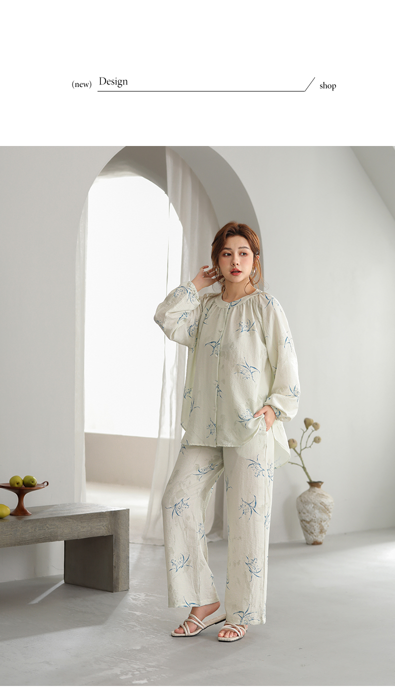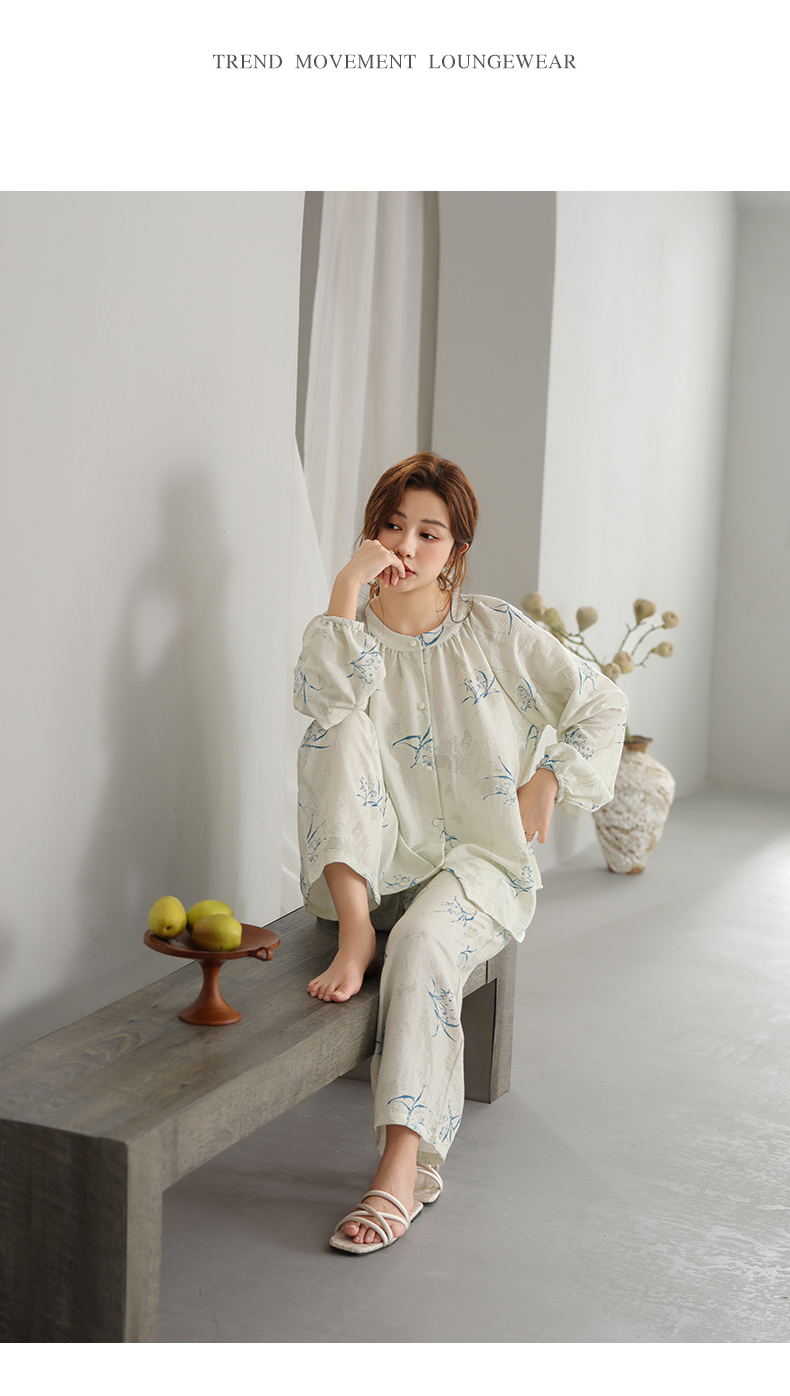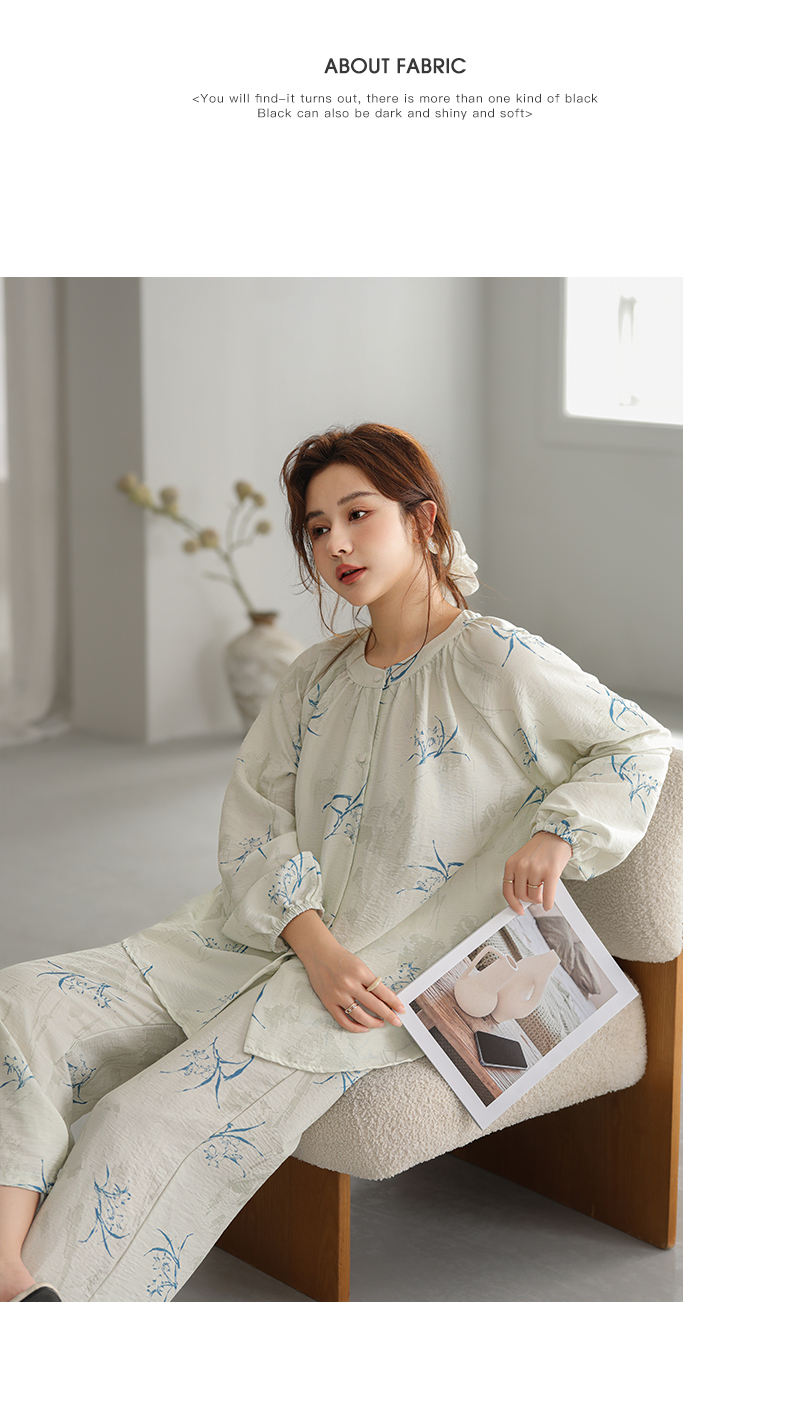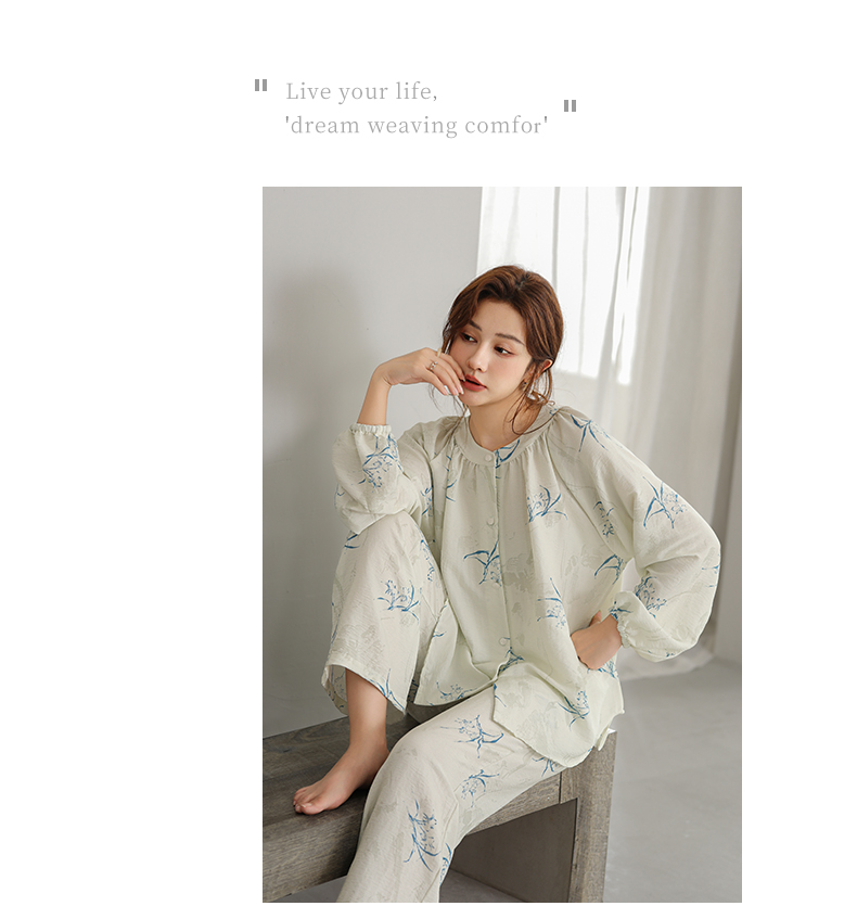 可人儿原创设计新款泡泡绵女士睡衣春秋长袖时尚可外出家居服套装