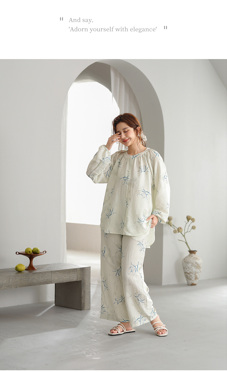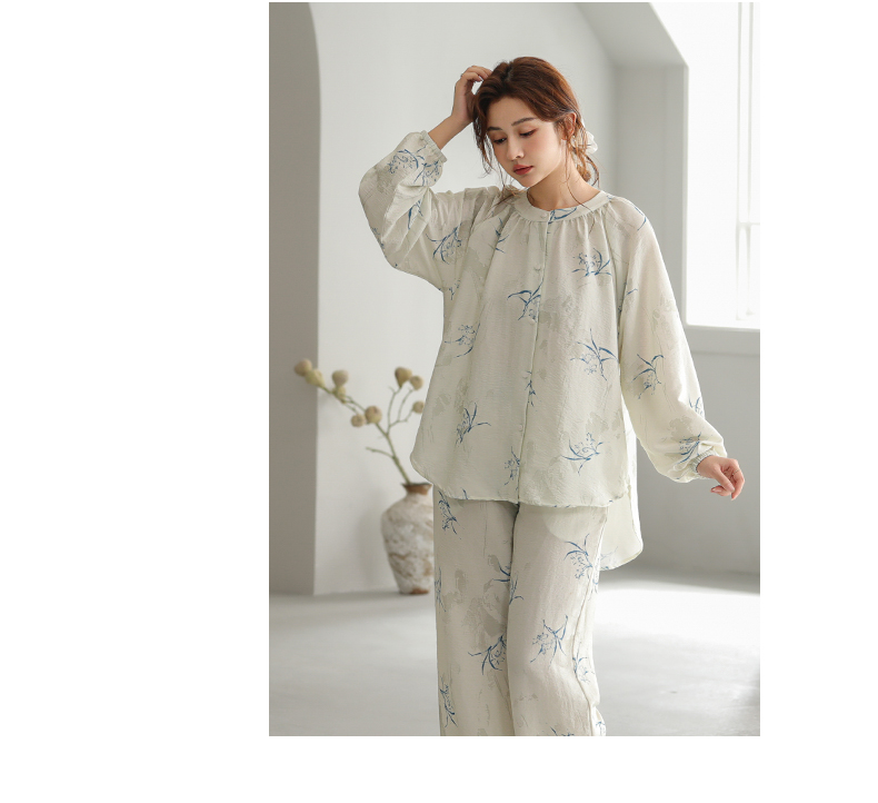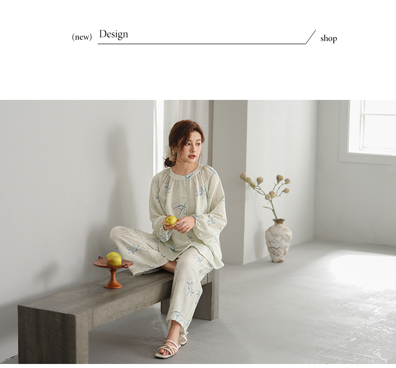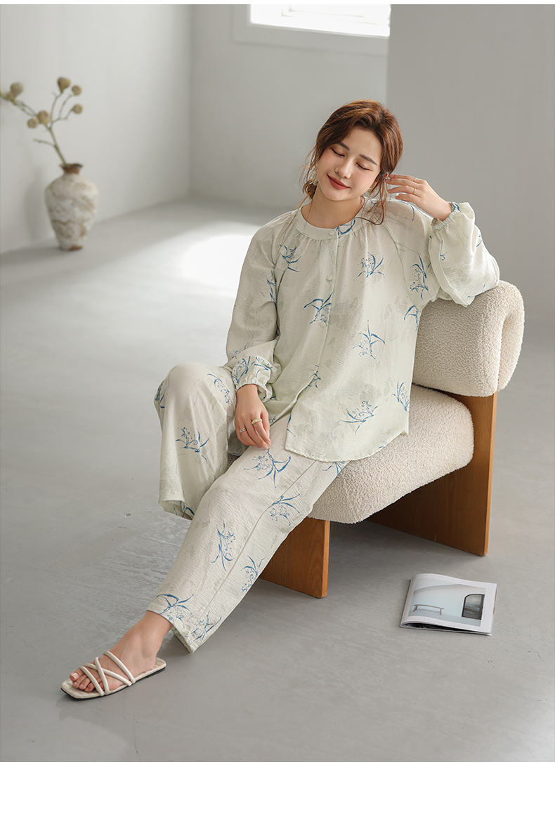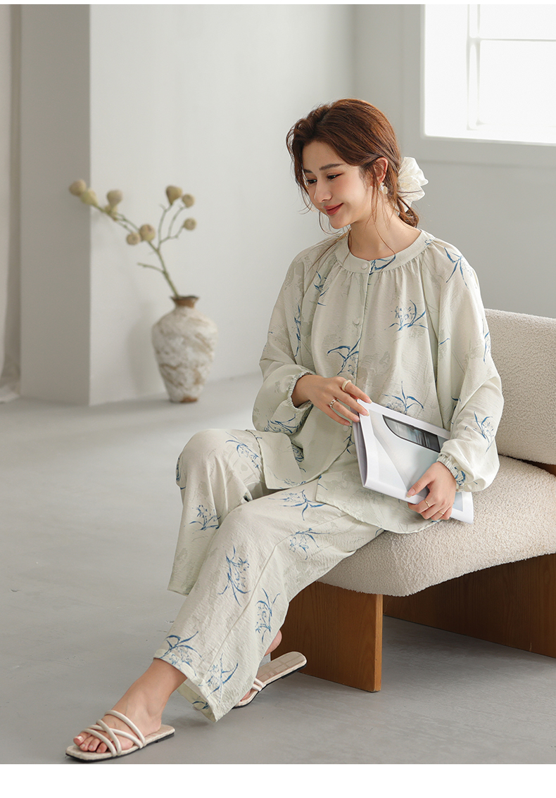 可人儿原创设计新款泡泡绵女士睡衣春秋长袖时尚可外出家居服套装