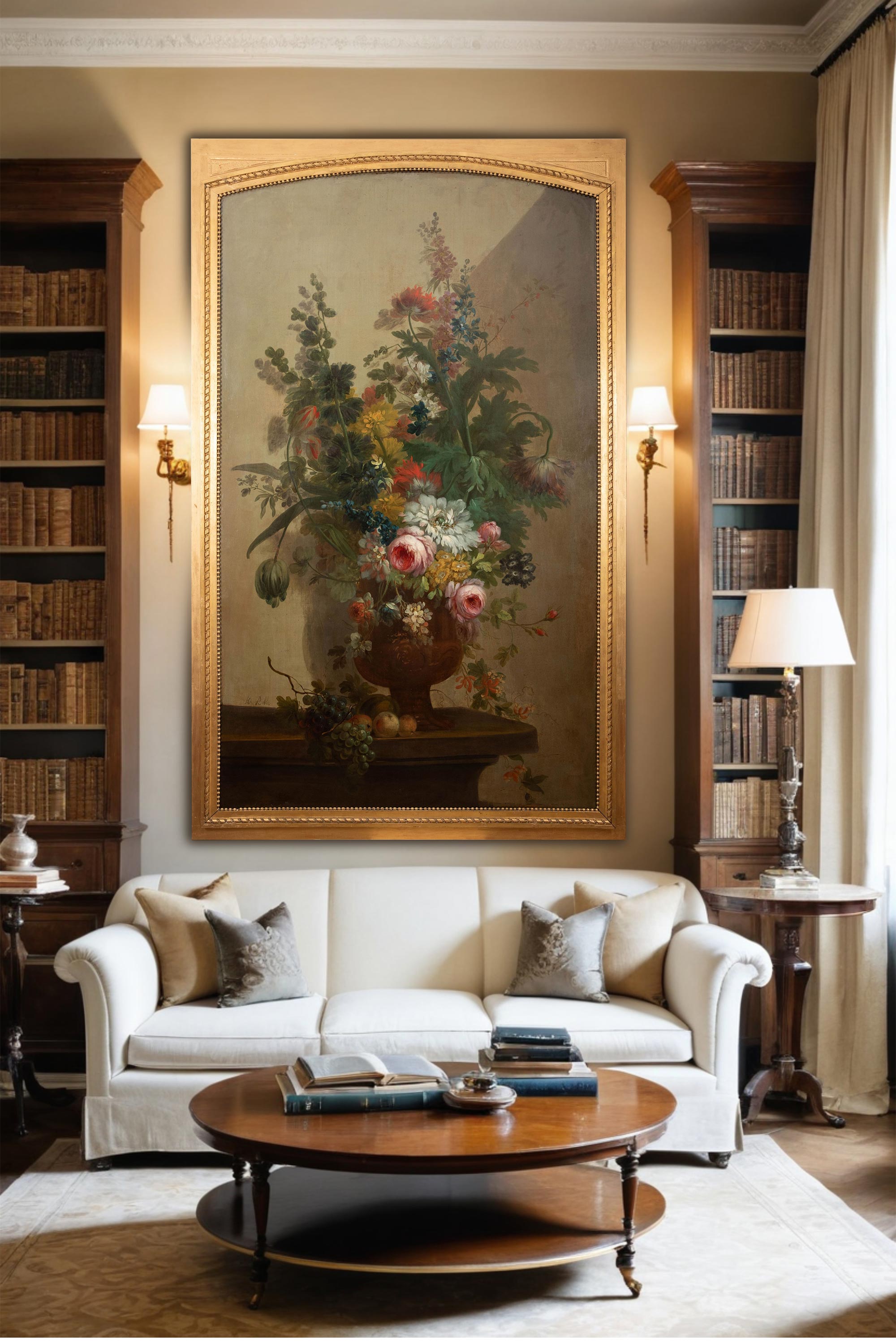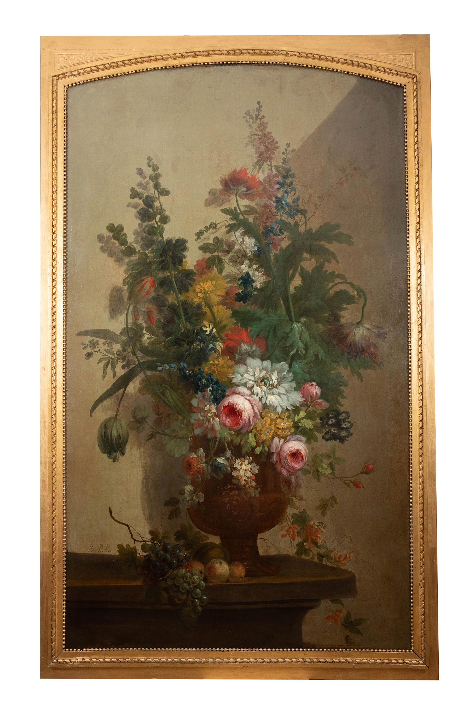 独角鹿西洋古董 比利时画家Henri Robbe签名创作静物花卉主题布面油画客厅装饰画