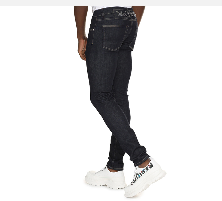 ALEXANDER MCQUEEN 亚历山大.麦昆 男士棉质字母徽标口袋直筒休闲牛仔裤 蓝色 650101 QSY48 4142