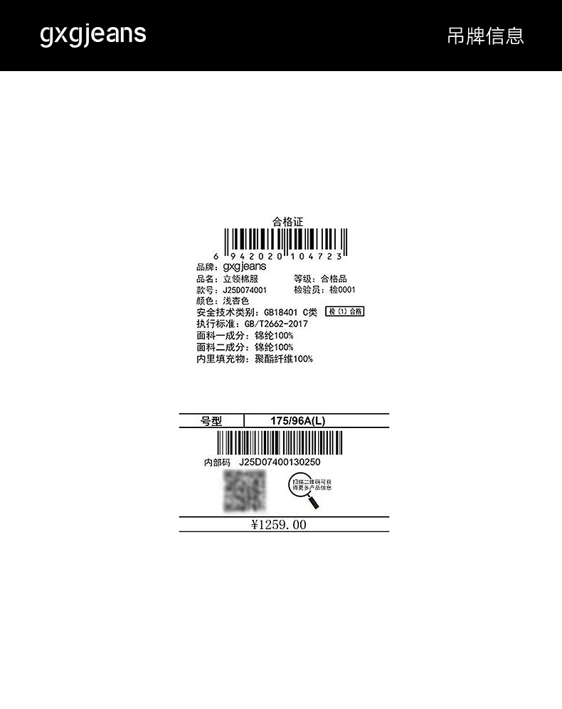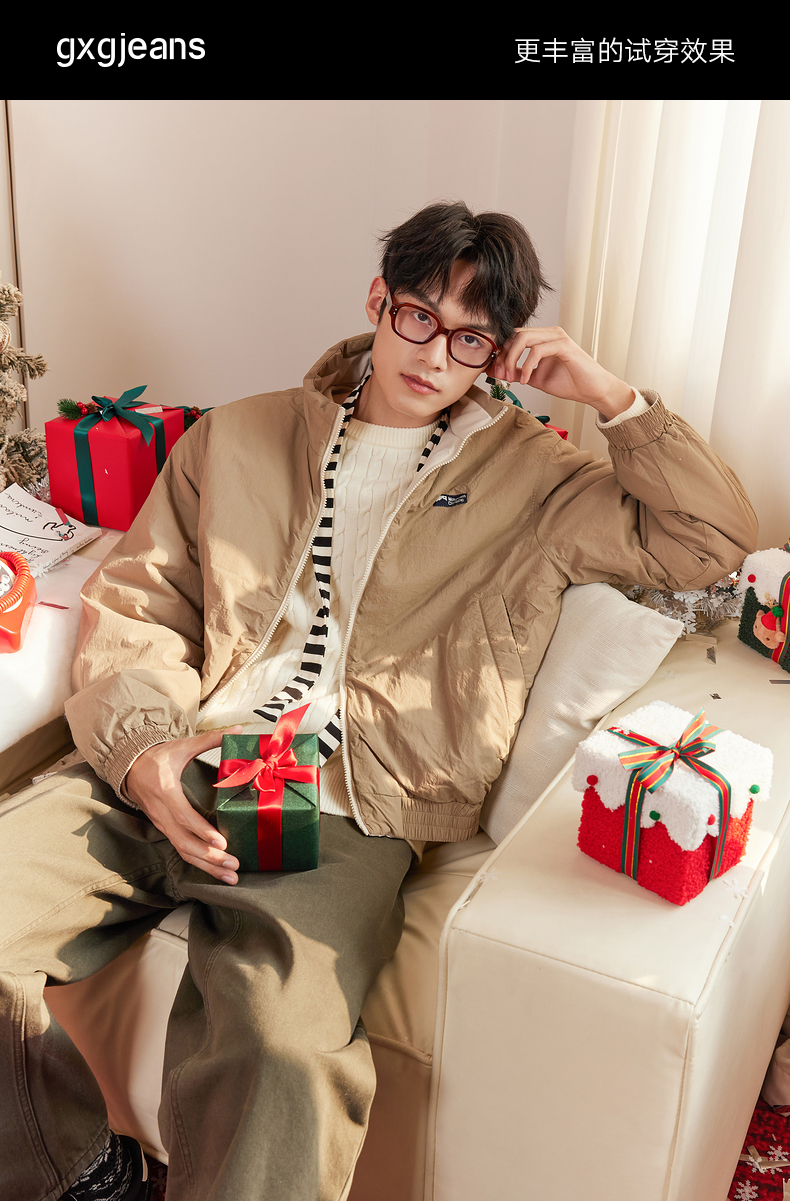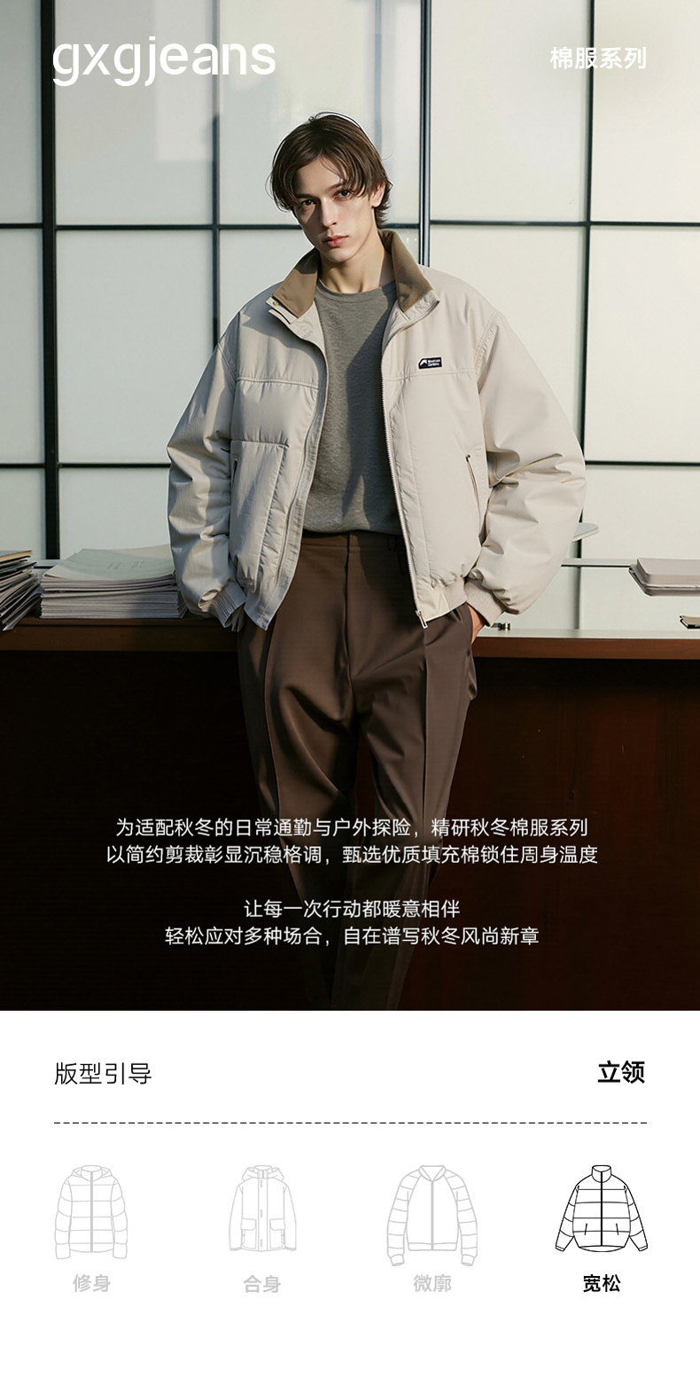 gxg.jeans男装 双色两面穿工装时尚宽松立领棉服夹克外套25冬新品