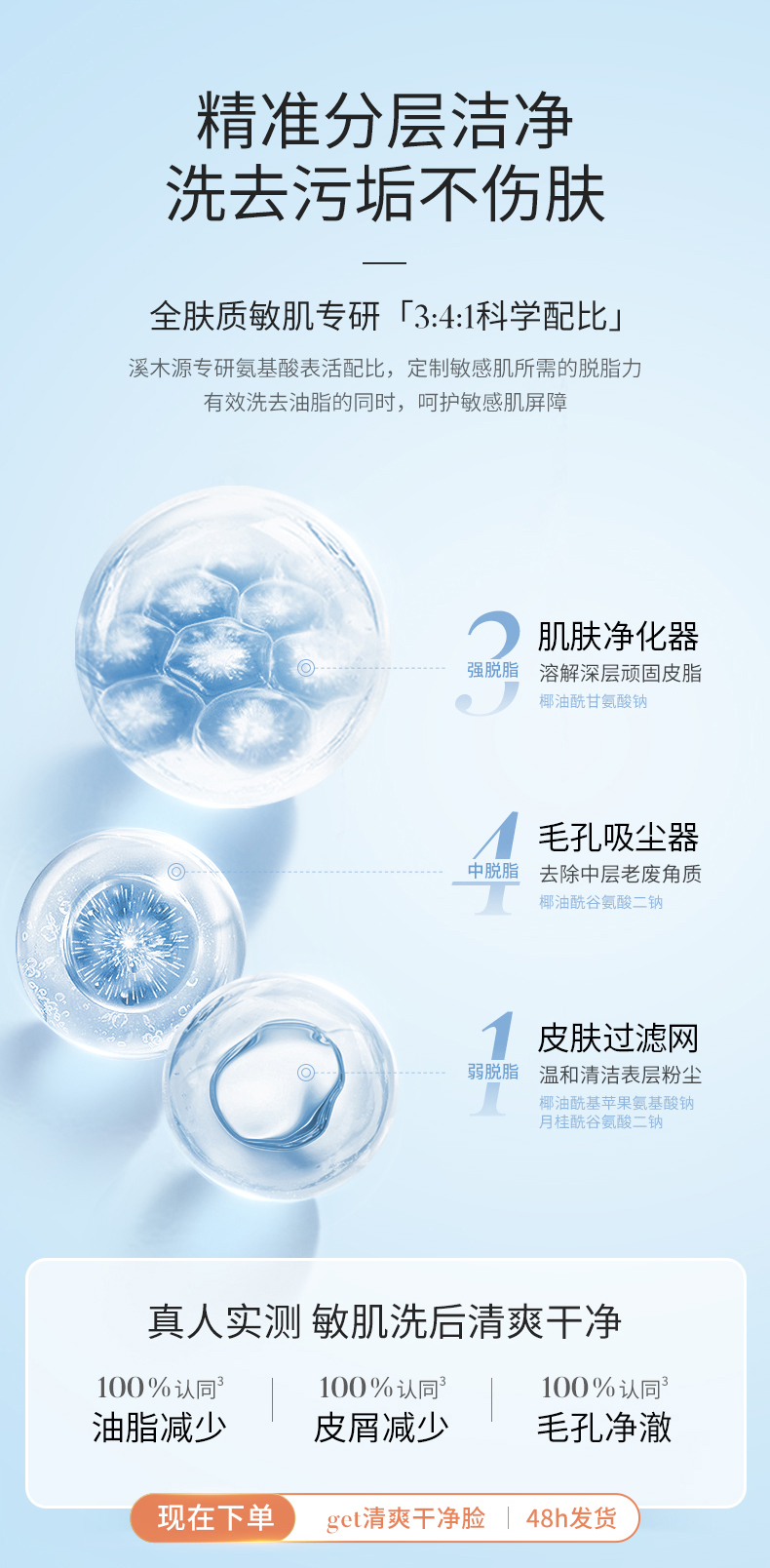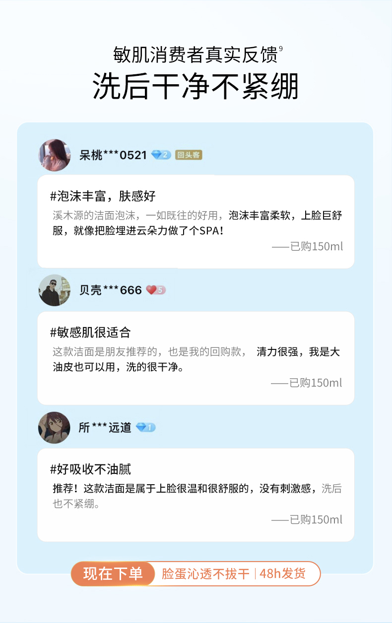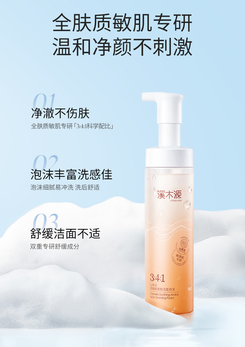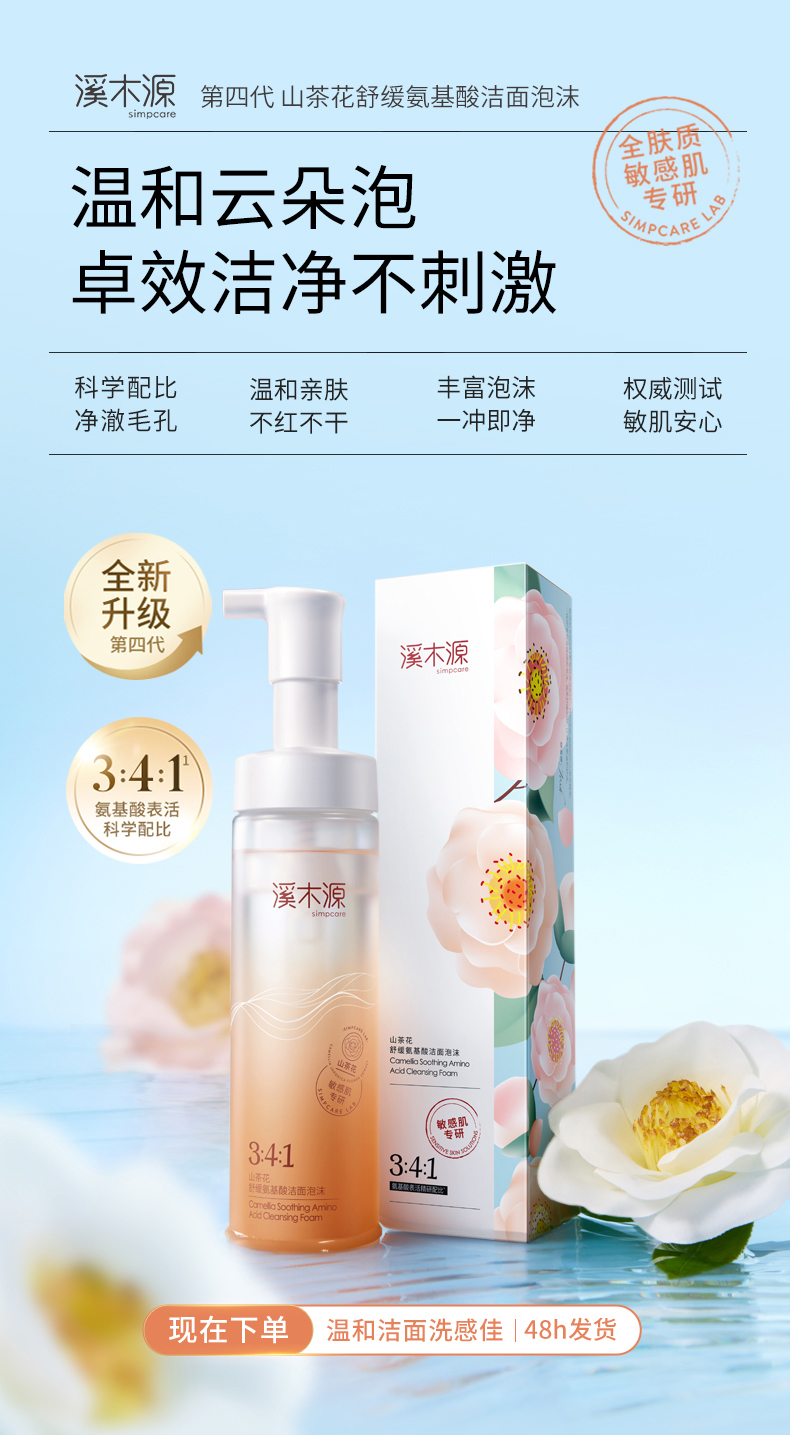 【干敏肌舒敏必选】溪木源山茶花舒缓氨基酸洁面泡沫