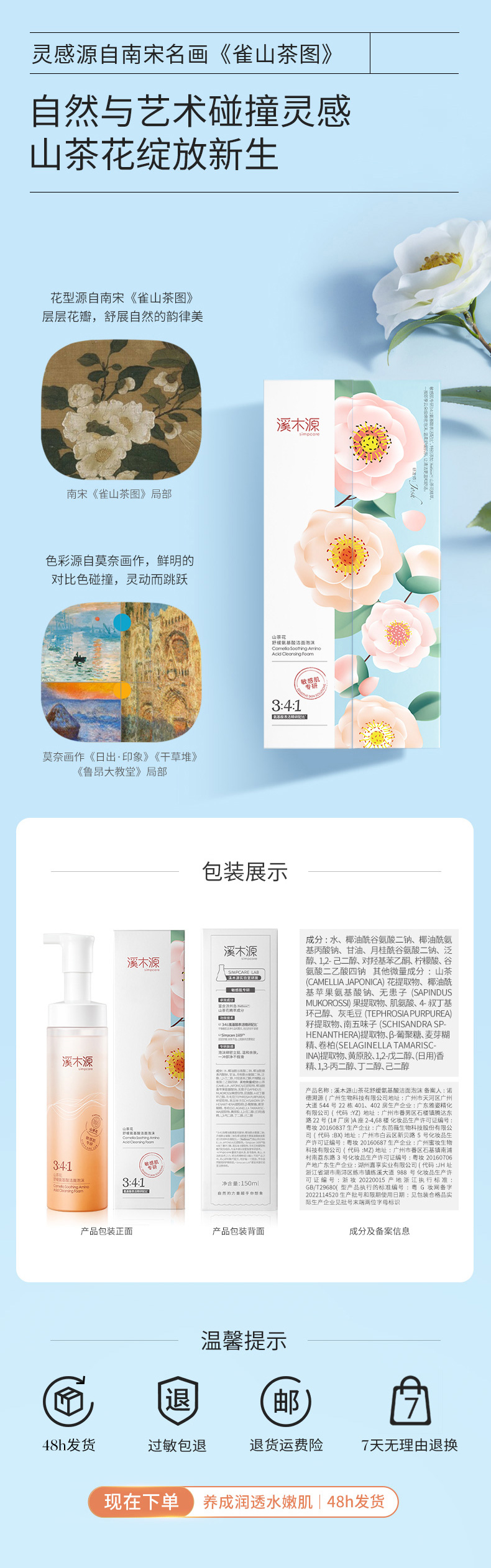【分销专享】溪木源山茶花舒缓氨基酸洁面乳清洁不刺激