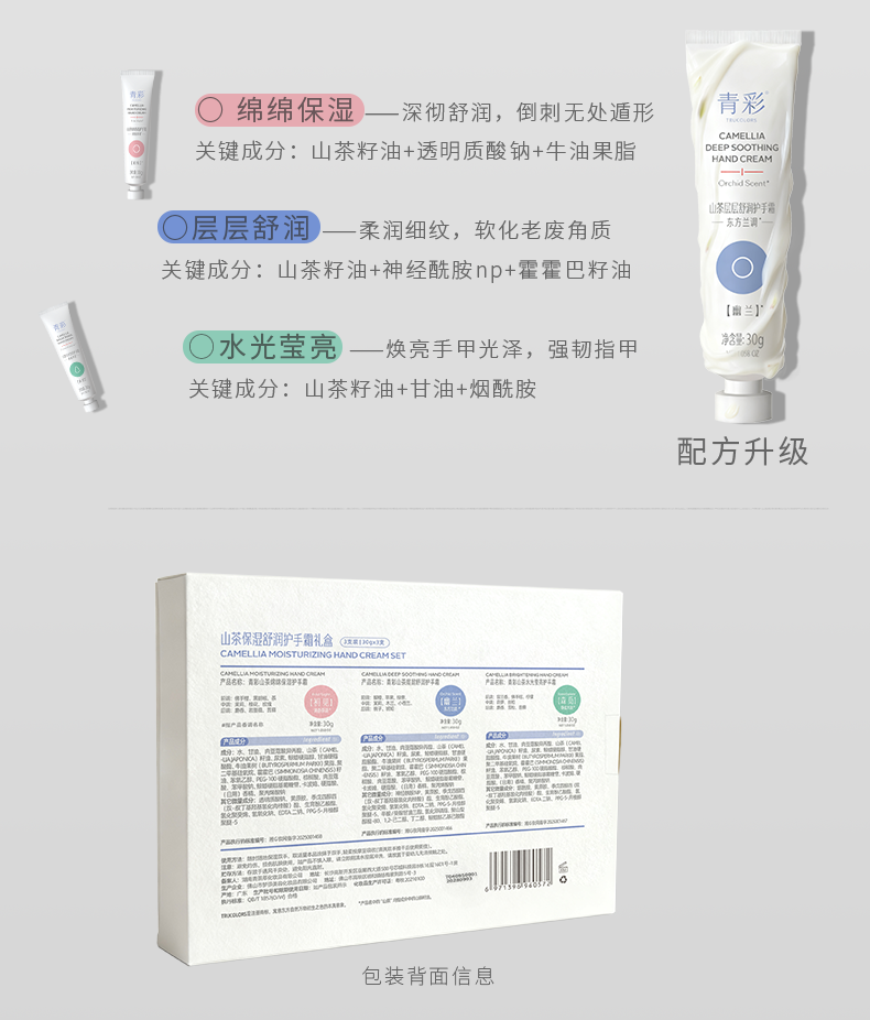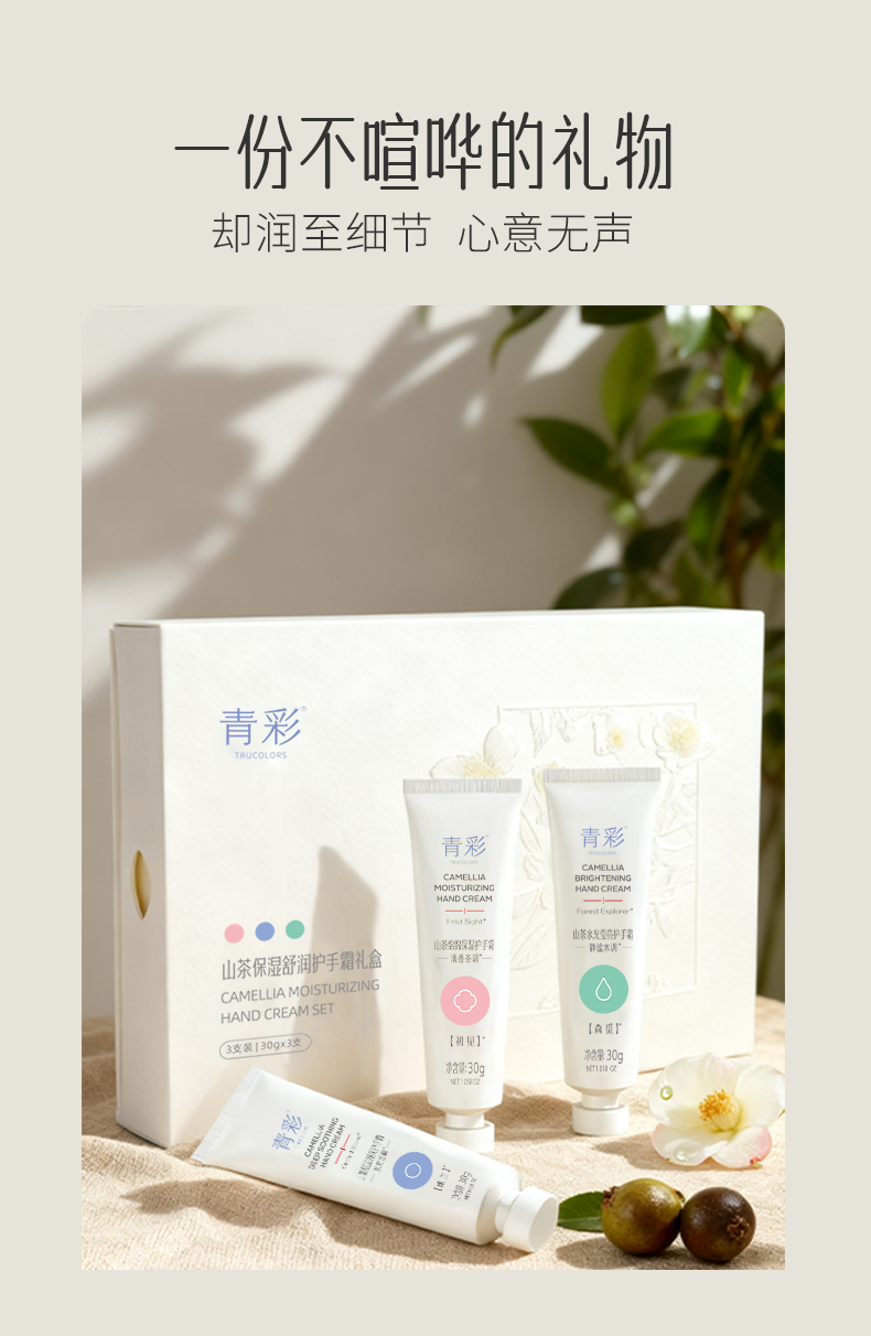 青彩山茶保湿护手霜礼盒装 保湿温和修护亮肤舒缓干燥 30g*3支/盒
